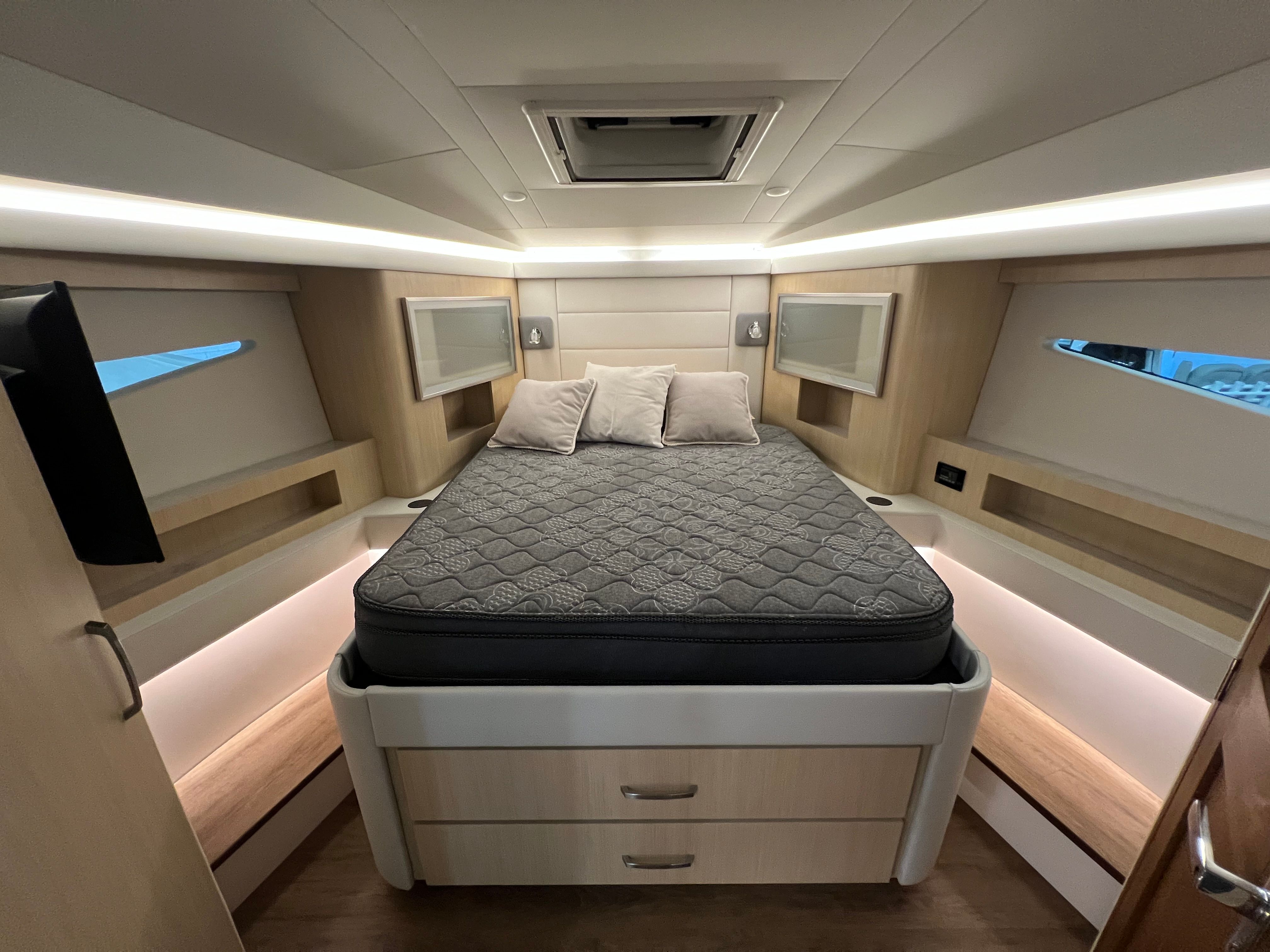 The Regal 42 Grande Coupe is designed with practicality in mind, making ownership both enjoyable and convenient. The yacht’s length provides ample storage space for all your gear, whether you’re planning a day trip or an extended voyage. The twin Volvo engines and IPS technology make docking and maneuvering a breeze, reducing stress and allowing you to focus on enjoying your time on the water. Fuel efficiency is a key benefit of the advanced diesel engines, helping you save on operating costs while maximizing your time at sea. The durable canvas covers protect your investment, ensuring that your yacht remains in pristine condition for years to come.