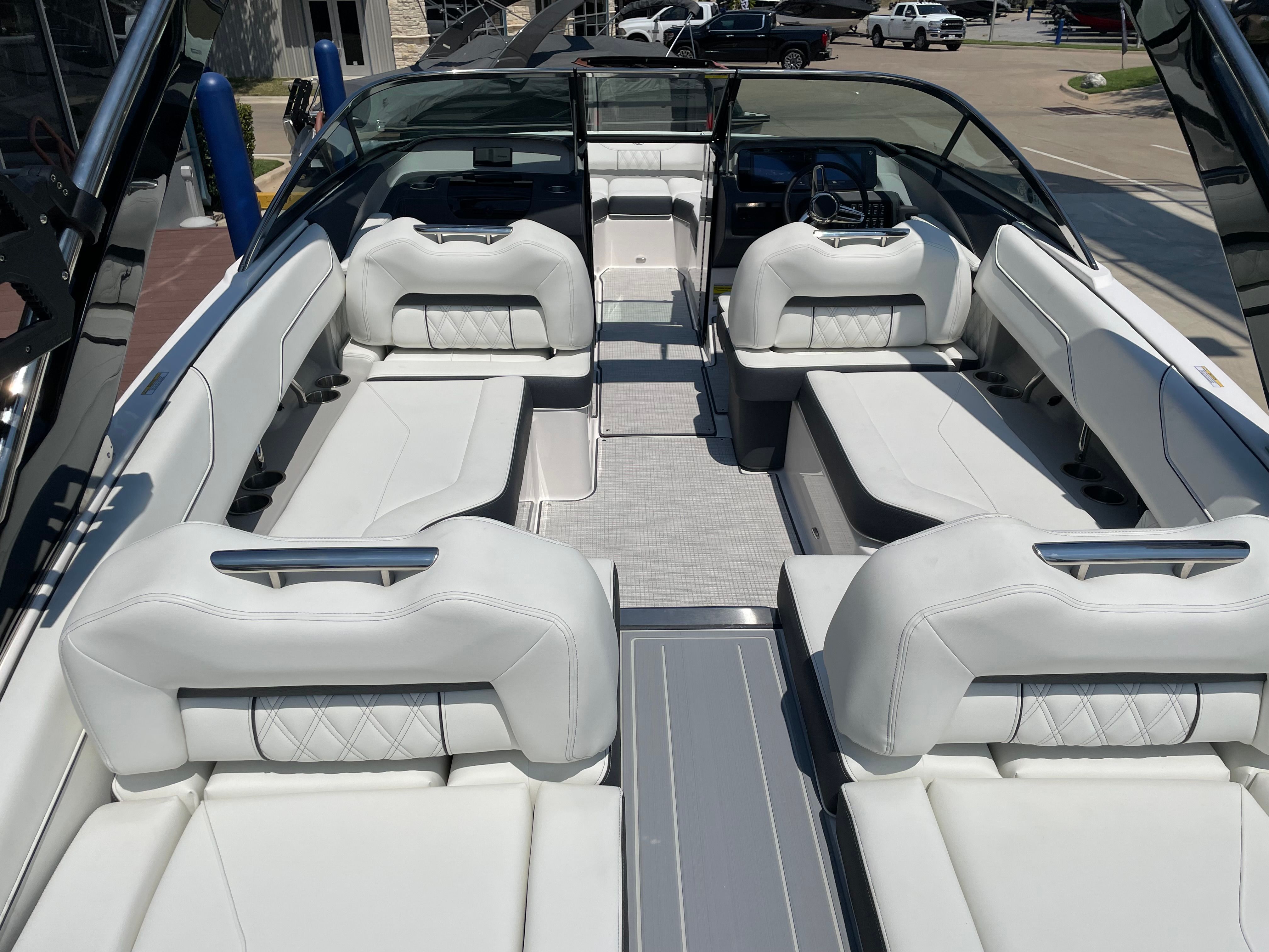 The 2026 Regal LS4 Surf Bowrider is packed with features that enhance both convenience and enjoyment. The Travel Storage Cover (Black) keeps your boat protected when not in use, while the Black Canvas adds a touch of sophistication to the overall aesthetic. Inside the cockpit, the Seagrass Mat provides a comfortable and stylish surface for passengers, and the SeaDek Swim Platform offers a safe, non-slip area for swimming and watersports activities.For added peace of mind, the Dual Battery Switch with Tray and Cables ensures reliable power management, and the Battery Charger keeps your boat ready for action at all times. These thoughtful additions make the LS4 Surf a standout choice among Bowrider boats for sale, combining luxury with practicality.