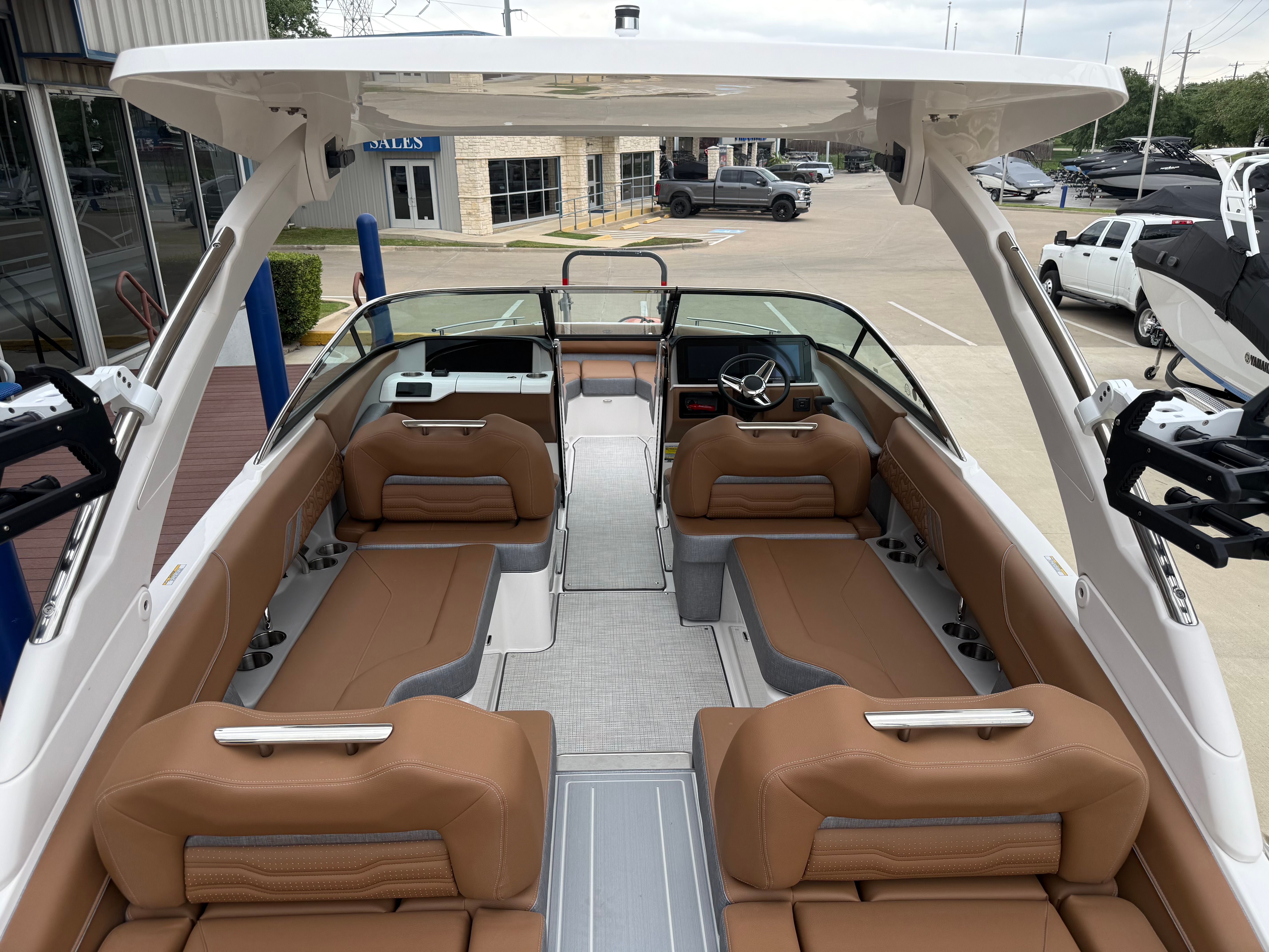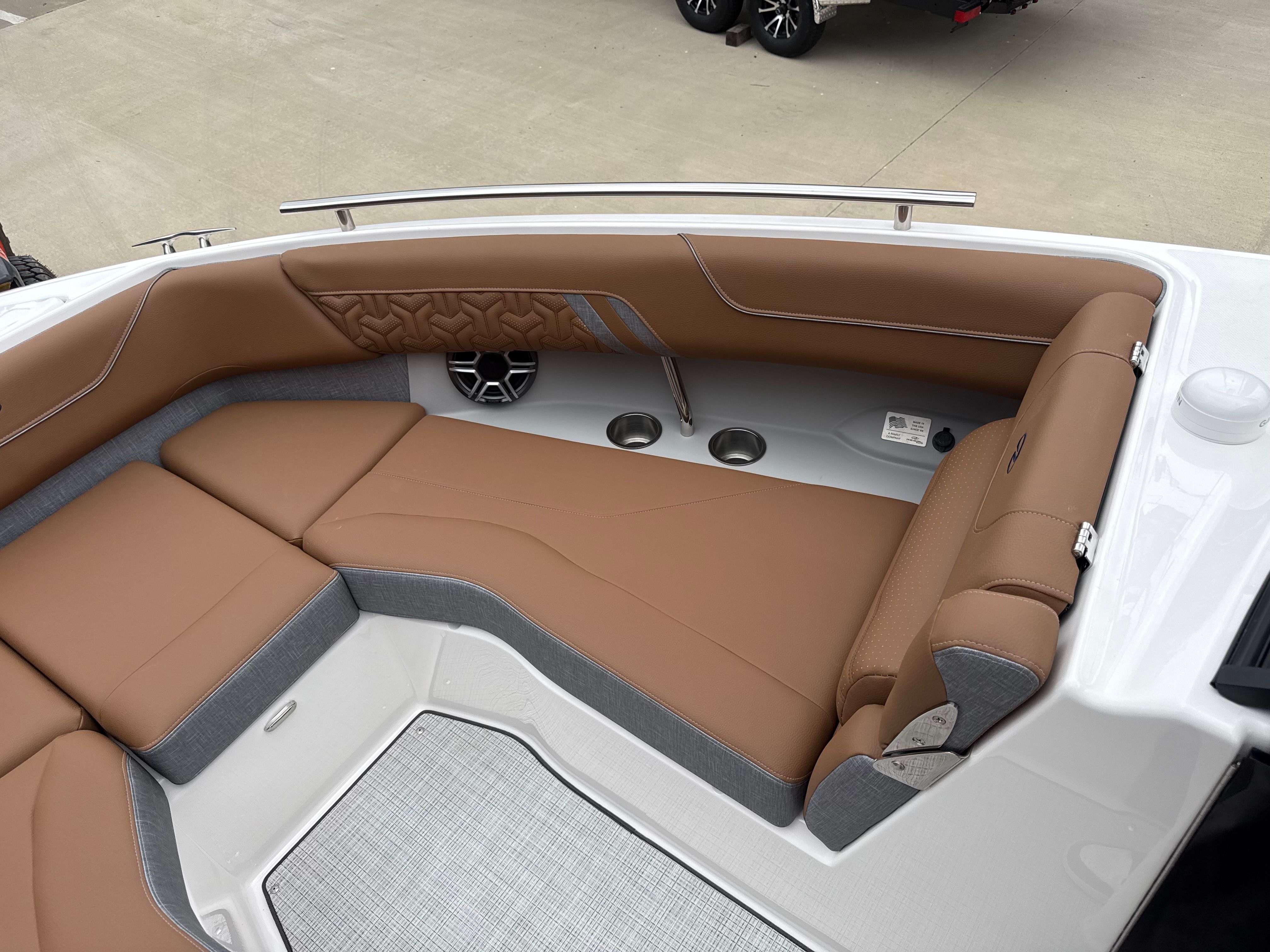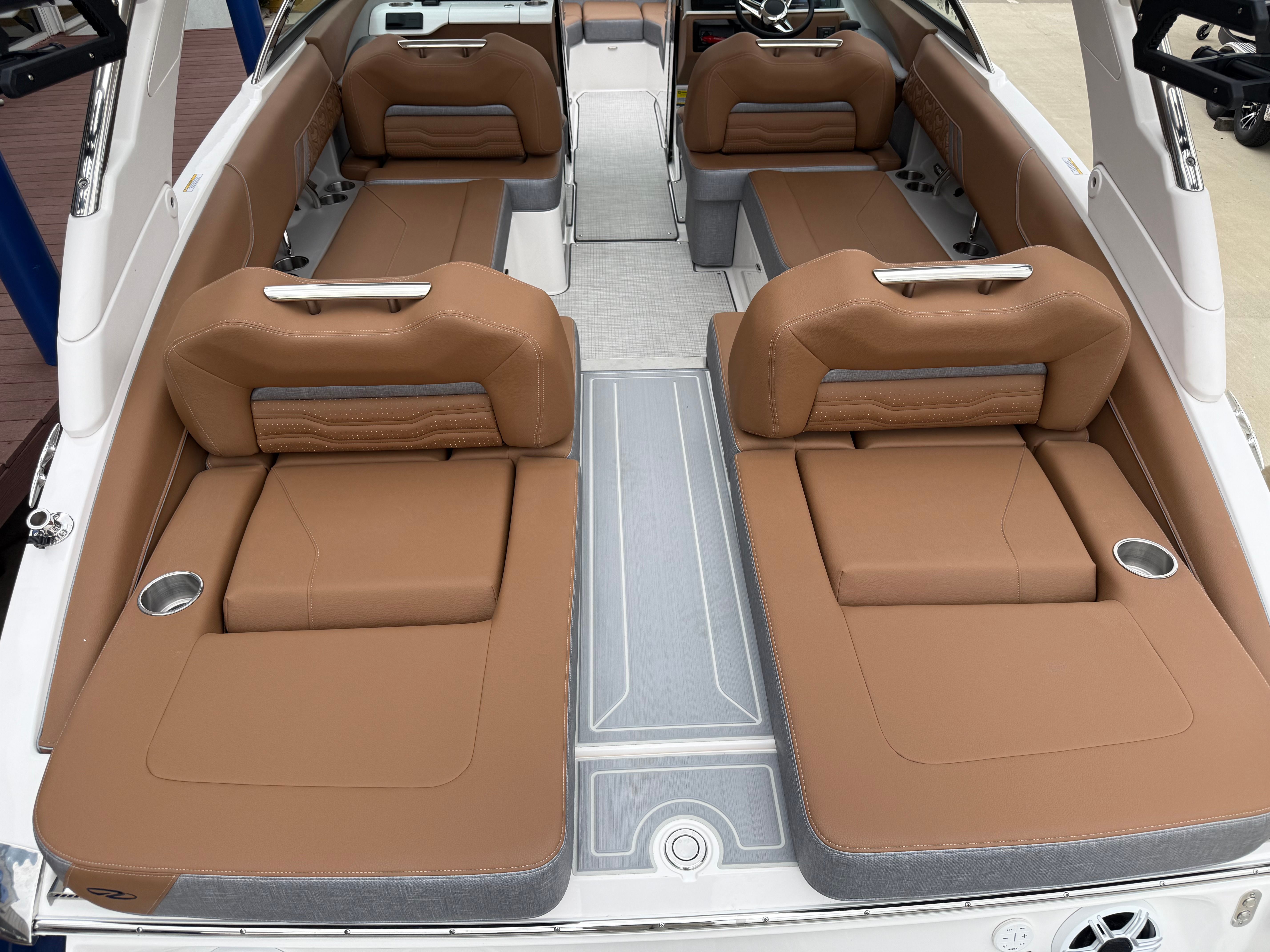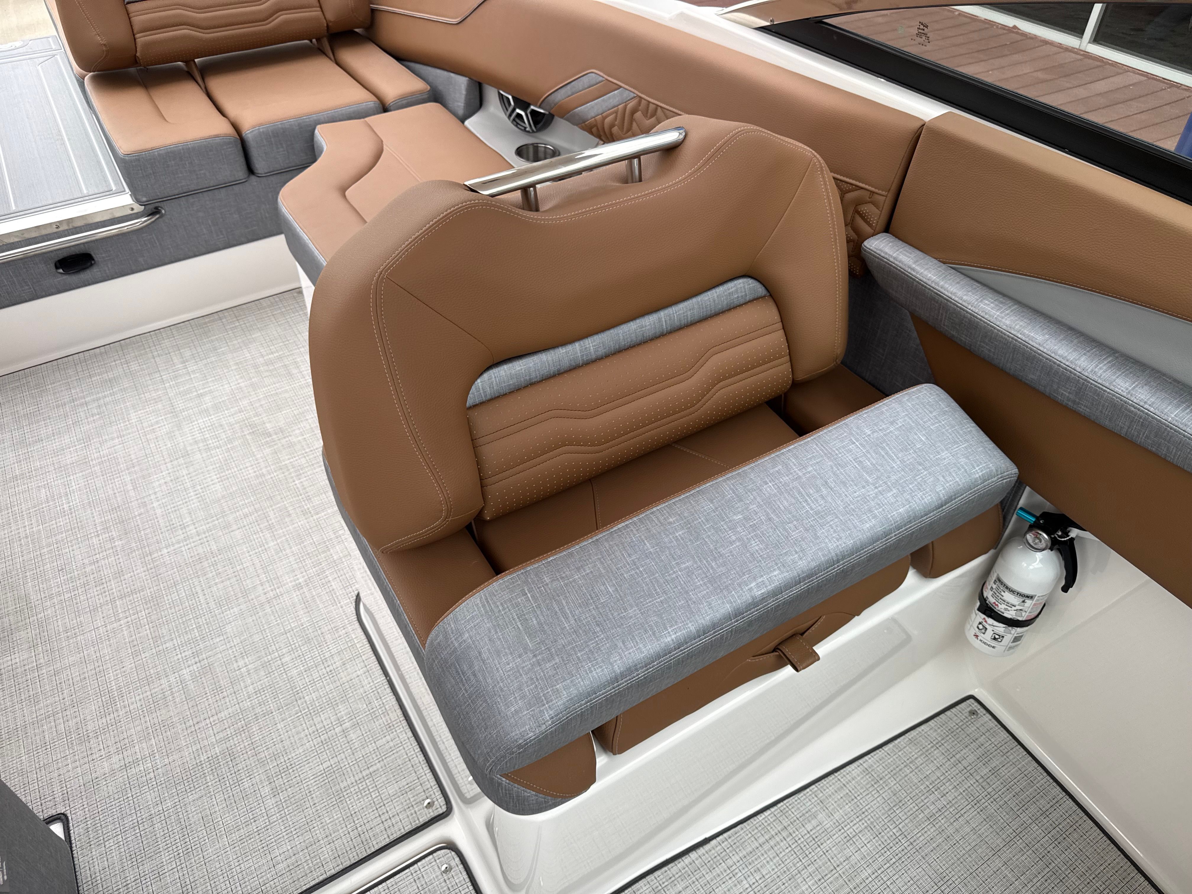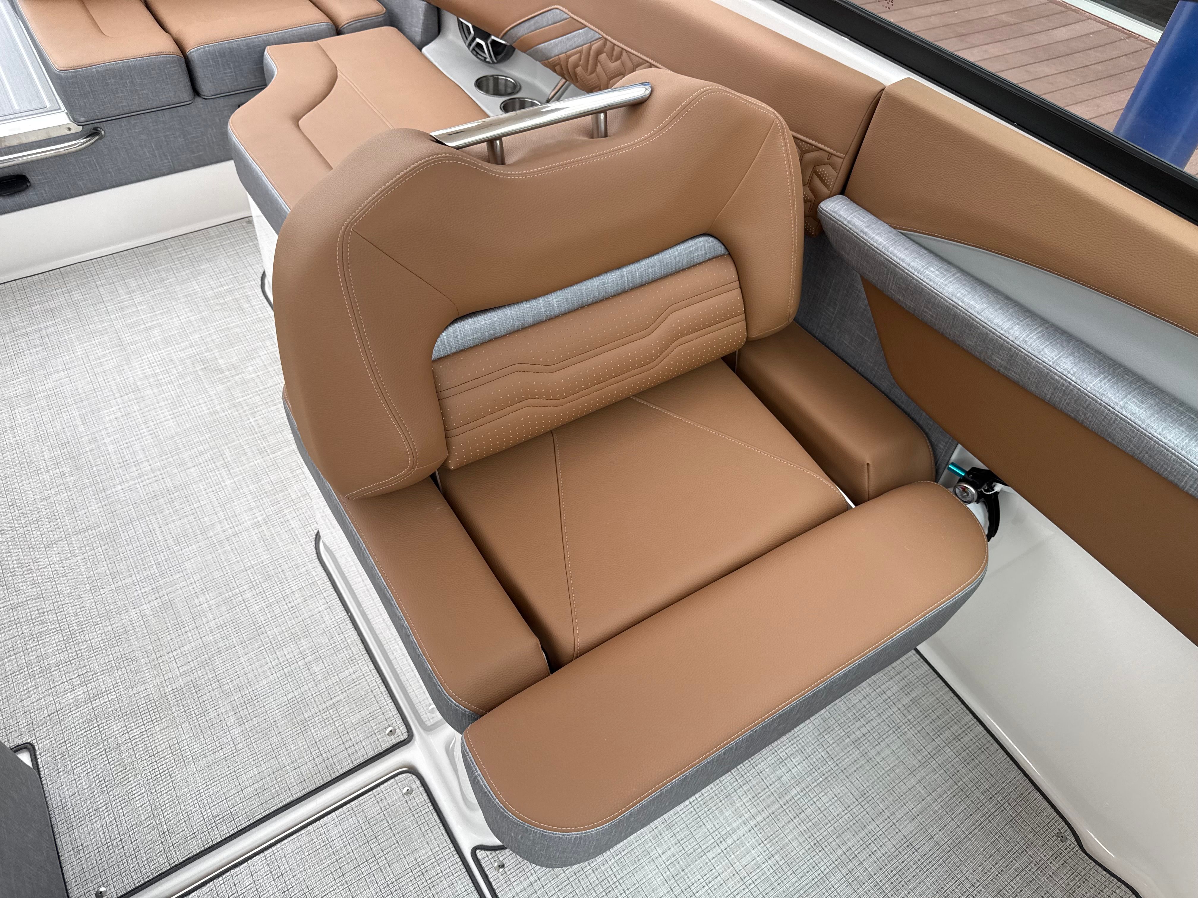 Step aboard the LS4 Surf and you are greeted by a world of comfort and style. The interior is a masterpiece of design, featuring a sophisticated blend of Saddle Brown, Denim Cement, and additional Saddle Brown accents. This unique color palette creates a warm, inviting atmosphere that is both modern and timeless. The cockpit is outfitted with a premium Seagrass Mat, offering a soft, non-slip surface that is perfect for barefoot comfort and easy cleaning after a day on the water.The SeaDek Swim Platform is another standout feature, providing a safe, cushioned area for swimmers and water sports enthusiasts to gear up or relax by the water’s edge. Digital Switching technology brings convenience to your fingertips, allowing you to control onboard systems with ease and precision. The included travel storage cover helps protect your investment from the elements, ensuring your LS4 Surf remains in pristine condition season after season.