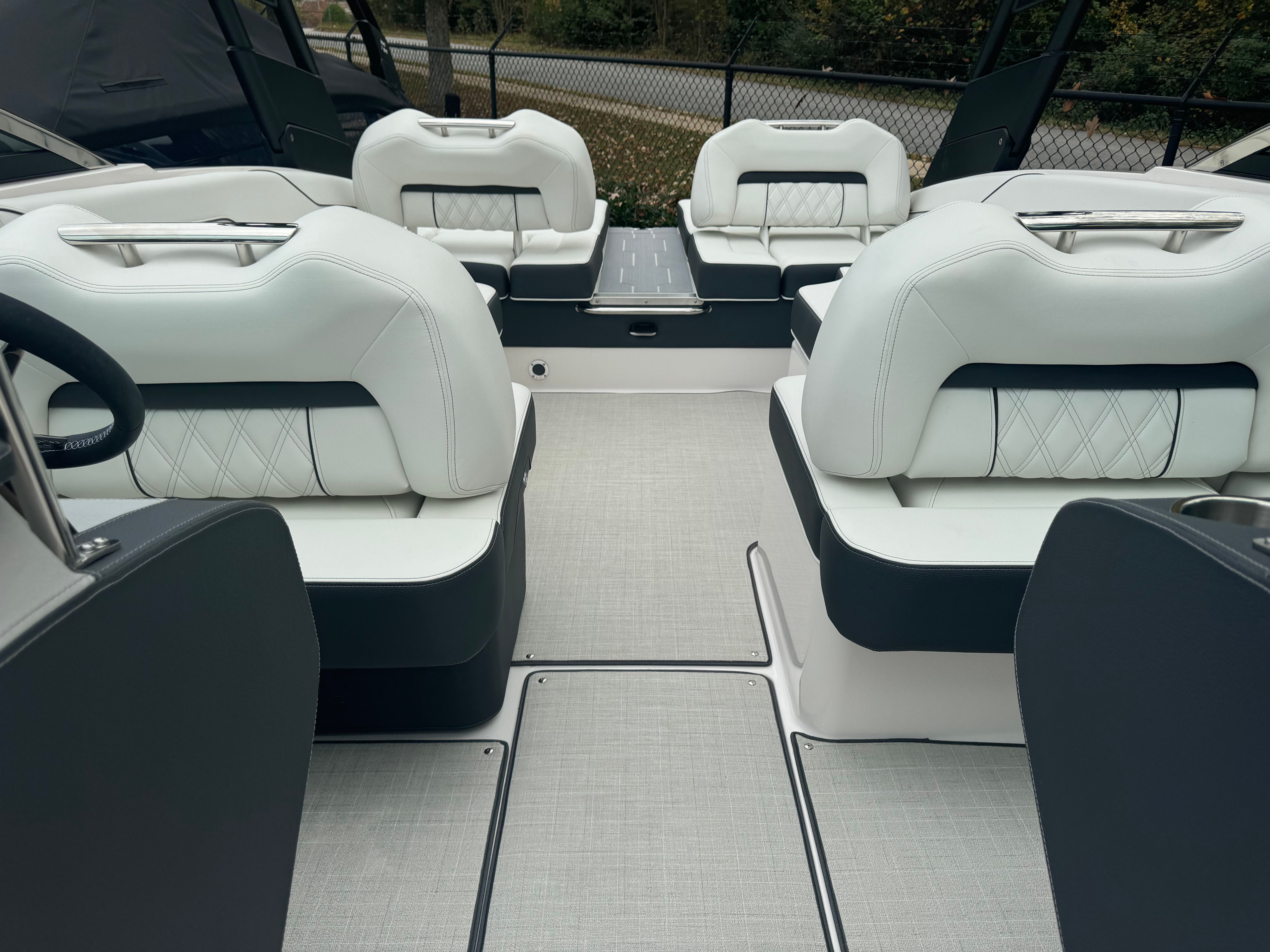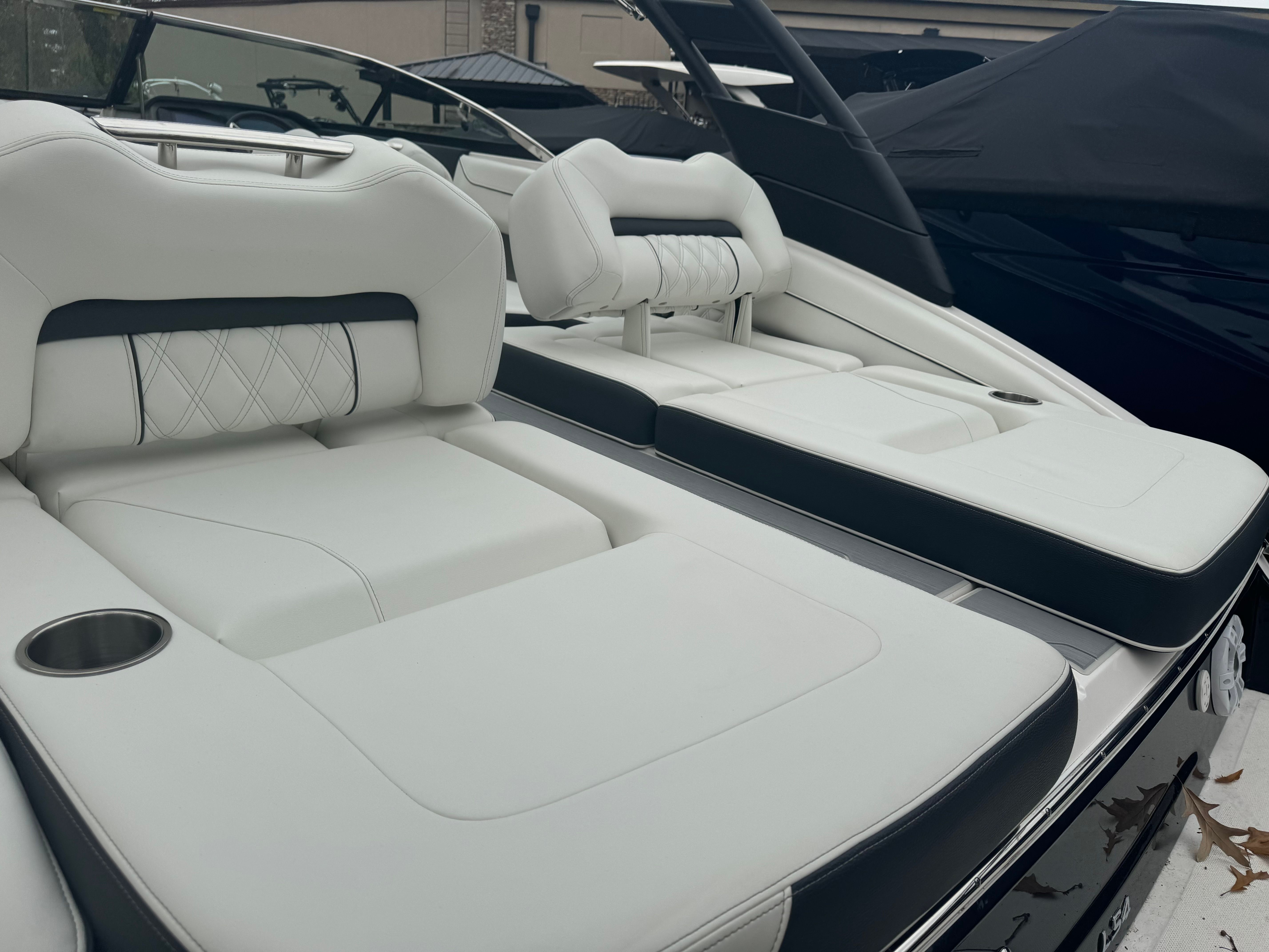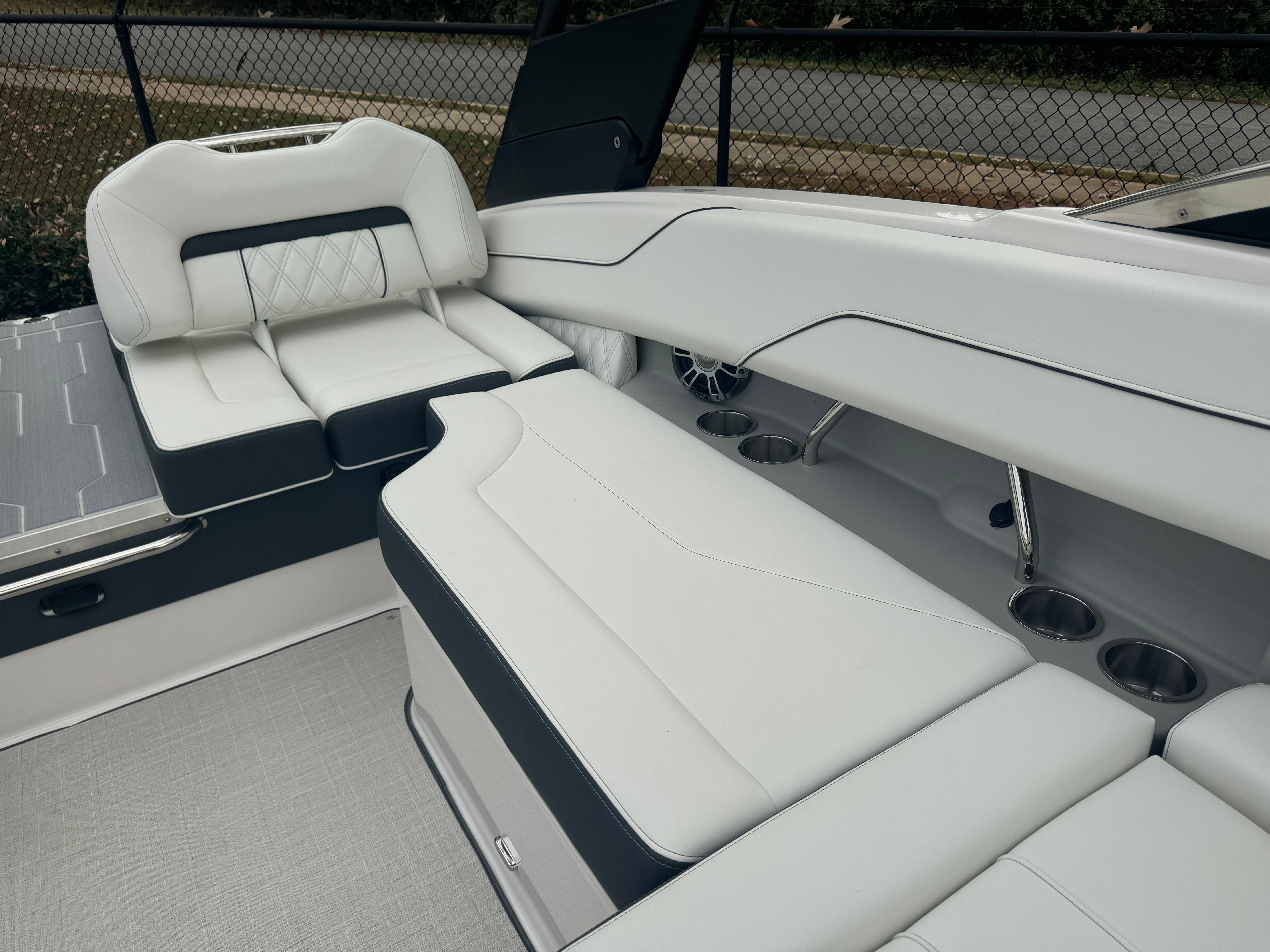 Practicality meets luxury in the Regal LS4. The dual battery switch system ensures you always have reliable power, making it easy to run your electronics and entertainment systems without worry. The travel storage cover protects your investment from the elements, while the durable black canvas adds an extra layer of security and style.Docking and maneuvering are simplified thanks to the boat’s responsive handling and advanced propulsion system. The seagrass mat in the cockpit not only adds comfort but also makes cleaning up after a day on the water quick and easy. With ample storage throughout the boat, you’ll have plenty of space for gear, snacks, and water toys, keeping the deck clutter-free and ready for fun.Fuel efficiency is another highlight, allowing you to spend more time enjoying the water and less time at the pump. The LS4’s smart design ensures that every outing is as convenient as it is enjoyable, making it a practical choice for both new and experienced boaters.