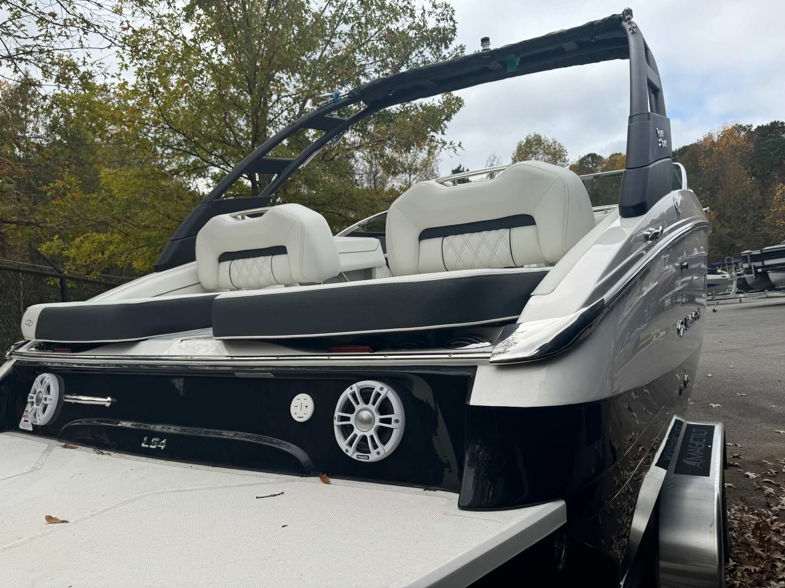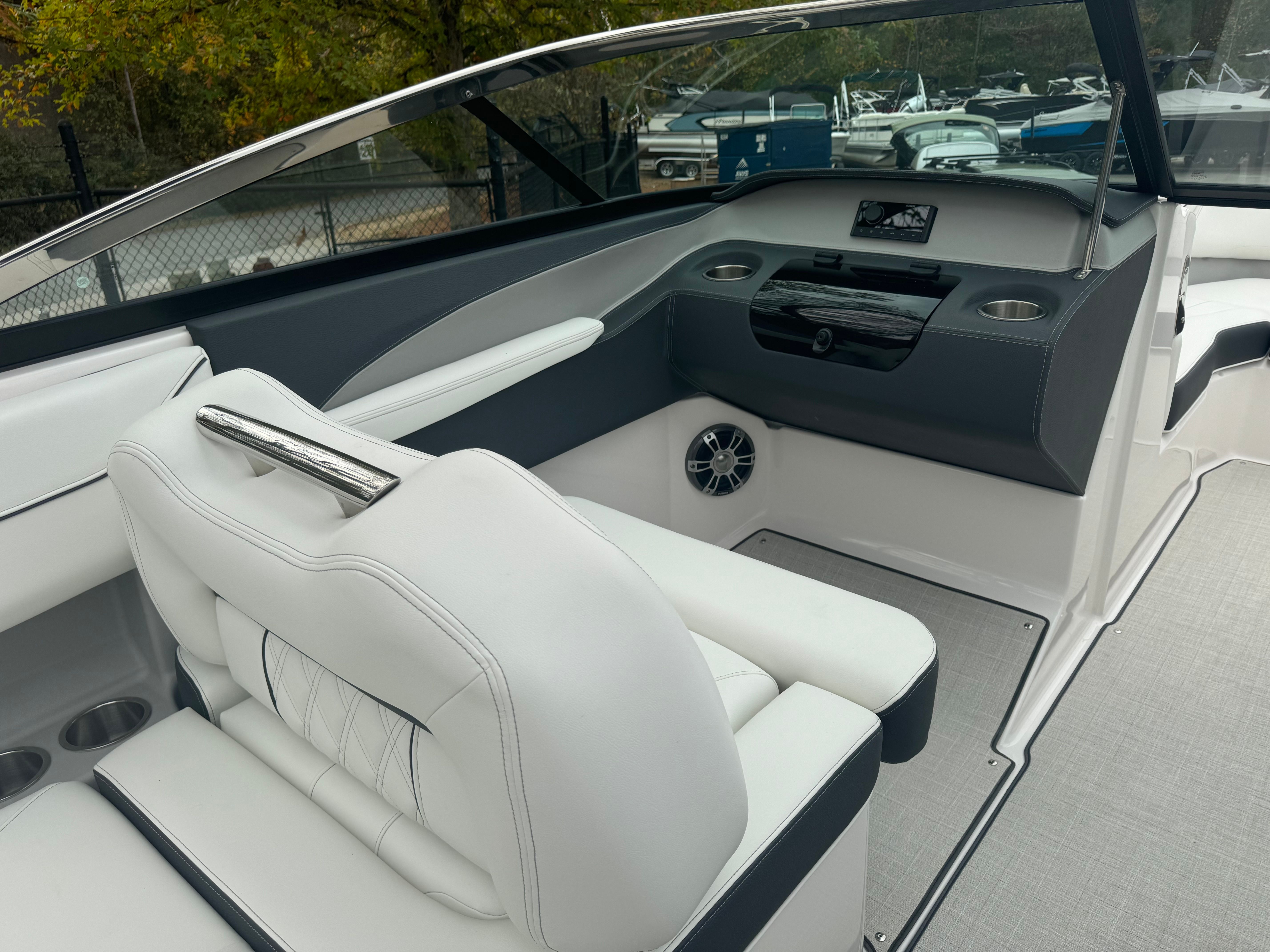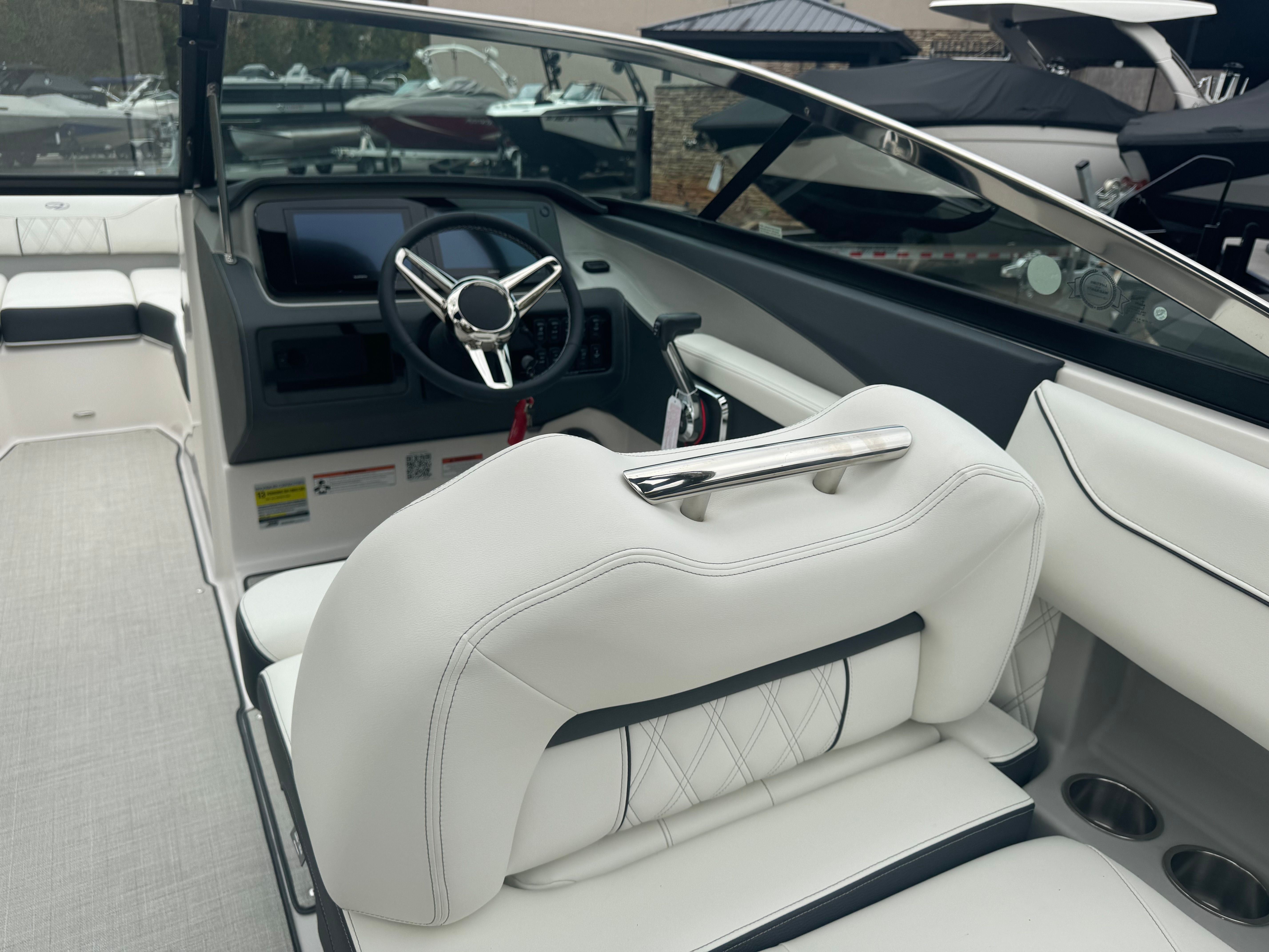 Practicality meets luxury in the Regal LS4. The dual battery switch system ensures you always have reliable power, making it easy to run your electronics and entertainment systems without worry. The travel storage cover protects your investment from the elements, while the durable black canvas adds an extra layer of security and style.Docking and maneuvering are simplified thanks to the boat’s responsive handling and advanced propulsion system. The seagrass mat in the cockpit not only adds comfort but also makes cleaning up after a day on the water quick and easy. With ample storage throughout the boat, you’ll have plenty of space for gear, snacks, and water toys, keeping the deck clutter-free and ready for fun.Fuel efficiency is another highlight, allowing you to spend more time enjoying the water and less time at the pump. The LS4’s smart design ensures that every outing is as convenient as it is enjoyable, making it a practical choice for both new and experienced boaters.