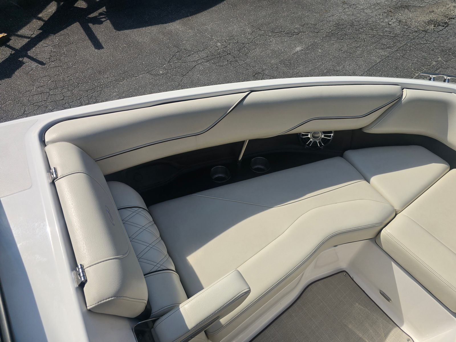 The Regal LS4 Bowrider is packed with features designed to enhance comfort, convenience, and enjoyment. The travel storage cover in black protects your investment when not in use, while the Mediterranean Blue canvas offers shade and style during sunny days. Step onto the SeaDek swim platform for a soft, slip-resistant surface that makes swimming and water sports safer and more enjoyable. The cockpit seagrass mat adds a touch of luxury underfoot, creating a welcoming space for lounging and socializing. With the dual battery switch and tray, you’ll have peace of mind knowing your boat is equipped for extended outings and reliable starts.