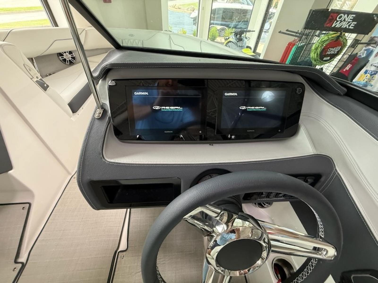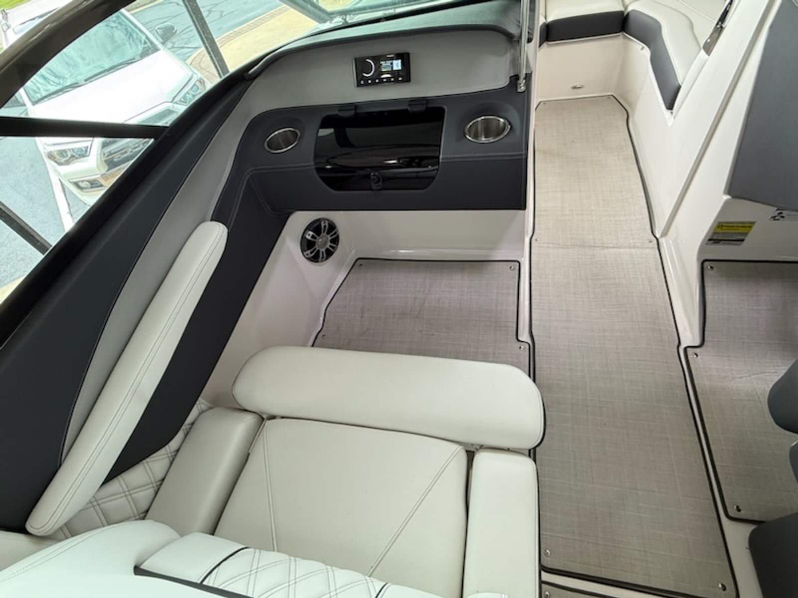 The Regal LS4 Bowrider is packed with special features that elevate your boating experience. The hull and bottom are finished in the eye-catching Tahiti Beach White, complemented by a striking Black bootstripe for a sophisticated look. The Black canvas adds a touch of elegance and durability, while the PowerTower S2 in Black and Titanium offers convenience and style, making it easy to store and deploy water sports equipment.Step into the cockpit and you’ll find a luxurious Seagrass mat that enhances comfort and adds a premium feel underfoot. The stainless steel flag pole with a U.S. flag is a proud statement of craftsmanship and patriotism, perfect for displaying on holidays or special occasions. Practicality is also at the forefront, with a battery charger to keep your electronics powered and a travel storage cover in Black to protect your investment during transport or off-season storage.
