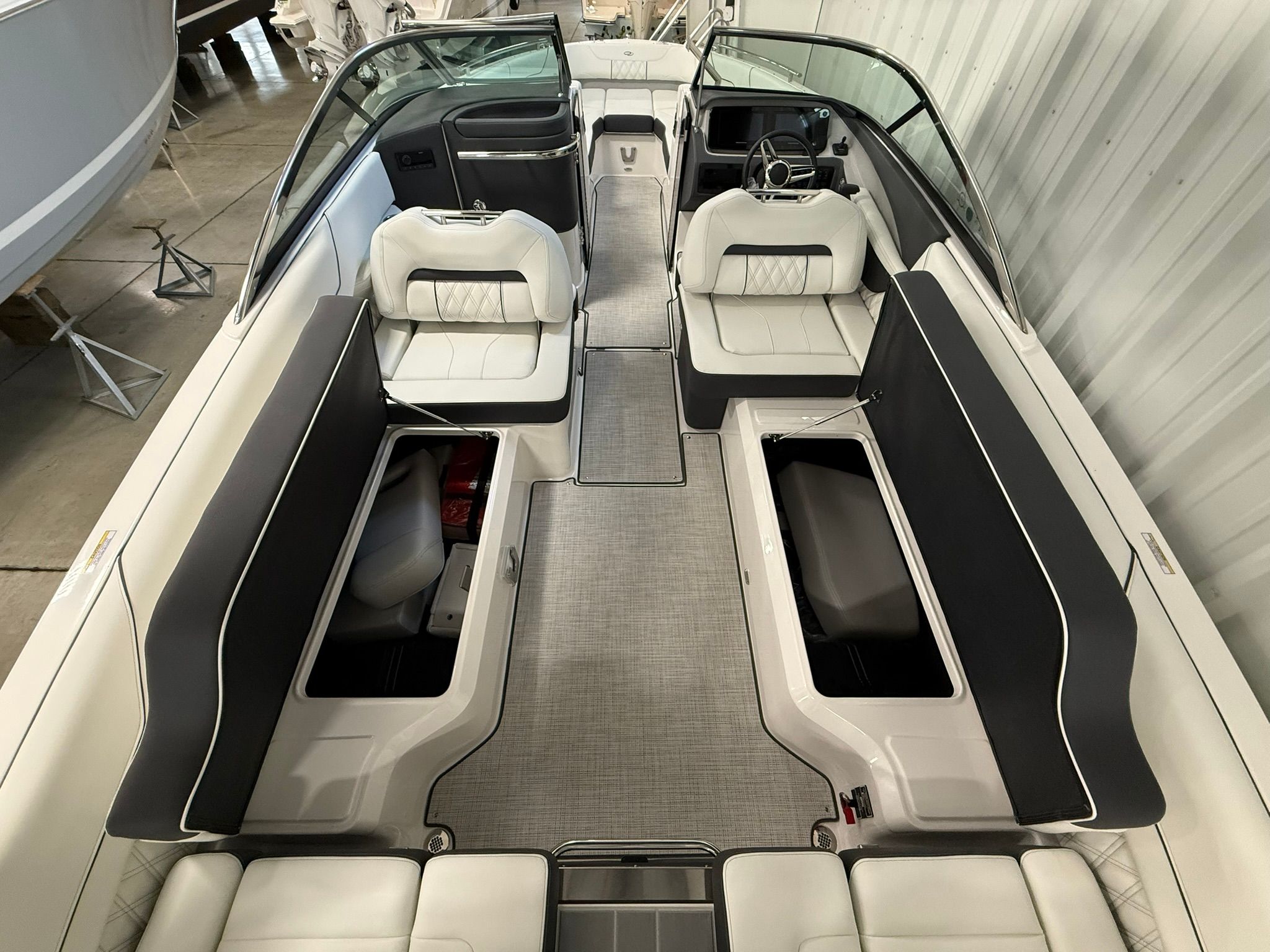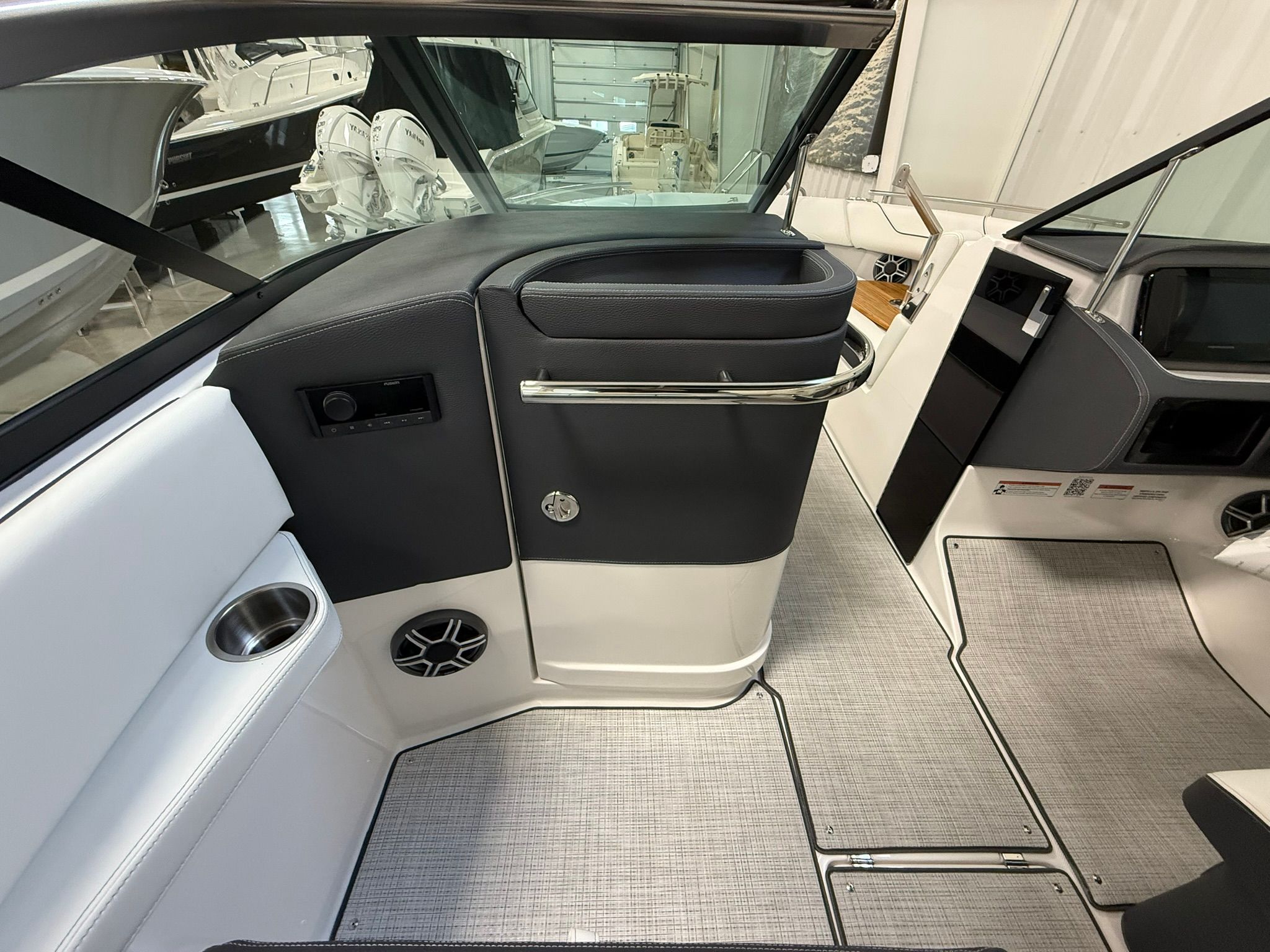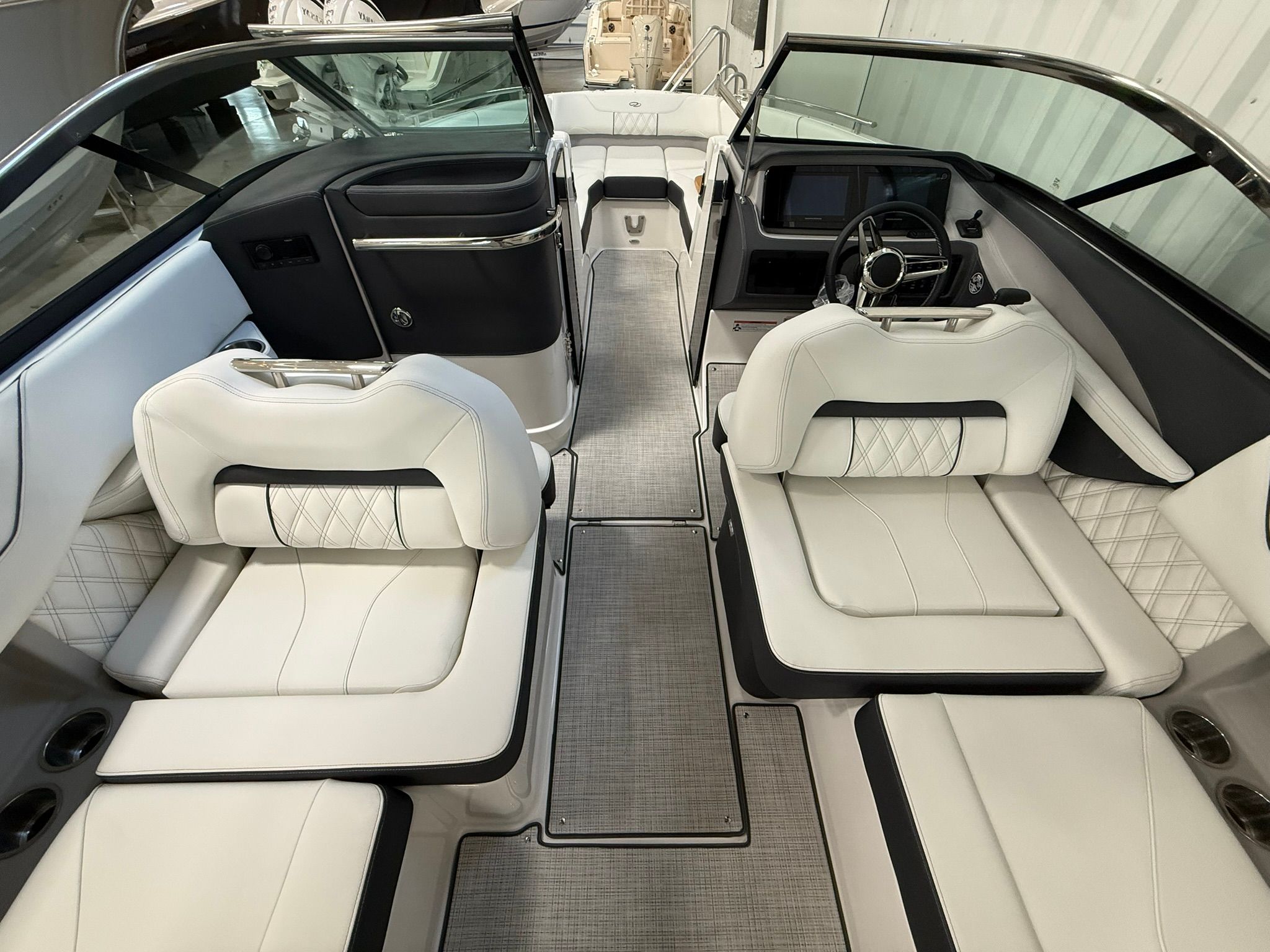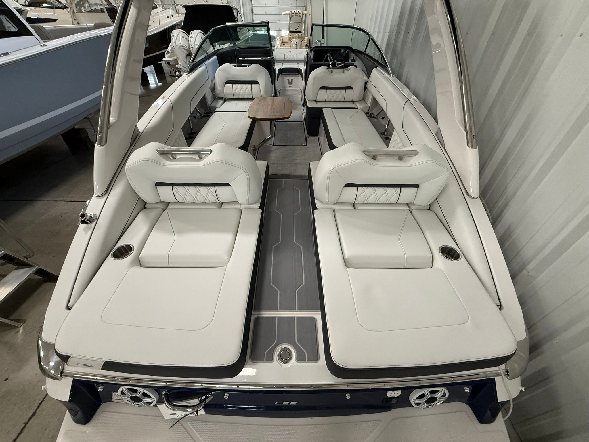 The Regal LS6 Bowrider is packed with special features that elevate your boating experience. The hull is finished in Tahiti Beach White, complemented by a Mediterranean Blue bootstripe and matching bottom color, creating a striking visual appeal. The interior boasts a Titanium finish, offering both durability and elegance. For protection and style, the boat includes Bow & Cockpit Covers in Mediterranean Blue canvas, ensuring your investment stays in pristine condition.Comfort is further enhanced by the Cockpit Seagrass Mat, providing a soft and stylish surface underfoot. Practicality is built in with a Dual Battery Switch, complete with tray and cables, and a Battery Charger, ensuring you have reliable power for all your adventures. These features combine to make the LS6 not only beautiful but also functional and ready for any outing.