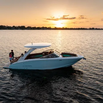 At the heart of the Regal LS6 is a powerful Volvo V8 350 EVC2 DP CAT engine, delivering an exhilarating 350 horsepower. This single-engine setup provides smooth acceleration, responsive handling, and impressive top speeds, making it ideal for water sports, cruising, or simply enjoying a spirited ride. Whether you’re navigating open waters or gliding through tight turns, the LS6’s advanced hull design ensures stability and efficiency, while the engine’s modern technology offers reliable performance and fuel economy.