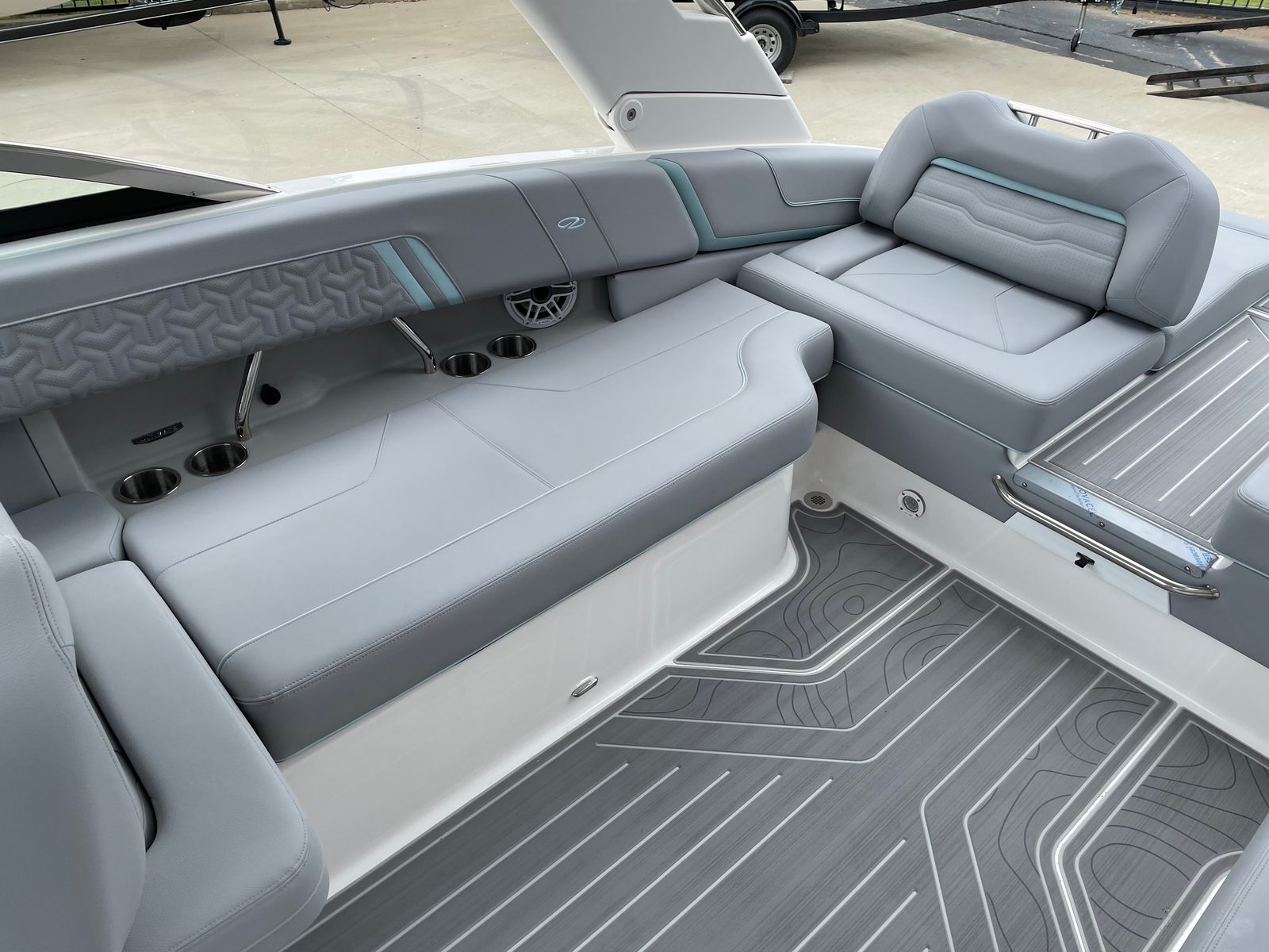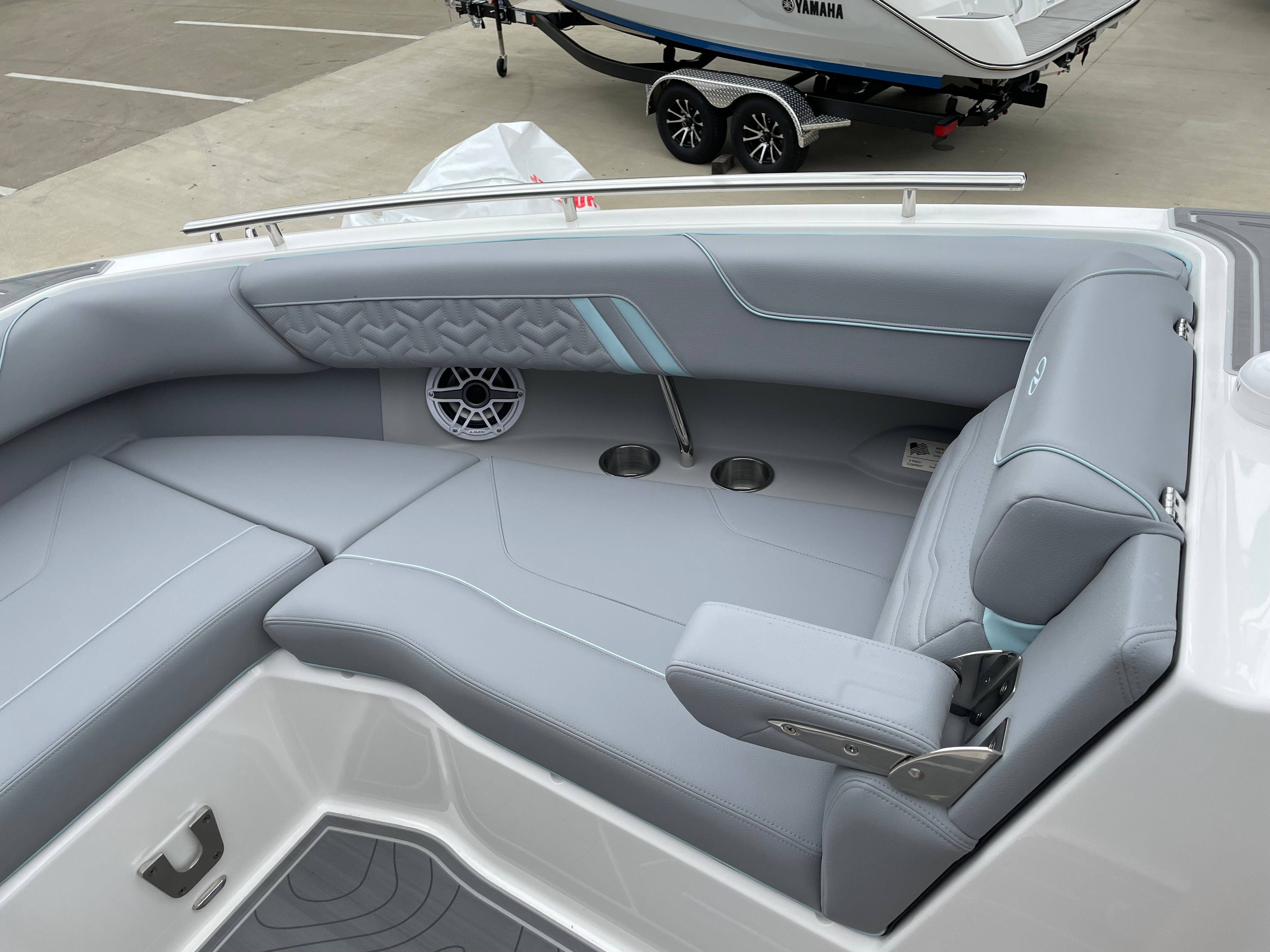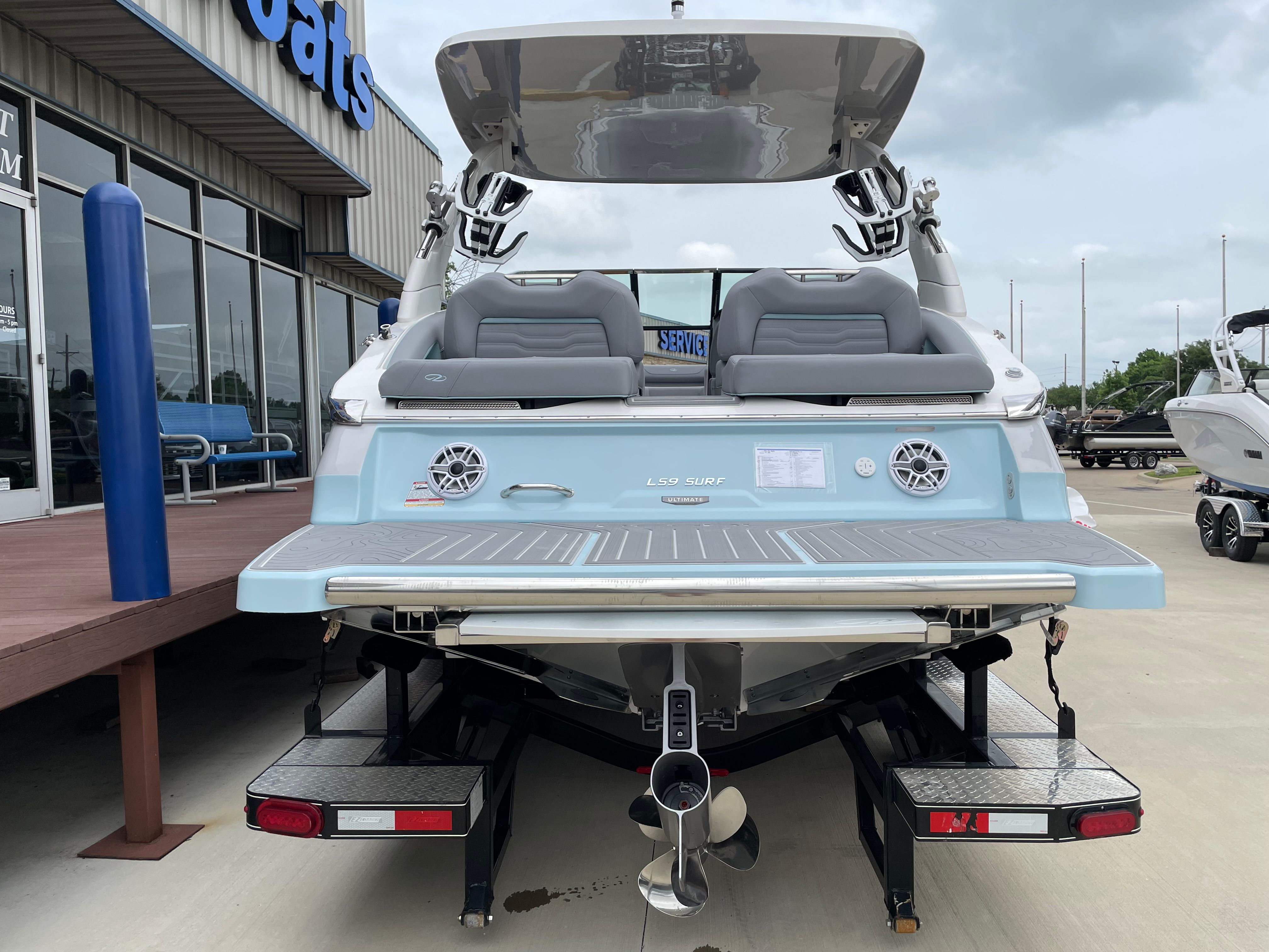 The 2026 Regal LS9 Surf Ultimate is loaded with special features that enhance both aesthetics and functionality. The hull’s Steel Grey color is beautifully contrasted by the Belle Isle Blue bootstripe and the Tahiti Beach White bottom, creating a visually stunning profile that turns heads at every marina. The interior is adorned with Z1LGC, Z2LGC, Z3LGC, and Z4LGC Lunar Grey accents, offering a modern and luxurious atmosphere for passengers. Additional Belle Isle Blue highlights in the Z5BIBS and Z6BIB areas add a touch of elegance and sophistication.This new bowrider is meticulously crafted to provide a premium boating experience. Every detail, from the color scheme to the layout, is designed to maximize comfort and enjoyment on the water. The spacious seating arrangement ensures everyone on board has a comfortable spot to relax, while the open bow design invites socializing and sunbathing.