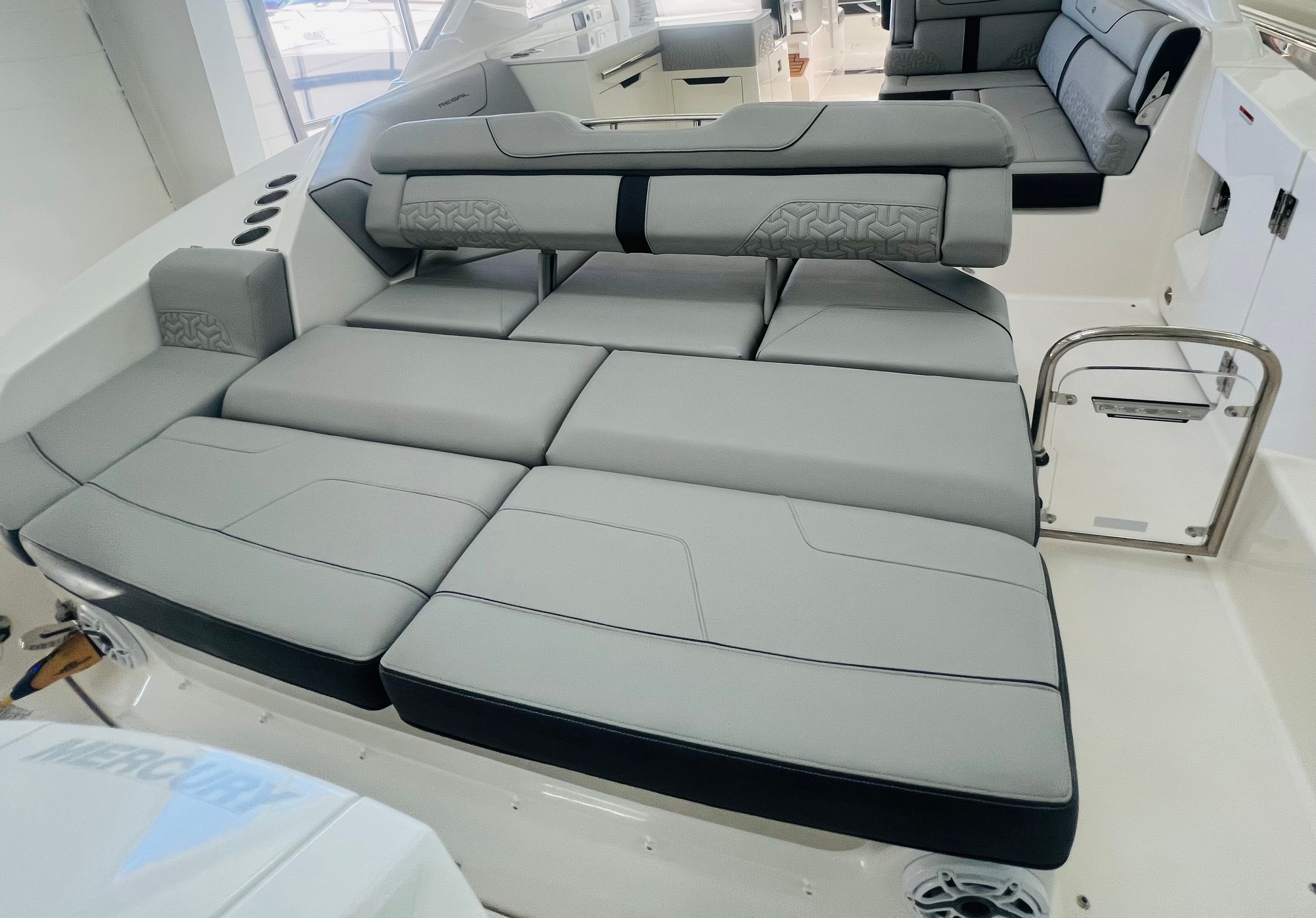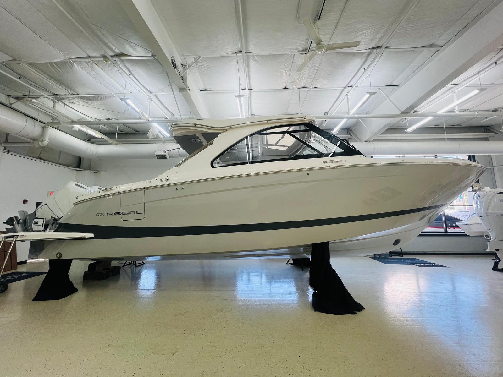 The Regal LX36 is designed with practicality in mind, making ownership as enjoyable as it is rewarding. The ample storage throughout the boat allows you to bring along all the gear, water toys, and supplies you need for a full day of fun. The ease of docking and maneuvering, thanks to the responsive twin Mercury 400 Verado engines, means you can confidently navigate marinas and tight spaces.Fuel efficiency is another highlight, ensuring you can spend more time on the water and less time at the fuel dock. The protective canvas enclosures and sunshades make it easy to adapt to changing weather conditions, keeping you and your guests comfortable at all times. The no bottom paint hull reduces maintenance requirements, allowing you to focus on enjoying your boat rather than worrying about upkeep.