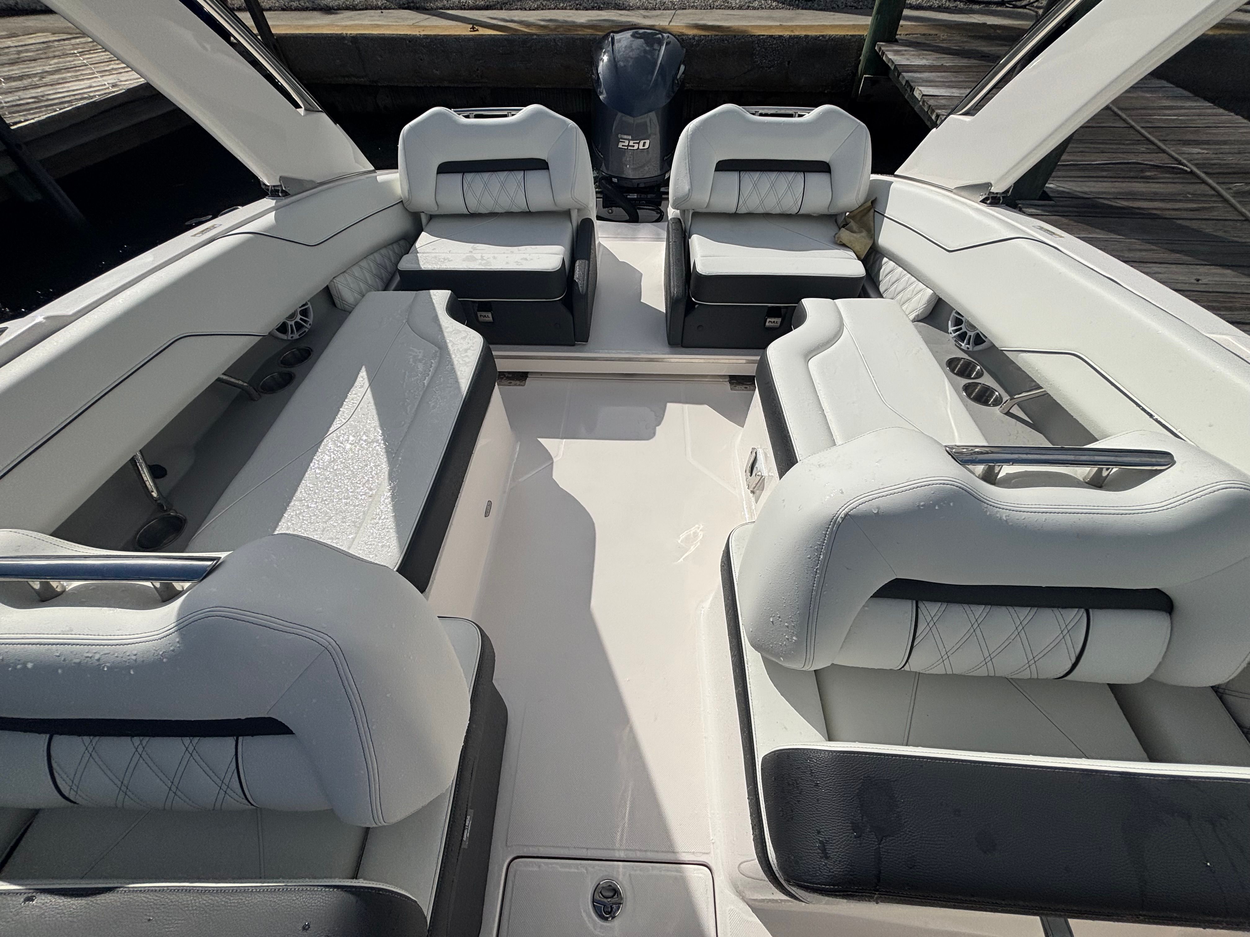 Powering the Regal LX4 is a robust Yamaha 4.2L F250XB Mechanical engine, delivering a commanding 250 horsepower. This single-engine setup provides smooth acceleration, responsive handling, and reliable performance, making it ideal for both leisurely cruises and thrilling water sports. The advanced trim tabs enhance stability and control, allowing you to navigate changing water conditions with confidence. Whether you’re gliding across calm lakes or tackling coastal waves, the LX4’s performance capabilities ensure a dynamic and enjoyable ride.
