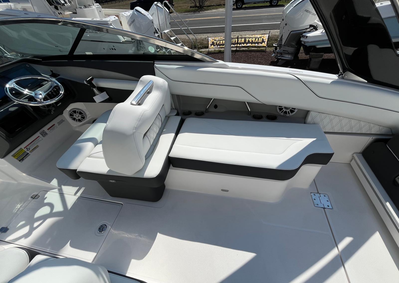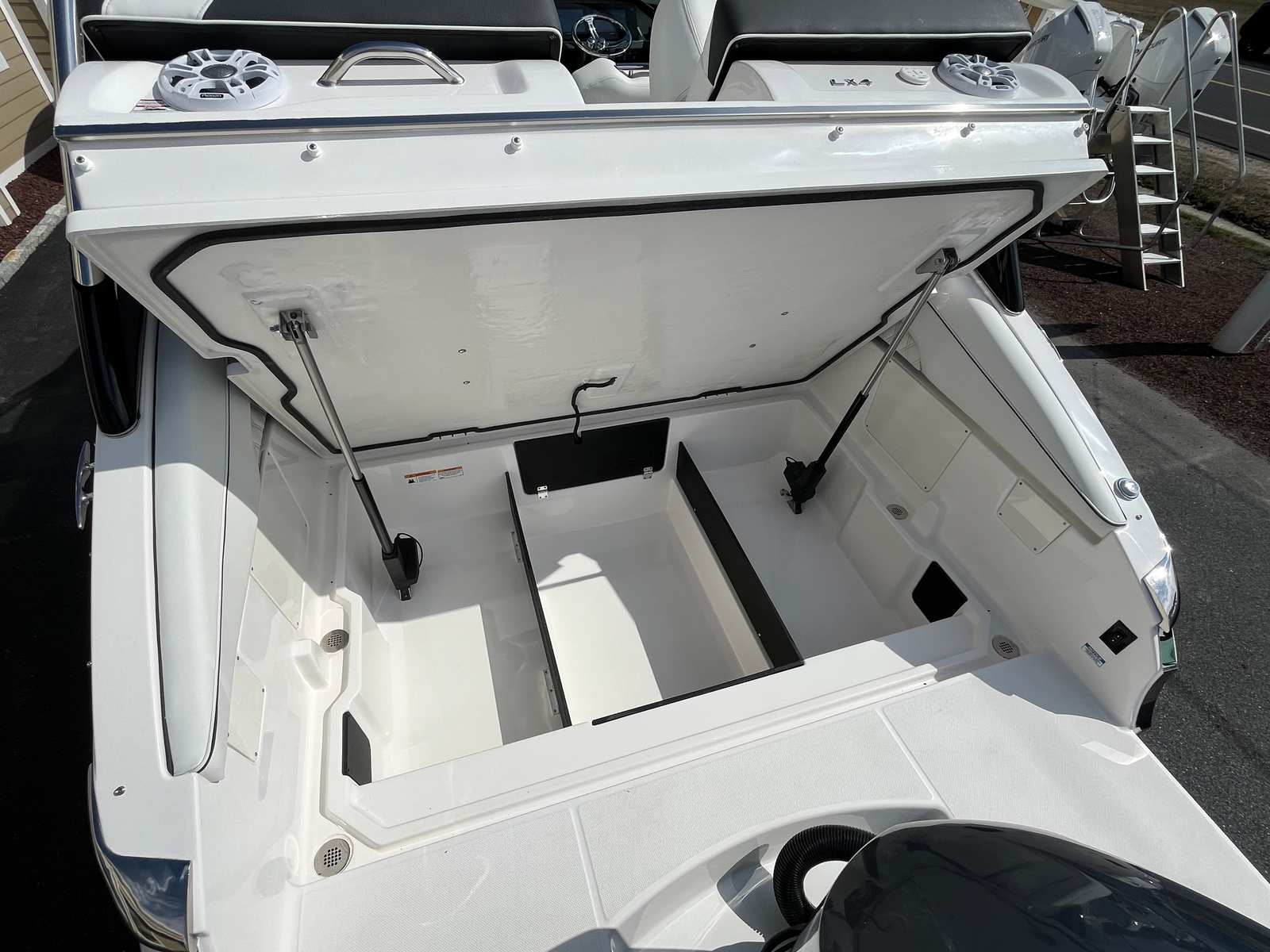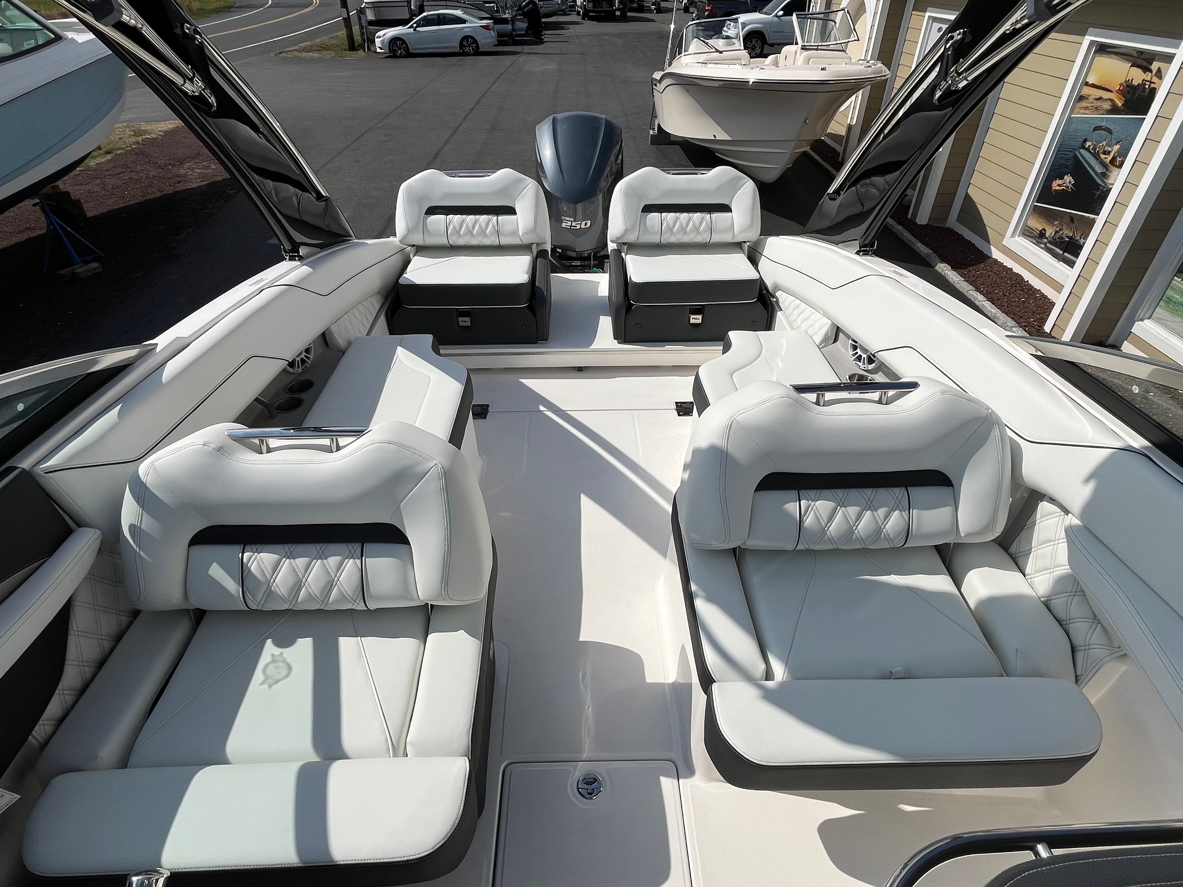 Practicality meets luxury in the 2025 Regal LX4. The dual battery system and onboard charger provide reliable power for all your electronics and accessories, so you can focus on having fun without worrying about running out of juice. The bow thruster makes docking and close-quarters maneuvering a breeze, reducing stress and making every outing more enjoyable.The bow and cockpit covers protect your investment from the elements, ensuring your boat stays clean and ready for your next adventure. The transom shower and pressure water package add convenience for swimmers and sunbathers, making it easy to rinse off and stay comfortable throughout the day.With its thoughtful design and user-friendly features, the LX4 is as practical as it is stylish, offering a seamless boating experience from start to finish.