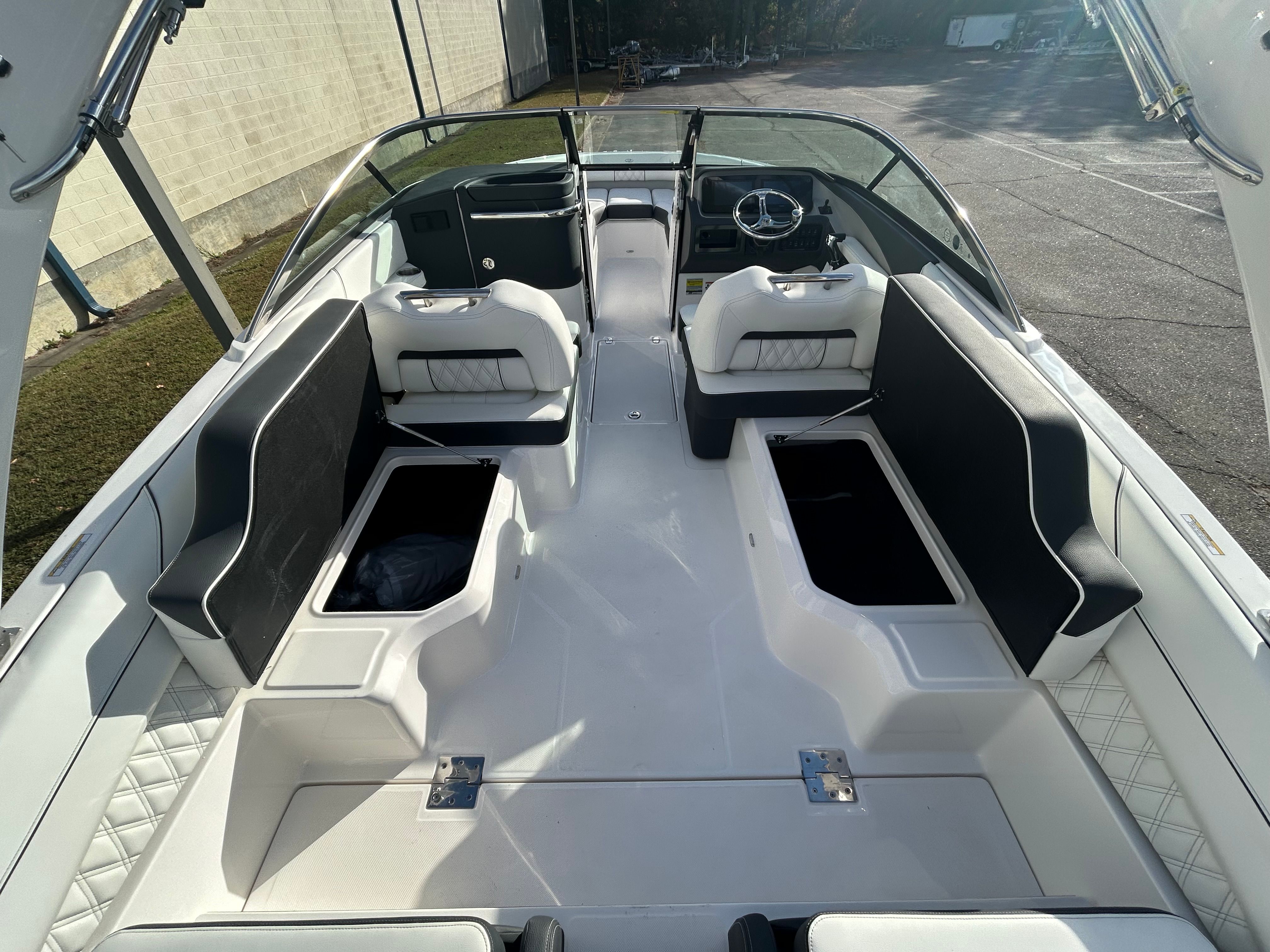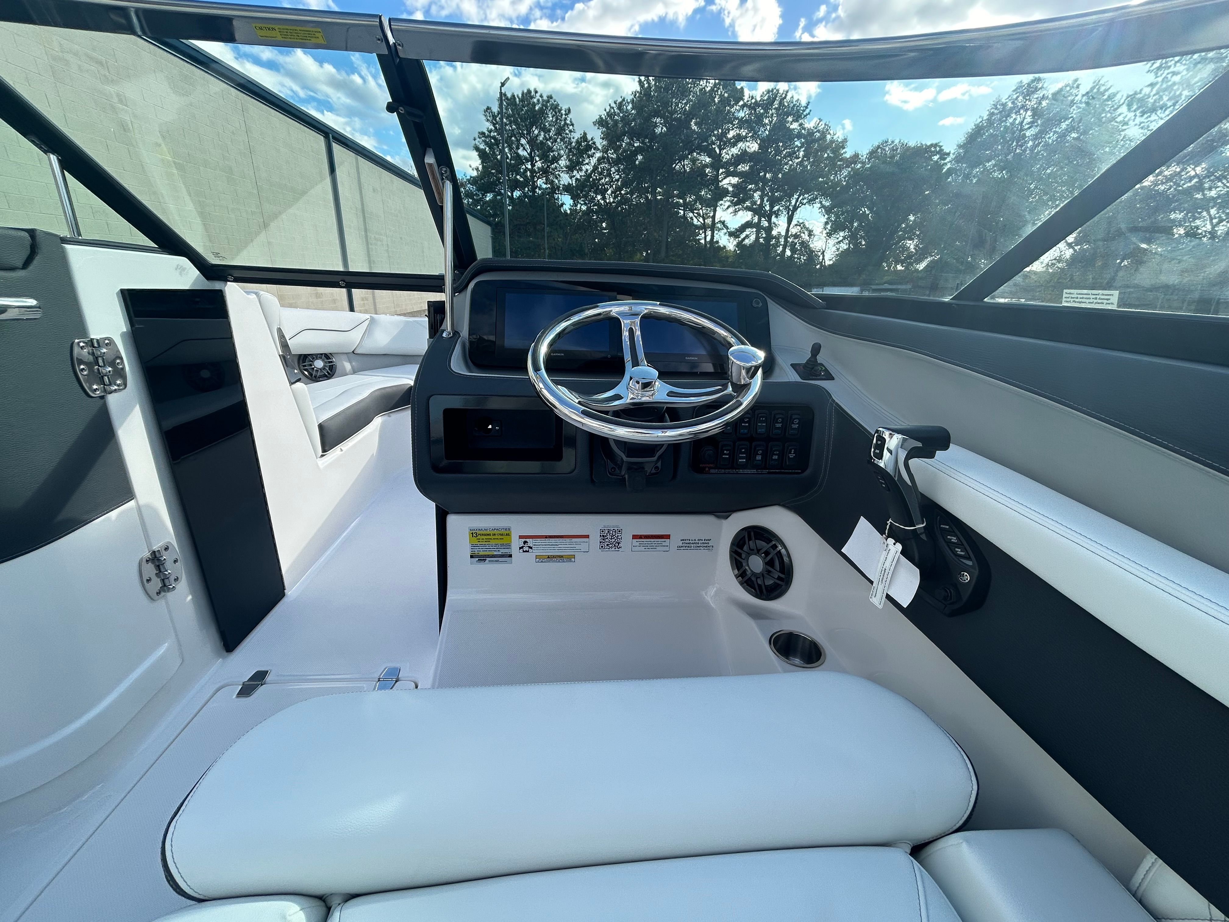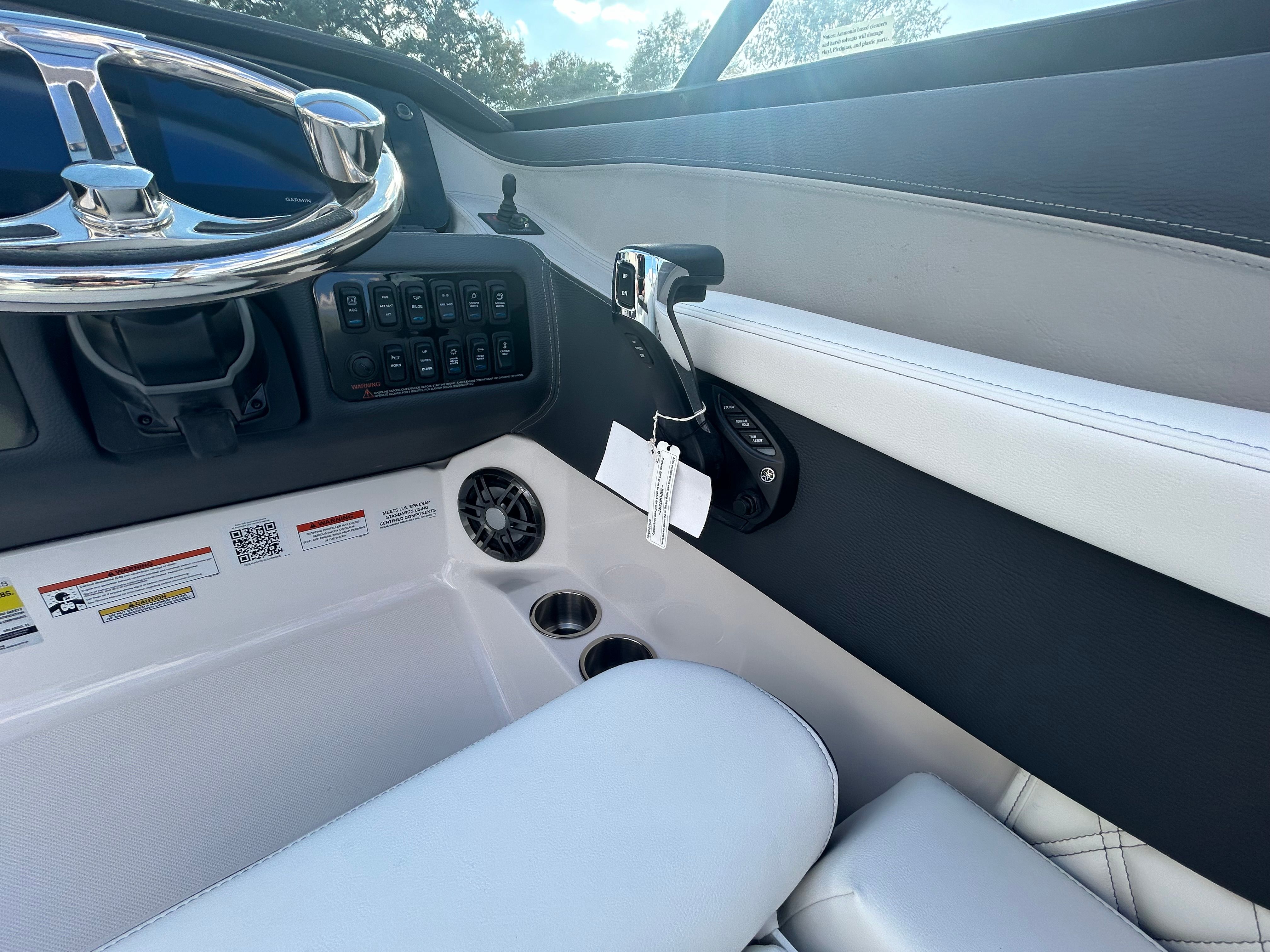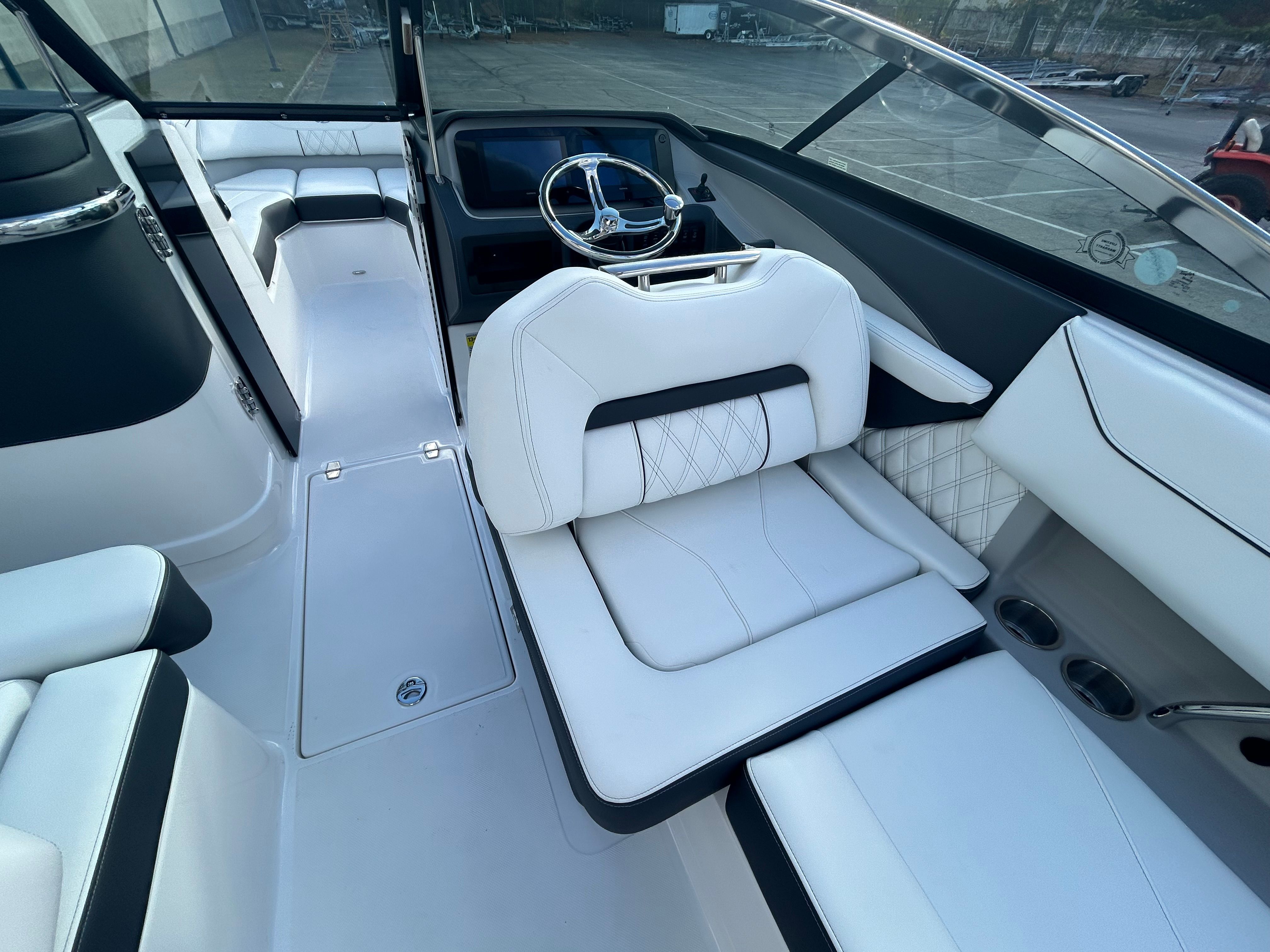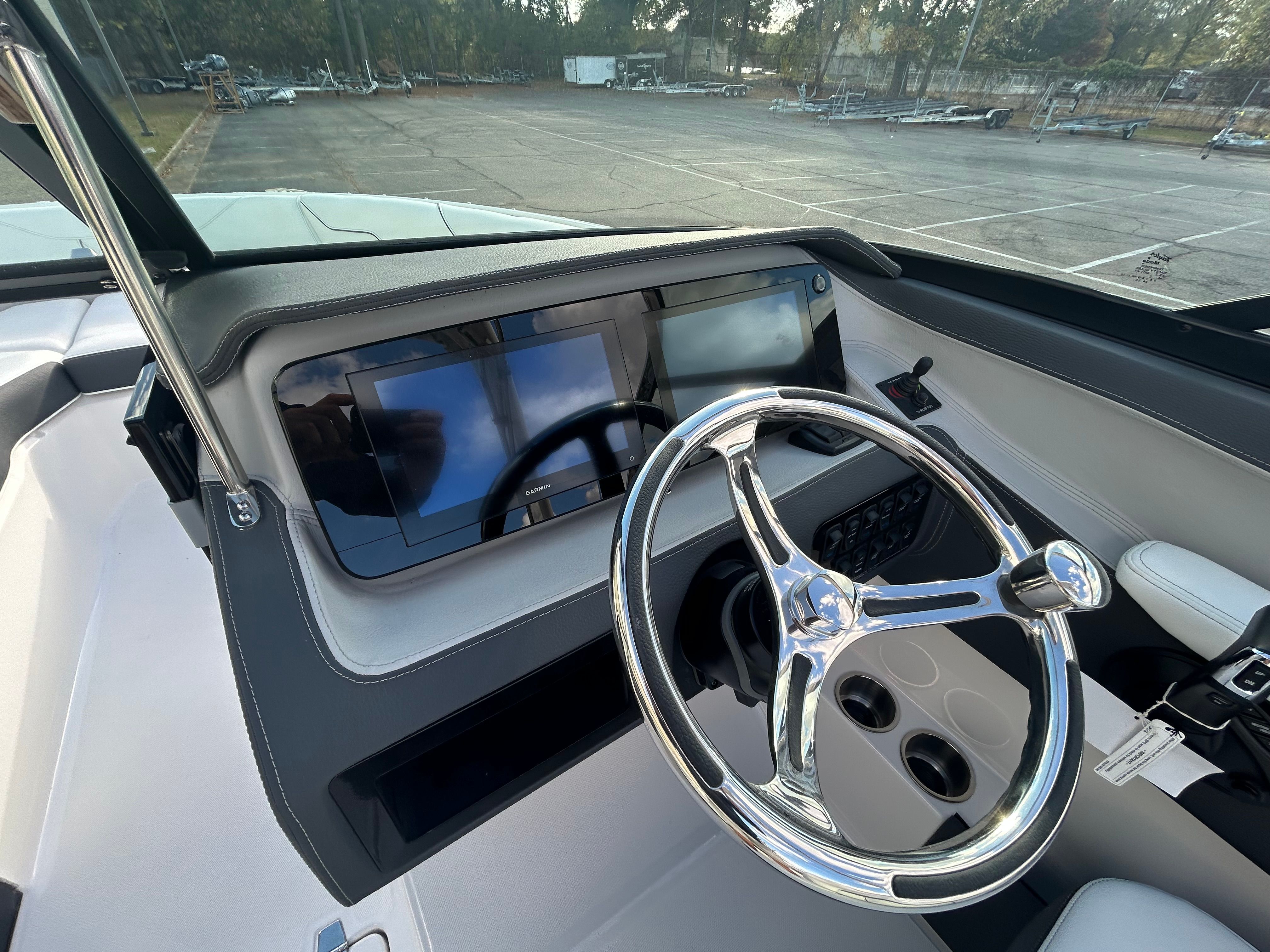 The Regal LX4 is designed with practicality in mind, offering features that simplify ownership and enhance your boating experience. The dual battery switch ensures you always have reliable power, even during long days on the water. The bow thruster makes docking and maneuvering in tight spaces a breeze, reducing stress and increasing safety. The protective bow and cockpit covers help keep your boat looking its best, while the durable Steel Grey canvas stands up to the elements.The transom shower and pressure water package provide added convenience for rinsing off gear, sandy feet, or saltwater after a swim. The spacious cockpit and bow areas offer ample room for storing water toys, coolers, and other essentials, making it easy to prepare for any adventure. The LX4’s efficient design and powerful engine also contribute to fuel savings, allowing you to spend more time enjoying the water and less time at the pump.