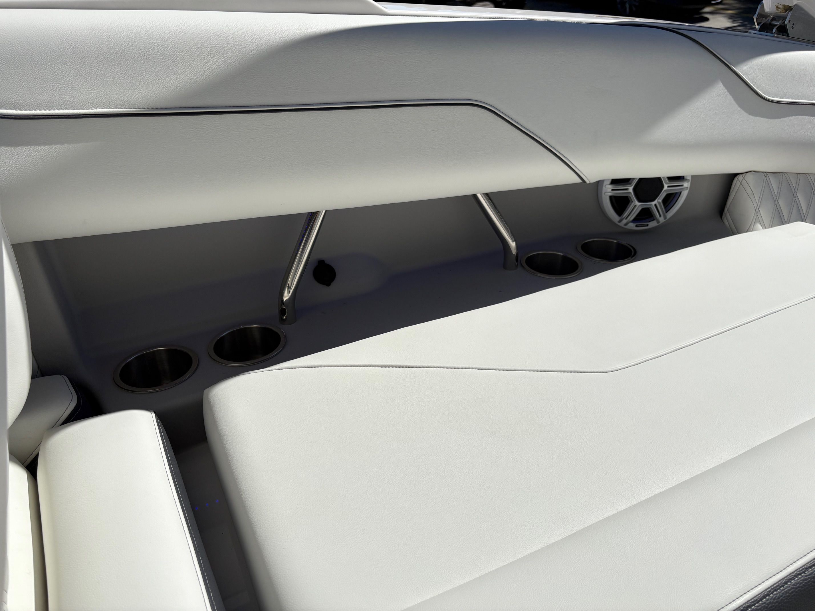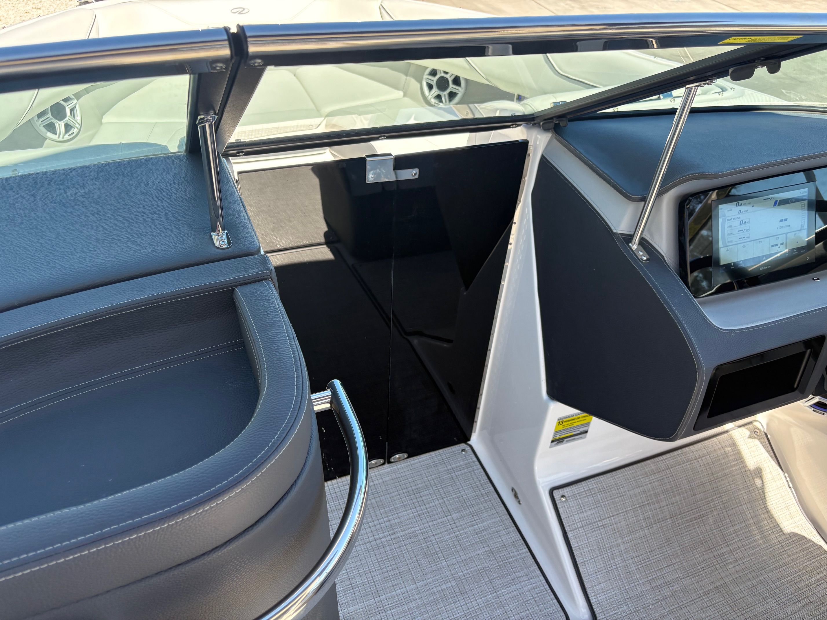 The Regal LX4 Bowrider is packed with features designed to enhance your boating experience. The boat’s Mediterranean Blue canvas adds a touch of elegance and protection, while the Bow Sunshade System—manual in operation—provides welcome relief from the midday sun, allowing you and your guests to relax in comfort. Bow and cockpit covers help keep your boat looking pristine, protecting it from the elements when not in use.Step into the cockpit and you’ll find a luxurious Seagrass Mat underfoot, offering both style and comfort. The dual battery switch with tray and cables ensures reliable power management, giving you peace of mind during extended outings. Every detail, from the color-coordinated accents to the ergonomic seating, has been carefully considered to create a welcoming and functional environment.