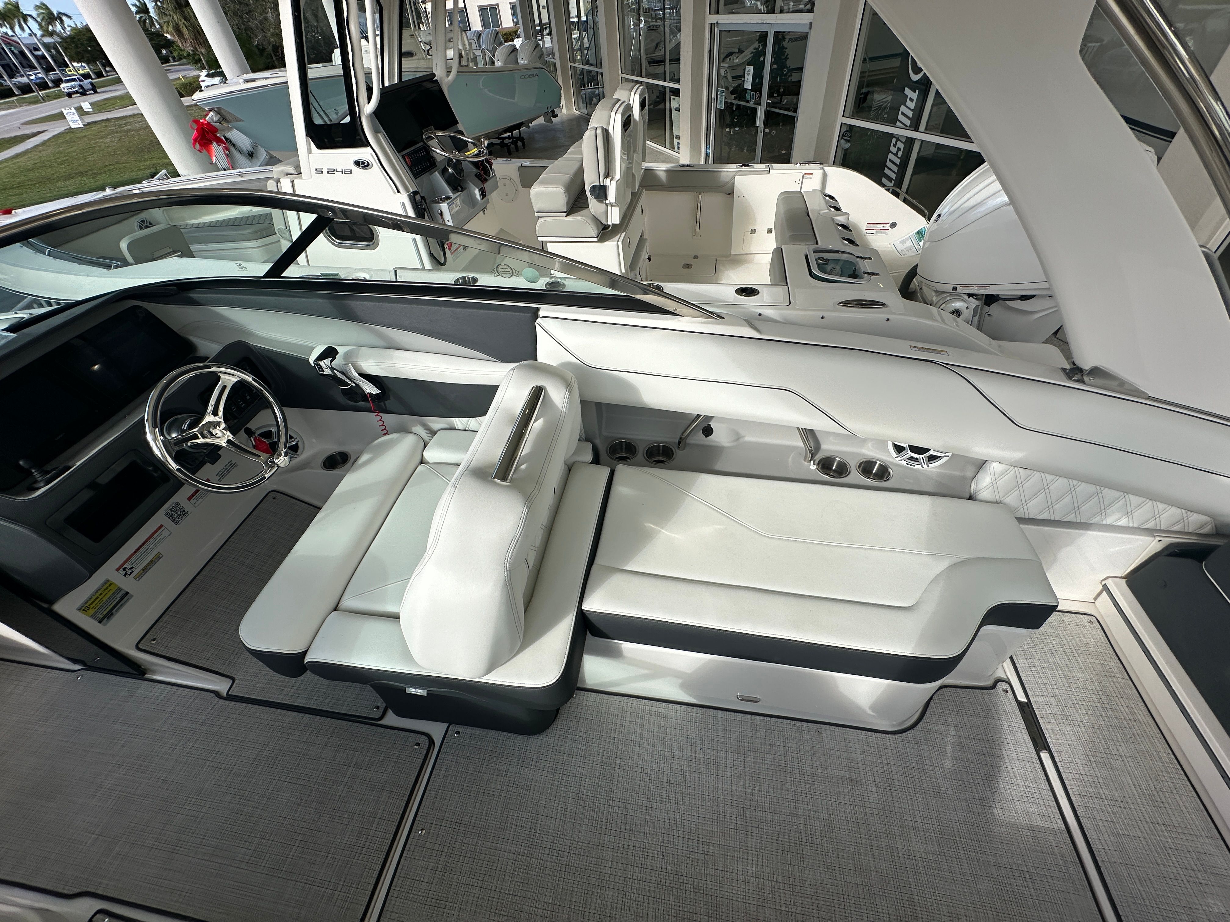 The Regal LX4 Bowrider is packed with premium features designed to enhance comfort, convenience, and fun. The Bow & Cockpit Covers provide essential protection from the elements, keeping your boat in pristine condition. The White Stamoid Upgrade Bimini Top and Mediterranean Blue canvas offer stylish shade options, perfect for sunny days on the water. The Cockpit Seagrass Mat adds a layer of comfort and sophistication underfoot, while the Dual Battery Switch with tray and cables ensures reliable power management for all your onboard electronics. Every detail, from the vibrant hull colors to the thoughtfully designed interior, reflects Regal’s dedication to superior craftsmanship and user-friendly design.