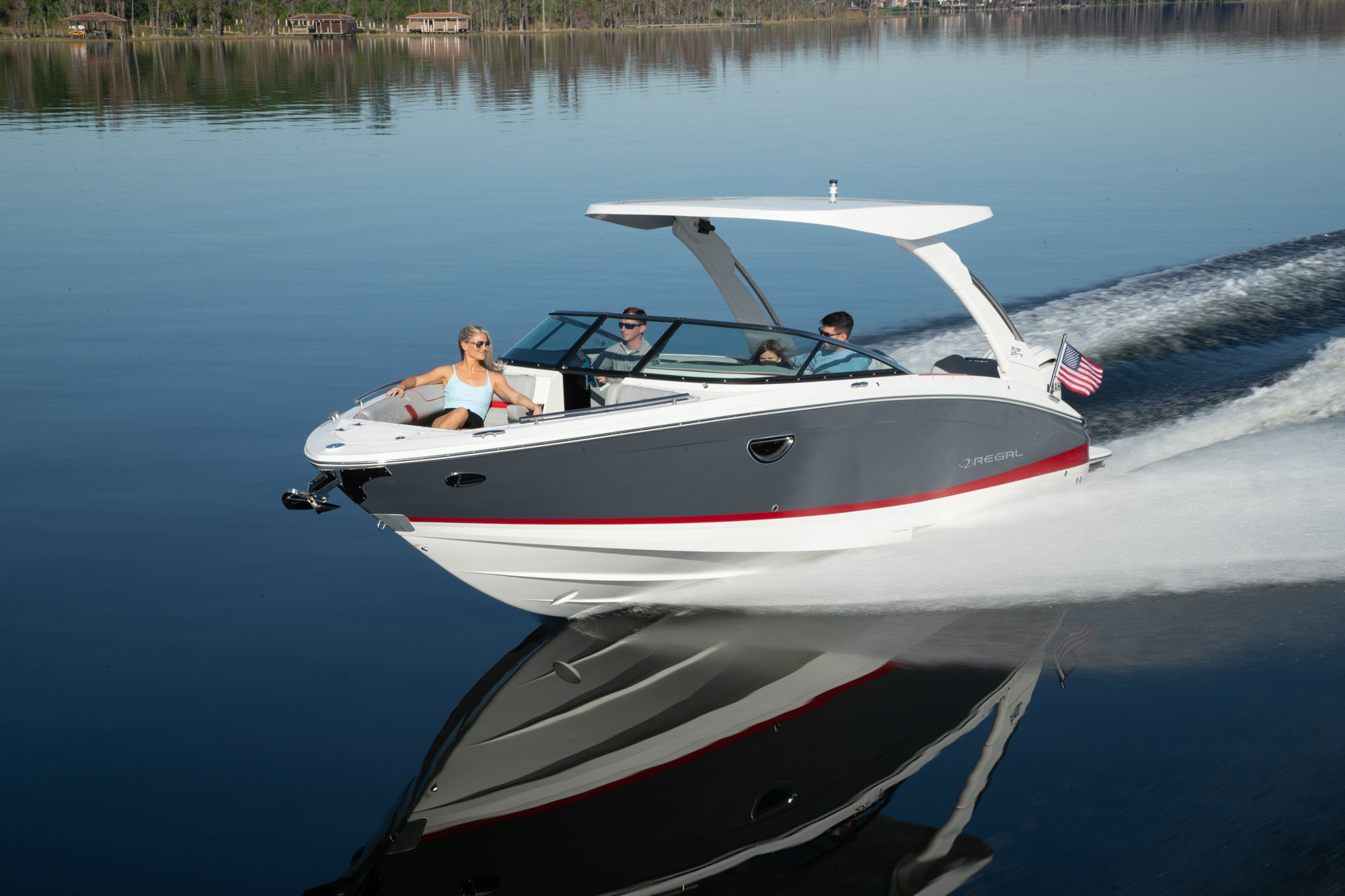 The Regal LX6 is designed with practicality in mind, making ownership as enjoyable as your time on the water. The Bow & Cockpit Covers help protect your investment from sun, rain, and debris, while the Docking Lights simplify nighttime arrivals and departures. The Bow Walk-Thru Doors provide easy access for loading gear or stepping aboard, and the Transom Shower & Pressure Water Package adds convenience after swimming or watersports.With its efficient hull design and powerful Yamaha engine, the LX6 offers excellent fuel efficiency and range, allowing you to explore farther and stay out longer. The thoughtful layout ensures plenty of storage for your gear, refreshments, and water toys, keeping the deck clutter-free and organized. Docking and maneuvering are made simple, so you can focus on enjoying your time on the water without stress.