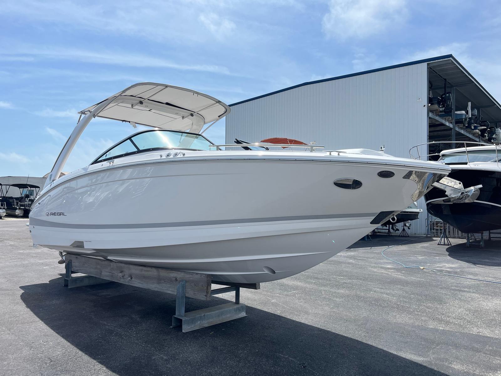 Practicality is at the core of the Regal LX6’s design. The dual battery system and charger ensure that you have dependable power for extended outings, while the bow thruster simplifies docking, even in challenging conditions. The trim tabs allow you to adjust the boat’s attitude for a smoother ride, improving fuel efficiency and comfort. The bow and cockpit covers protect your investment from sun and weather, reducing maintenance and preserving the boat’s appearance.The transom shower and pressure water package add a touch of luxury, making it easy to rinse off after swimming or clean up before heading home. The cockpit seagrass mat is not only stylish but also easy to clean, ensuring your boat stays looking its best with minimal effort. Every feature is designed to make ownership enjoyable and hassle-free, so you can spend more time on the water and less time worrying about upkeep.