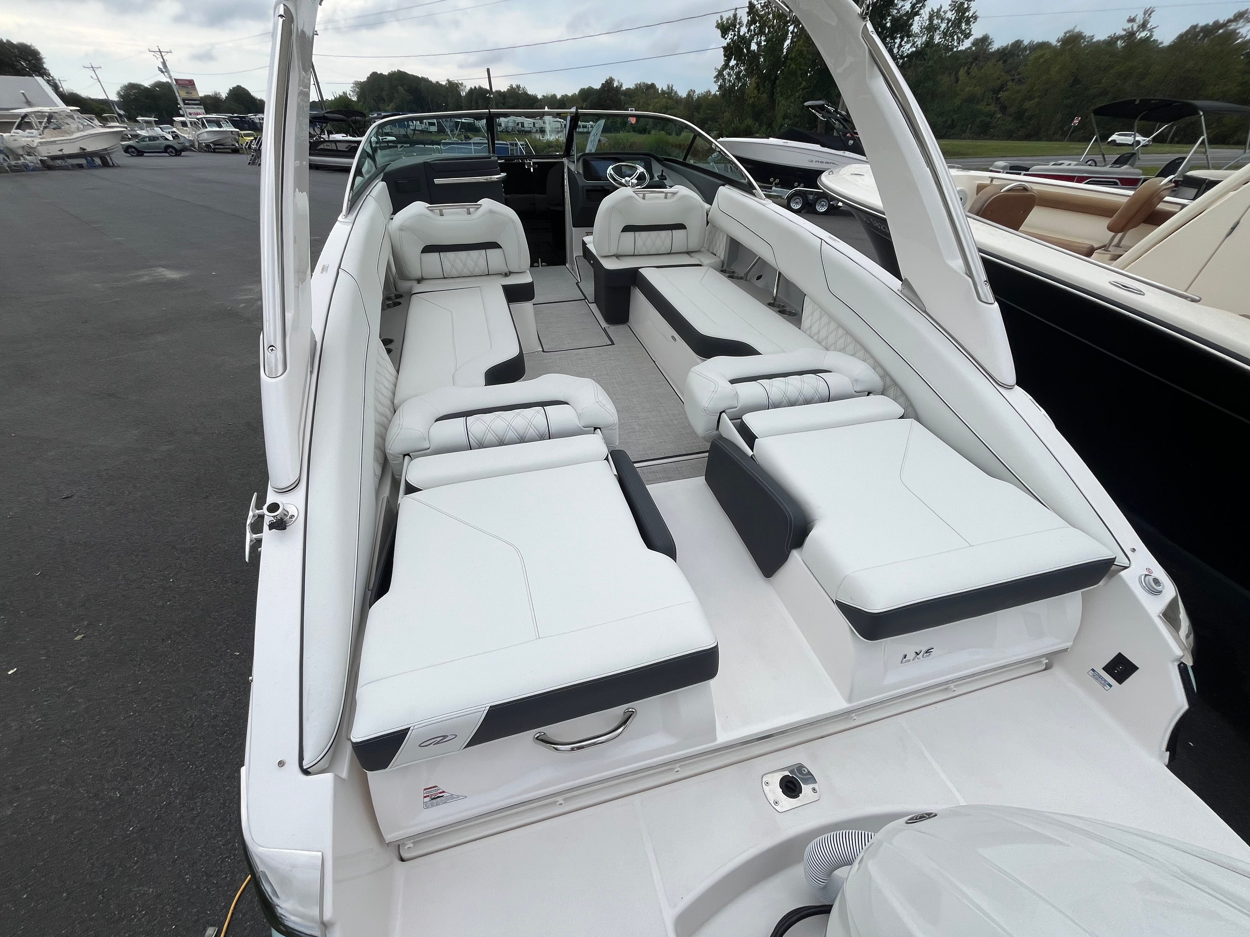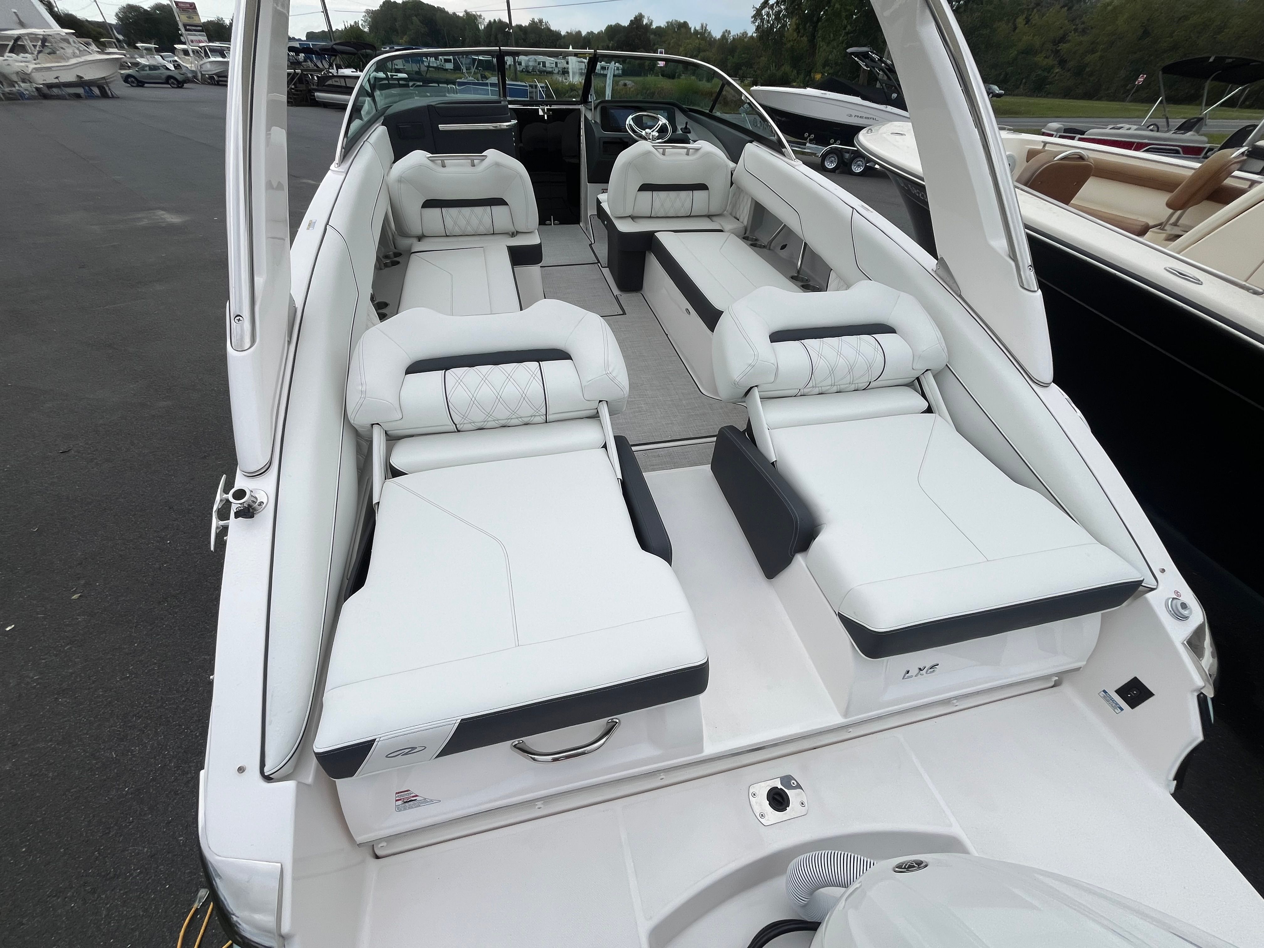 New 2026 Regal LX6 – Powered by a Yamaha F300 HP DEC, the LX6 is the ultimate expression of luxury, performance, and versatility in a 27’ bowrider. With Regal’s patented FasTrac Hull Design, this model delivers exhilarating performance, faster speeds, and improved fuel efficiency compared to the competition. The wide beam and premium layout create an expansive cockpit and bow area perfect for entertaining, watersports, or simply enjoying a sunset cruise in comfort. Combining sleek styling with advanced technology, the LX6 offers a true premium boating experience.