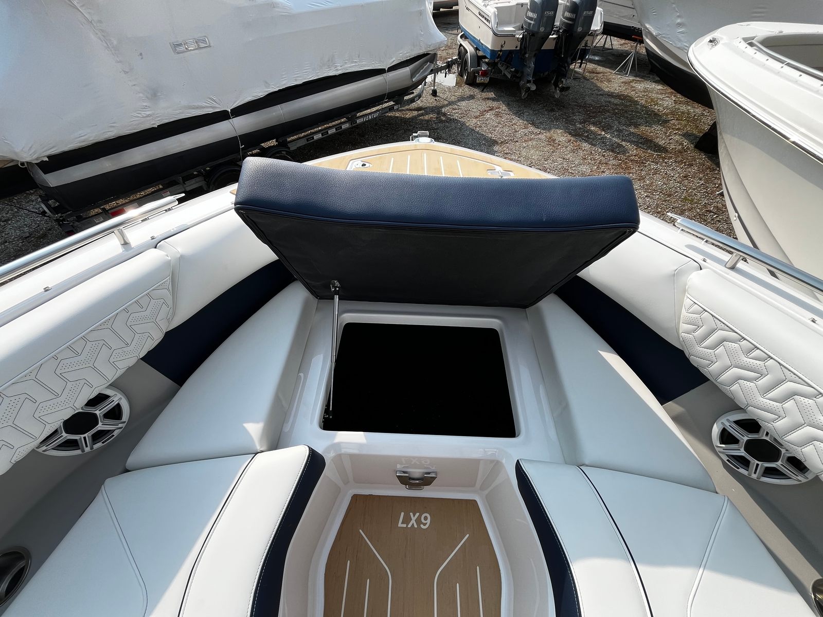 Hull Color – Tahiti Beach White with Mediterranean Blue Boot Stripe: A stunning, timeless color combination that radiates coastal sophistication.