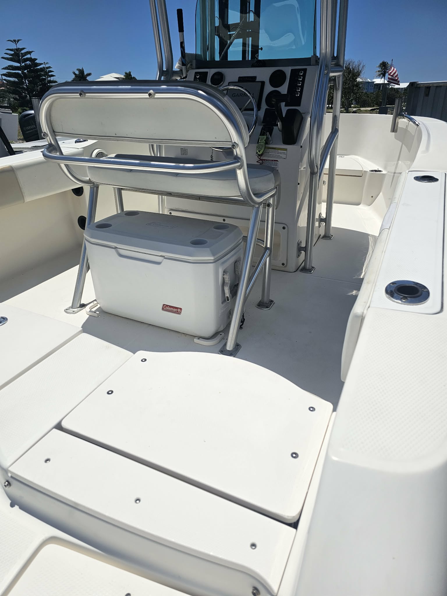 The layout is simple and functional, with open deck space for fishing, comfortable seating, and smart storage throughout. Robalo’s solid build quality and smooth ride make this a great all-around boat for Florida waters.