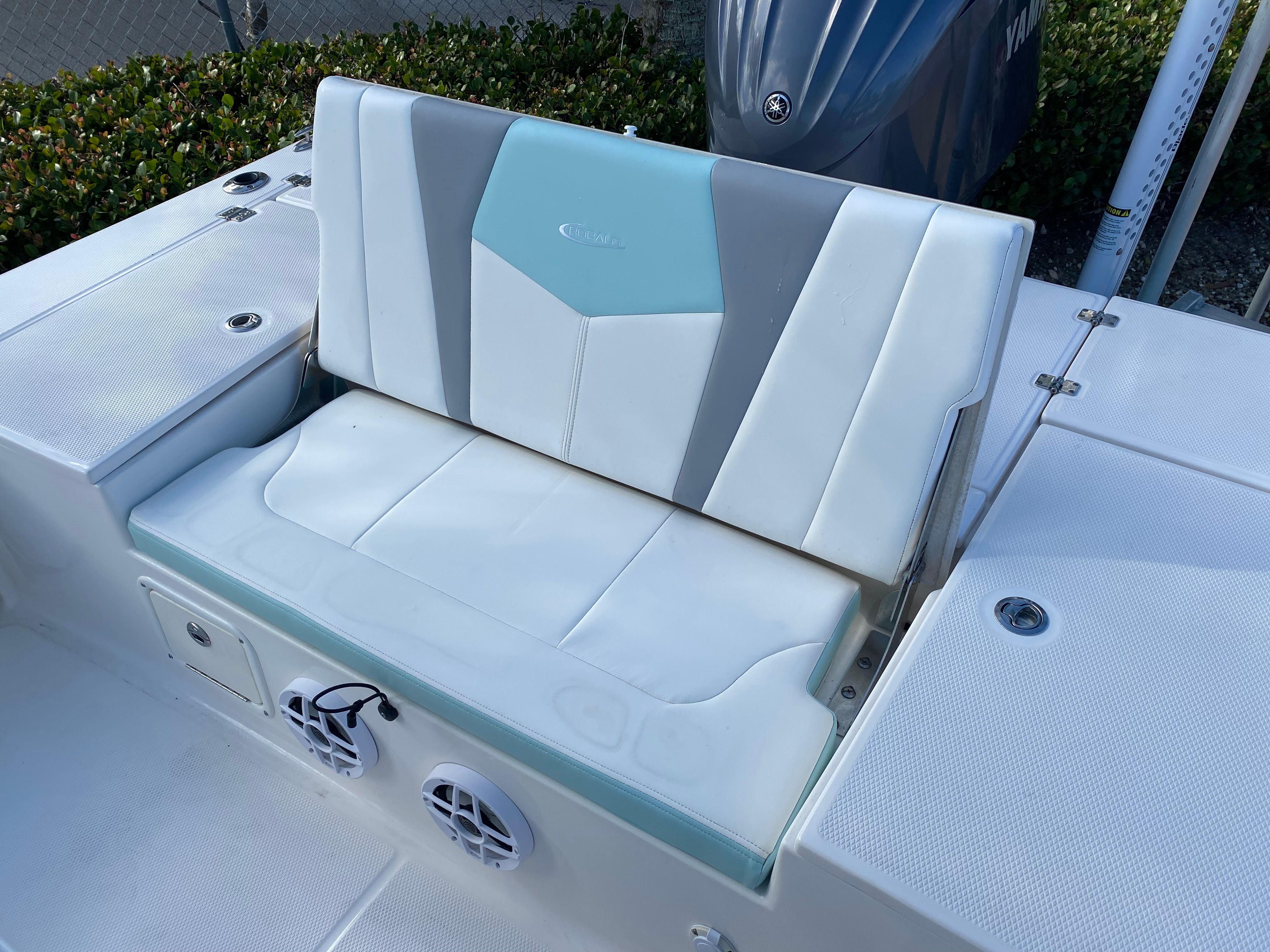 Under the hood, the Robalo R226 is powered by a single engine delivering an impressive 250 horsepower. With only 140 engine hours, this boat promises plenty of life and excitement ahead. The robust engine ensures smooth acceleration, responsive handling, and the ability to tackle various water conditions with confidence. Whether you’re navigating choppy waves or gliding across calm lakes, the R226’s performance capabilities make every outing thrilling and enjoyable. The power and efficiency of this Center Console boat for sale are perfect for those who demand both speed and reliability from their vessel.