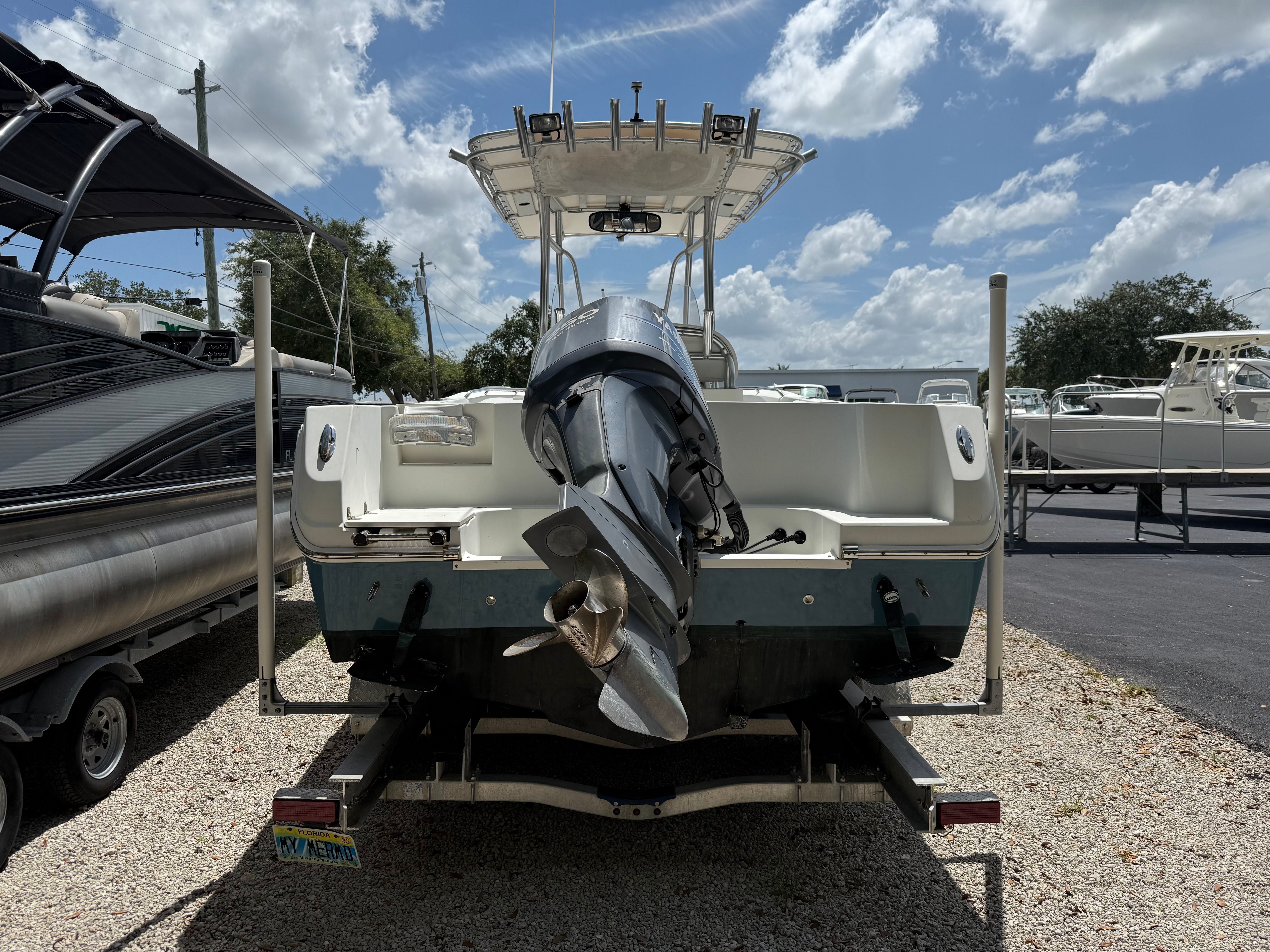 The 2007 Sailfish 2360 CC measures an impressive 23 feet in length, offering ample space for family, friends, and all your gear. This used center console boat is built to handle a variety of water conditions, making it ideal for coastal cruising, offshore fishing, or leisurely days at your favorite sandbar. The Sailfish 2360 CC’s sleek profile and robust construction ensure both durability and eye-catching appeal, making it a standout option among center console boats for sale.