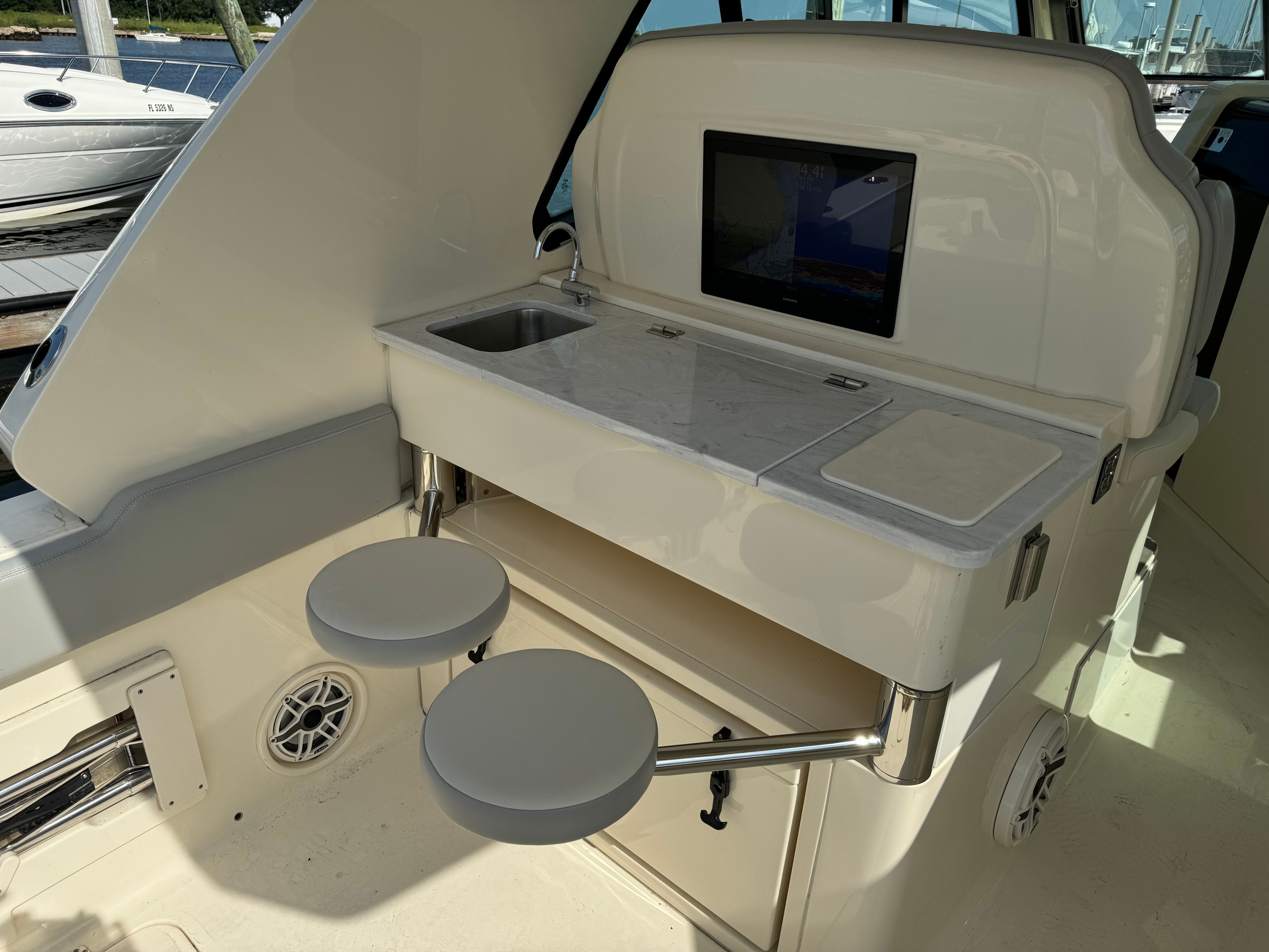 Under the hood, the Scout 350 LXZ is powered by three robust engines, delivering a combined 900 horsepower. With 400 engine hours, these motors have proven their reliability and are ready for many more seasons of smooth operation. The triple-engine setup ensures exhilarating acceleration, impressive top speeds, and exceptional handling in a variety of conditions. Whether you’re navigating choppy waters or enjoying a leisurely cruise, the Scout 350 LXZ offers a responsive and stable ride that inspires confidence. The advanced engineering behind this Center Console boat for sale guarantees efficient fuel consumption and reduced maintenance, making it a smart choice for those who value both performance and practicality.