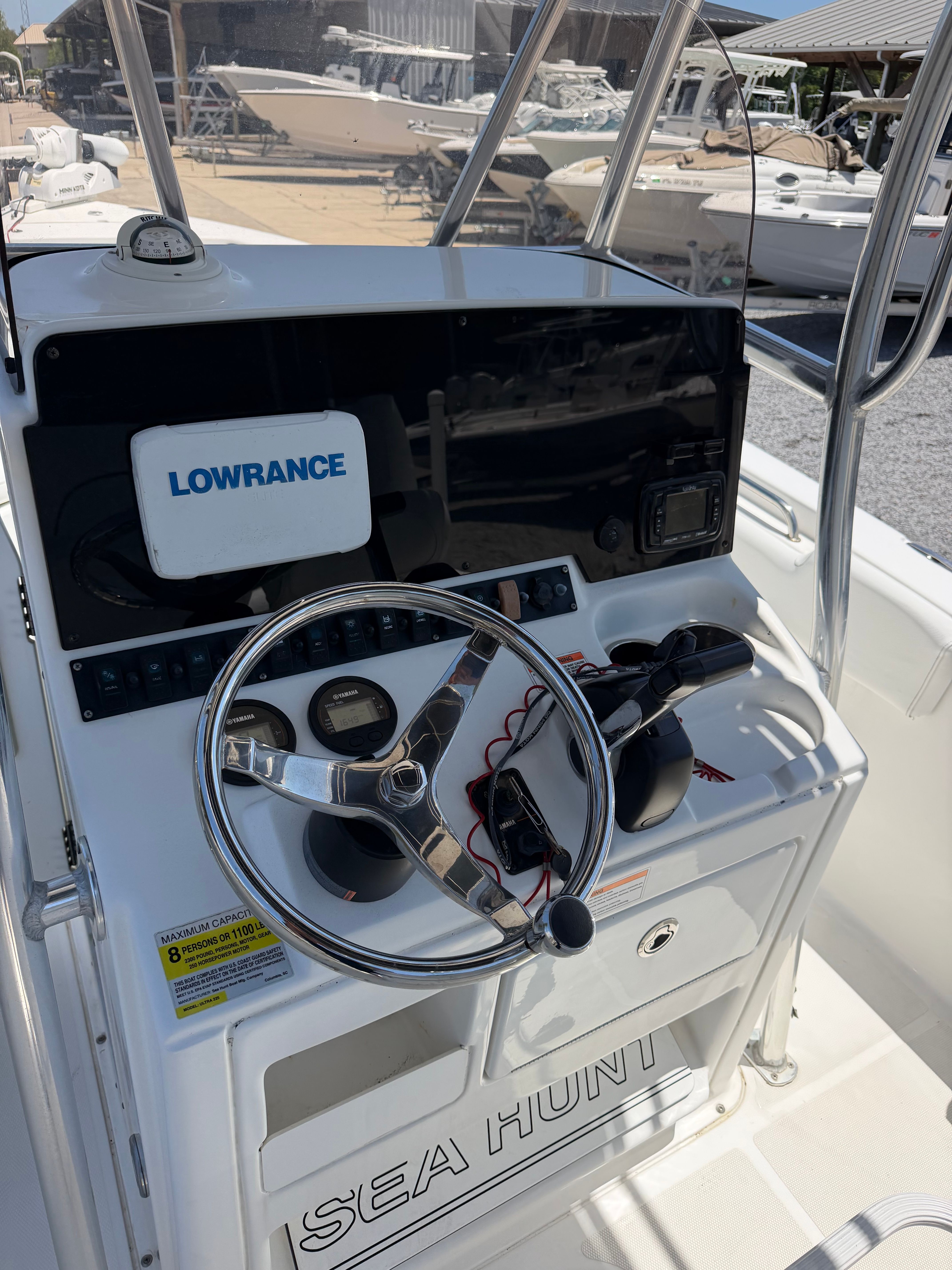 Powered by a single 200-horsepower engine with only 194 hours, the Sea Hunt 225 Ultra offers impressive performance and efficiency. The engine’s power allows for smooth acceleration, responsive handling, and the ability to navigate both calm bays and choppier offshore waters with confidence. Whether you’re heading out for a day of fishing or cruising with friends, the 225 Ultra’s engine delivers the reliability and strength you need for a variety of on-water activities. With its manageable size and responsive controls, docking and maneuvering are a breeze, making this center console boat for sale an excellent choice for both seasoned boaters and newcomers alike.