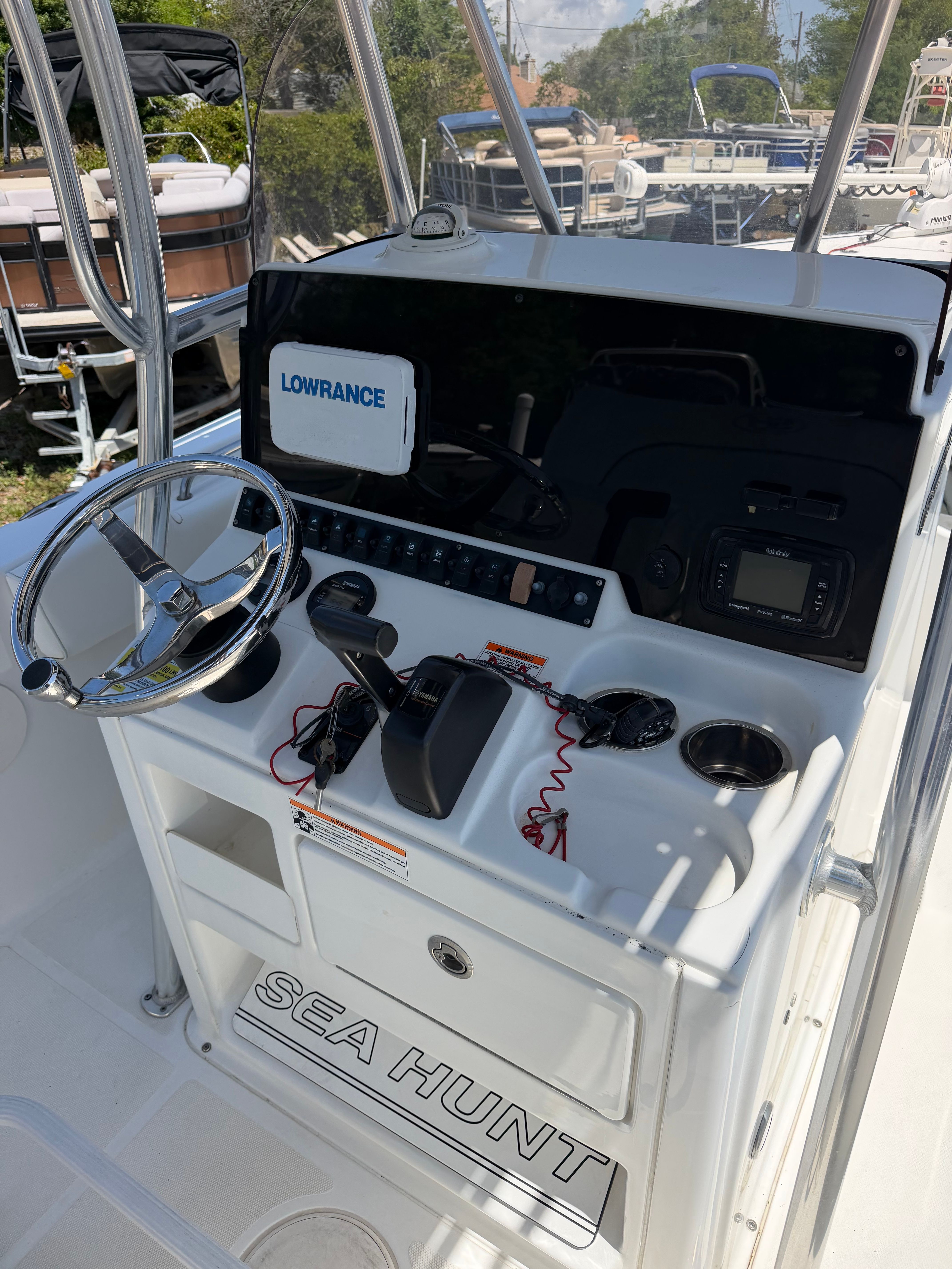 The Sea Hunt 225 Ultra is as practical as it is enjoyable. Its manageable 22-foot length makes storage and trailering straightforward, allowing you to take your adventures wherever you choose. The efficient engine helps keep fuel costs in check, so you can spend more time on the water and less time at the pump. The center console design offers excellent visibility and control, making docking and navigating tight spaces simple and stress-free. Whether you’re storing fishing gear, water toys, or picnic supplies, the thoughtful layout provides plenty of space for all your essentials. This Sea Hunt boat for sale is built to make ownership easy and enjoyable, so you can focus on what matters most—having fun.