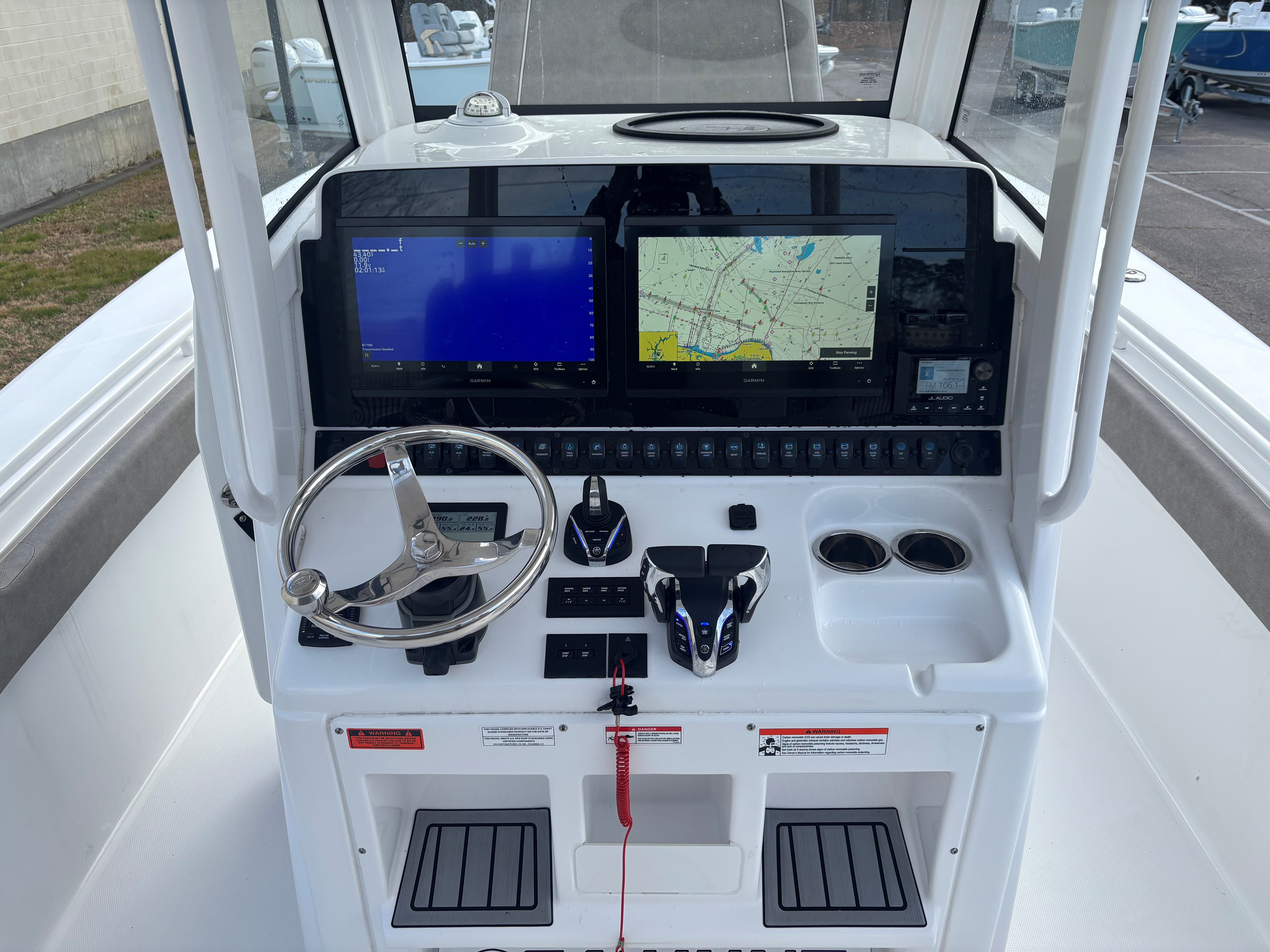 Powering this impressive vessel are twin engines, delivering a combined 600 horsepower. With only 55 engine hours, these engines provide robust and reliable performance, ensuring you have the power you need for offshore fishing, cruising, or water sports. The dual-engine setup not only enhances speed and acceleration but also offers added safety and maneuverability, making it easier to navigate a variety of water conditions. Whether you’re chasing the next big catch or enjoying a day of island hopping, the Sea Hunt 28 Gamefish CB’s performance capabilities are sure to impress.