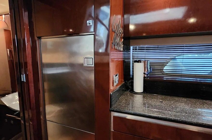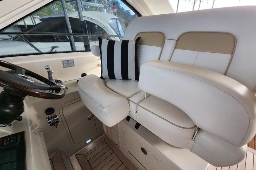 Powered by twin Cummins QSB 480 diesel engines with pod drives, this Sundancer delivers confident performance and remarkable joystick maneuverability, especially in tight spaces or while docking. Both pods have been recently serviced. The engines have approximately 800 hours, and the 15kW Onan generator has around 600 hours, with recent service completed. The boat has also been buffed and waxed on all fiberglass surfaces.