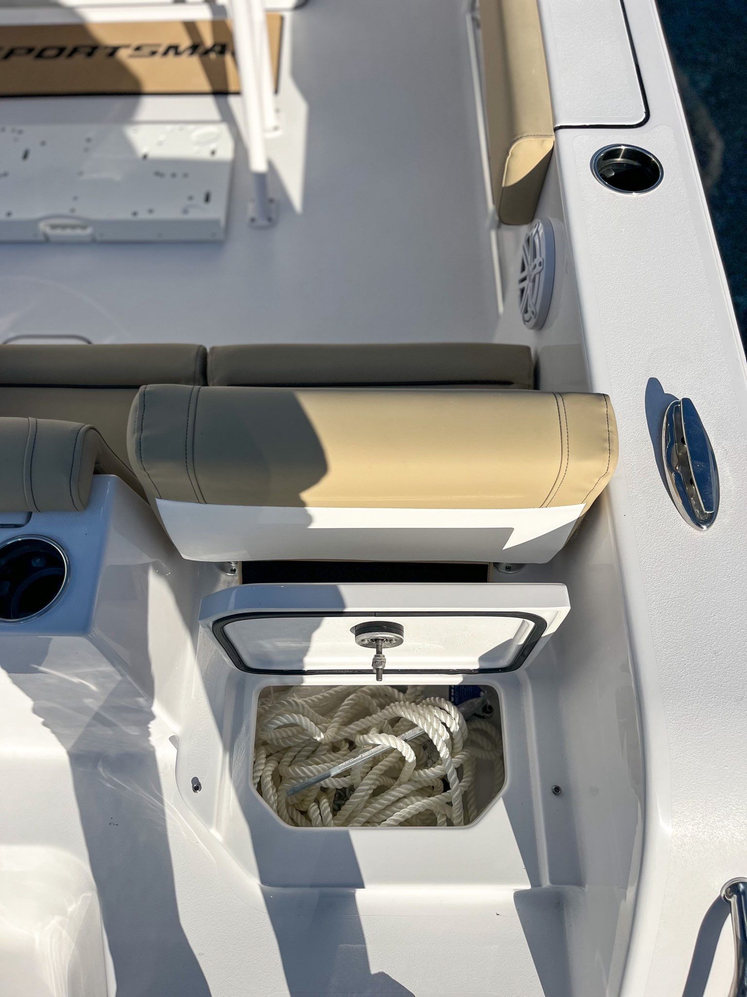 The Sportsman Heritage 231 is loaded with features designed to enhance your boating experience. The Edson 13” stainless steel Comfort Grip steering wheel with PowerKnob provides precise control and effortless maneuverability, making docking and tight turns a breeze. Navigation and fish-finding are elevated with the dual Garmin GPSMAP 1243xsv 12" screens, offering advanced chart plotting and sonar capabilities for safe and successful journeys.For anglers, the gunwale rod holders provide convenient storage for your favorite rods, keeping them secure and within easy reach. The ProMariner ProTournament Elite 3 Battery Charger (2-Bank) ensures your batteries stay charged and ready for extended trips, while the slide-out track for a YETI cooler offers easy access to refreshments and supplies. Under the leaning post, dedicated tackle storage keeps your gear organized and accessible, so you’re always prepared for the next big catch.Anchoring is effortless with the windlass system, which includes an anchor and 300 feet of rope, allowing you to set up in your favorite spot with minimal effort. The fiberglass console features a comfortable footrest and integrated storage, maximizing both comfort and utility. The Heritage 231’s hull, finished in Harbor Haze Blue, not only looks stunning but is also engineered for durability and smooth performance.