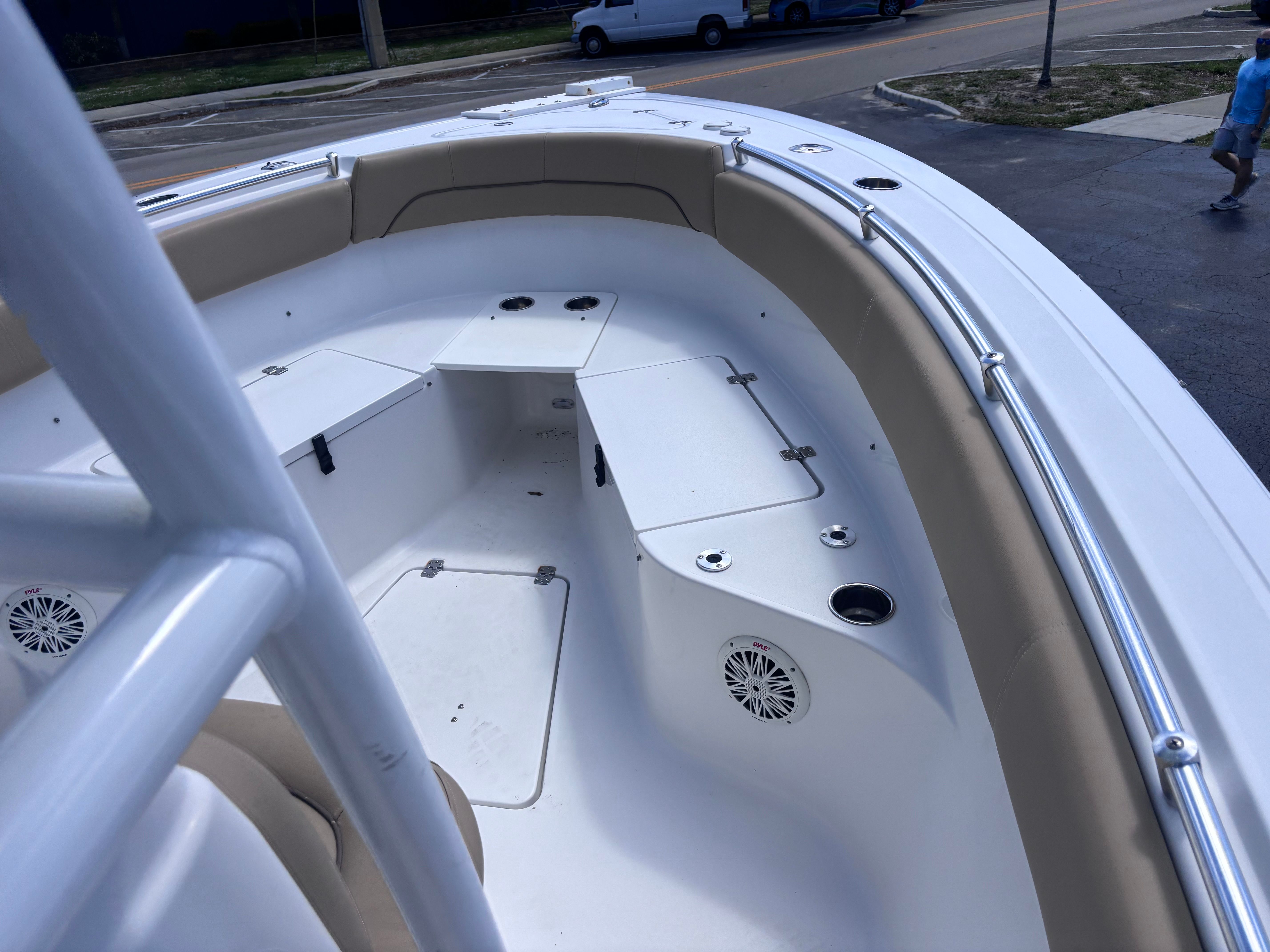 The Sportsman 251 Heritage is as practical as it is enjoyable. Its manageable 25.02-foot length makes docking and trailering straightforward, even for those new to boating. The efficient hull design contributes to fuel savings, allowing you to spend more time on the water and less time at the pump. Storage compartments are strategically placed throughout the boat, providing ample space for fishing gear, water toys, and personal belongings.The dual-engine setup not only boosts performance but also enhances maneuverability, making tight turns and docking maneuvers easier and more precise. The center console design offers excellent visibility for the captain, ensuring safe navigation in a variety of conditions. Whether you’re exploring coastal waters, cruising inland lakes, or heading offshore, this Sportsman boat for sale is equipped to handle it all.