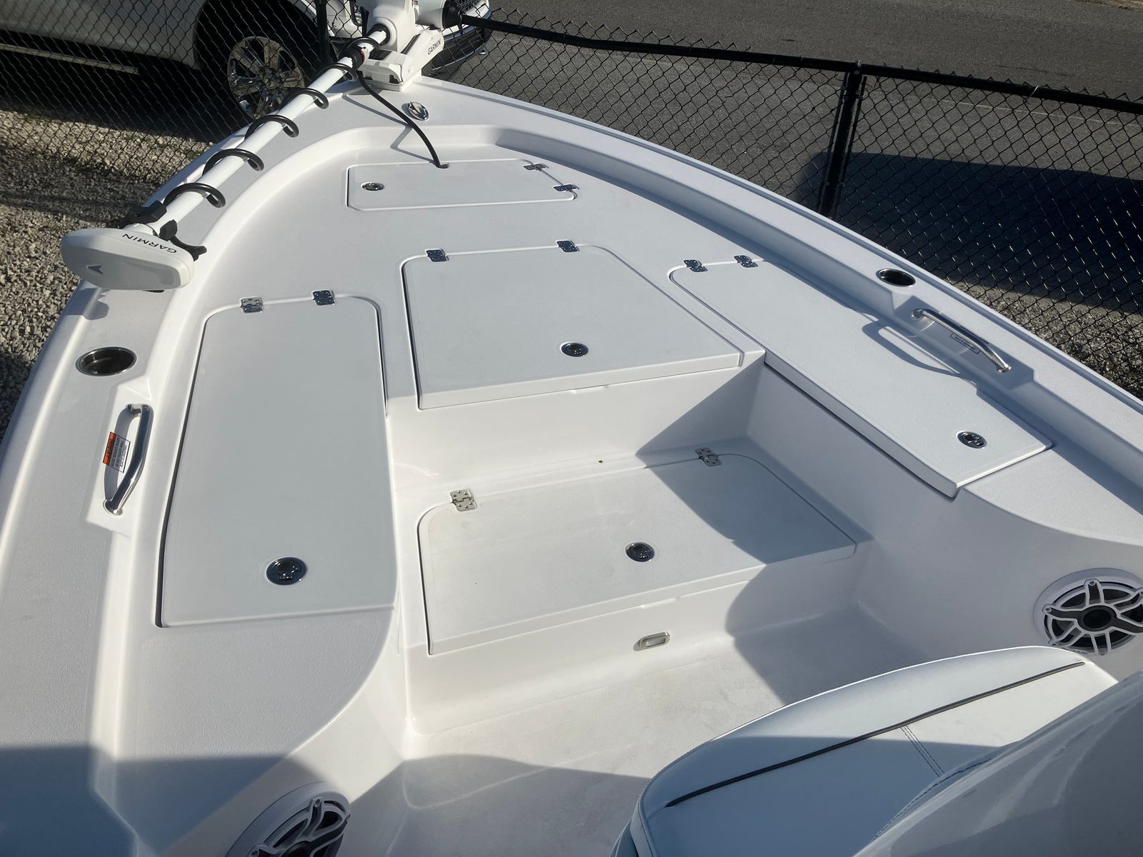 The 2026 Sportsman Masters 227 Bay Boat is loaded with premium features that enhance both its functionality and visual appeal. The hull side is finished in a cool Ice Blue, while the hull bottom boasts a classic Snow White, creating a striking contrast that turns heads wherever you go. The HardTop underside is also finished in Ice Blue, adding a touch of sophistication and style to your boating experience. The upholstery is crafted in Icecap White, providing a clean and modern look that is both comfortable and durable.For those who demand precision and control, the Edson 13” Stainless Steel Comfort Grip Steering Wheel with PowerKnob offers effortless handling and maneuverability. Anglers will appreciate the four gunwale rod holders, providing convenient storage and easy access to your favorite fishing rods. The Garmin Force Kraken Trolling Motor (75", White) delivers quiet, powerful, and efficient trolling capabilities, making it easier than ever to position your boat exactly where you want it.Entertainment is taken to the next level with the Garmin Fusion/JL Audio Ultra Premium DSP Upgrade, ensuring crystal-clear sound quality whether you're relaxing at anchor or cruising at speed. The white powder coating throughout the boat adds a layer of durability and a sleek, unified appearance that complements the overall design.