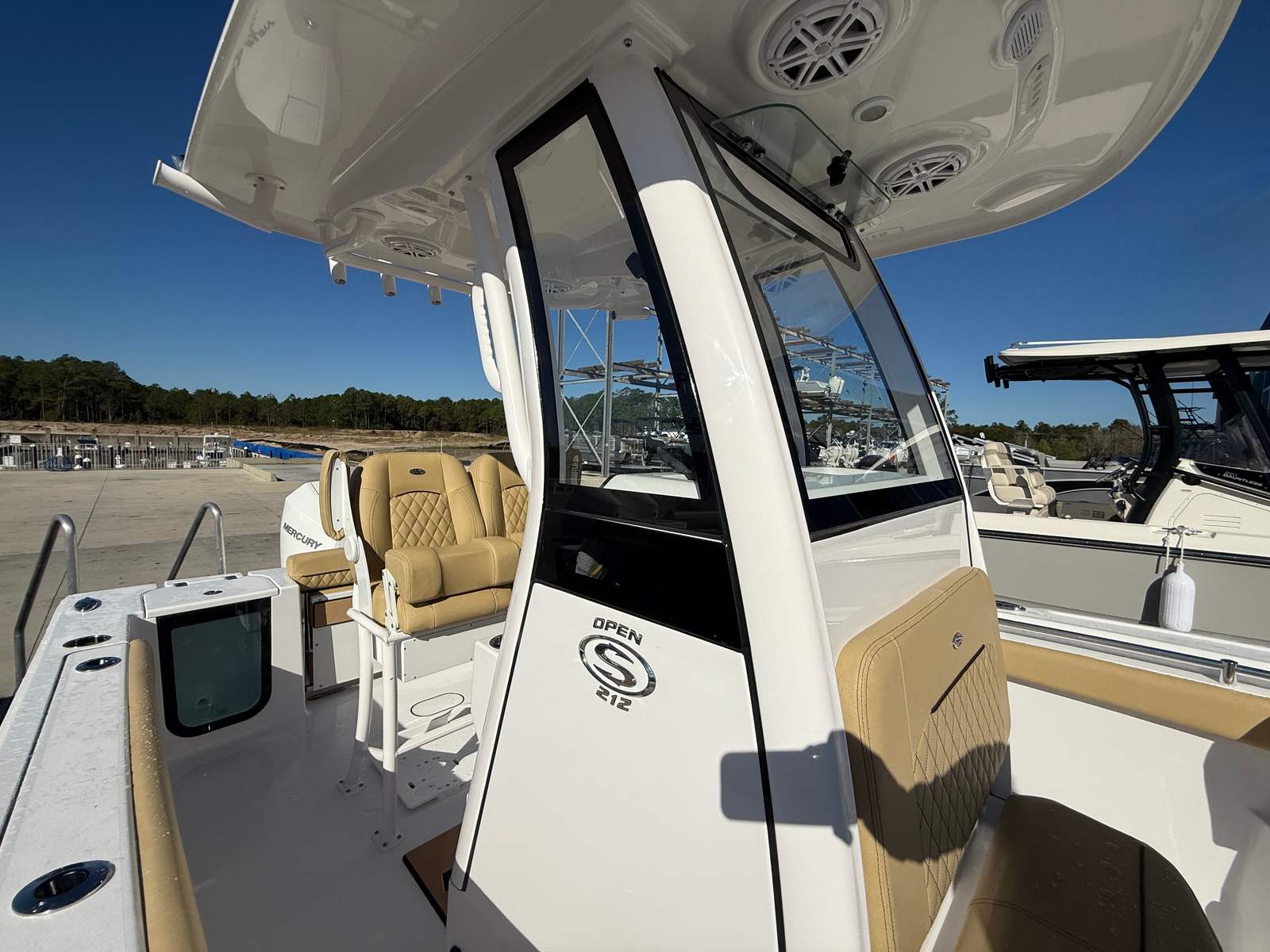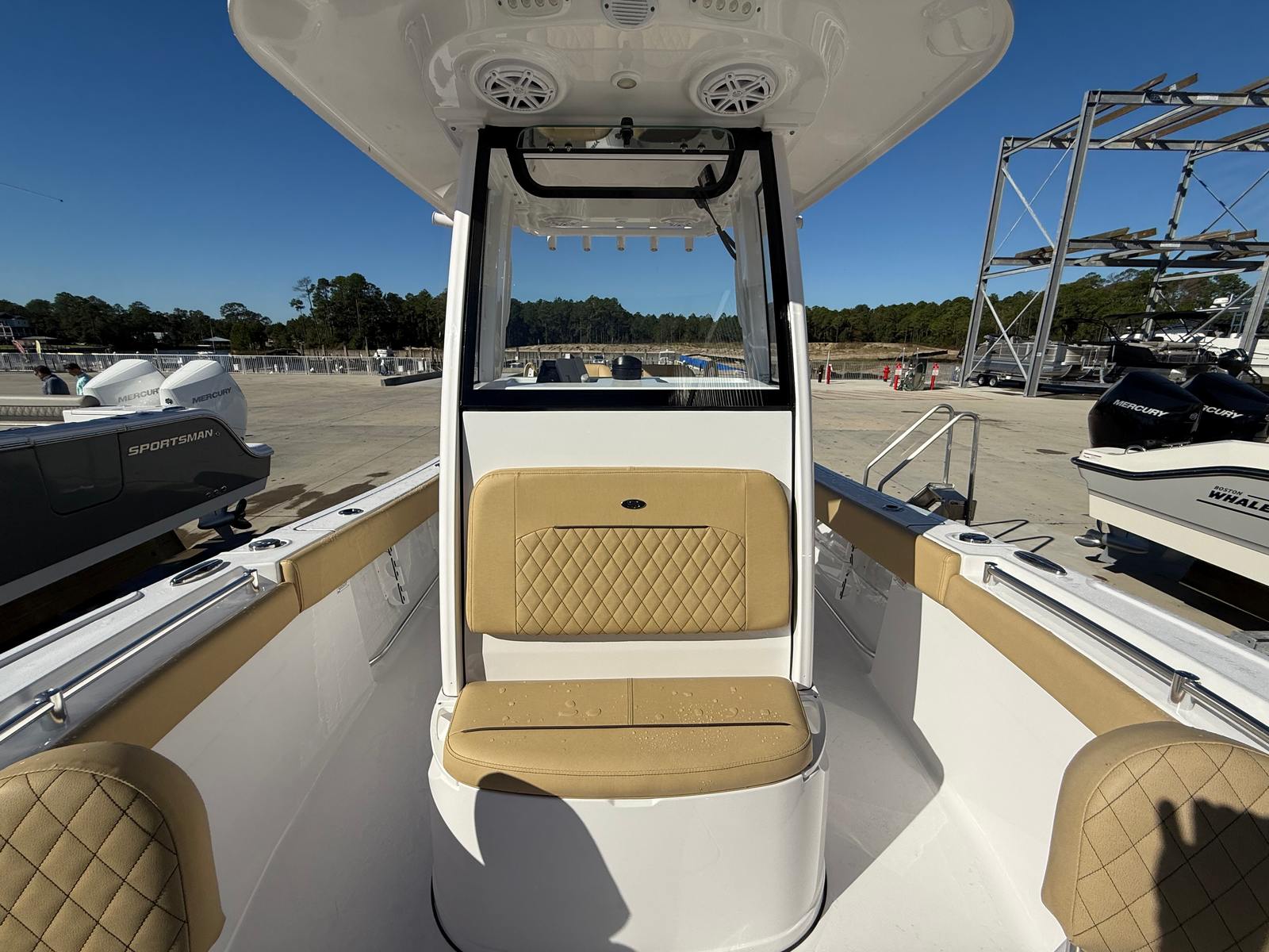 The 2025 Sportsman Open 212 is a 21.4-foot Center Console boat that perfectly balances size and functionality. Its manageable length makes it ideal for both seasoned boaters and newcomers alike, offering ample space for relaxation, fishing, and socializing without feeling overwhelming. The pristine Snow White hull sides and bottom, complemented by a matching HardTop underside and white powdered coating, give this boat a clean, sophisticated look that turns heads at the dock and on the water. The Desert Tan upholstery adds a touch of warmth and comfort, creating an inviting atmosphere for you and your guests.