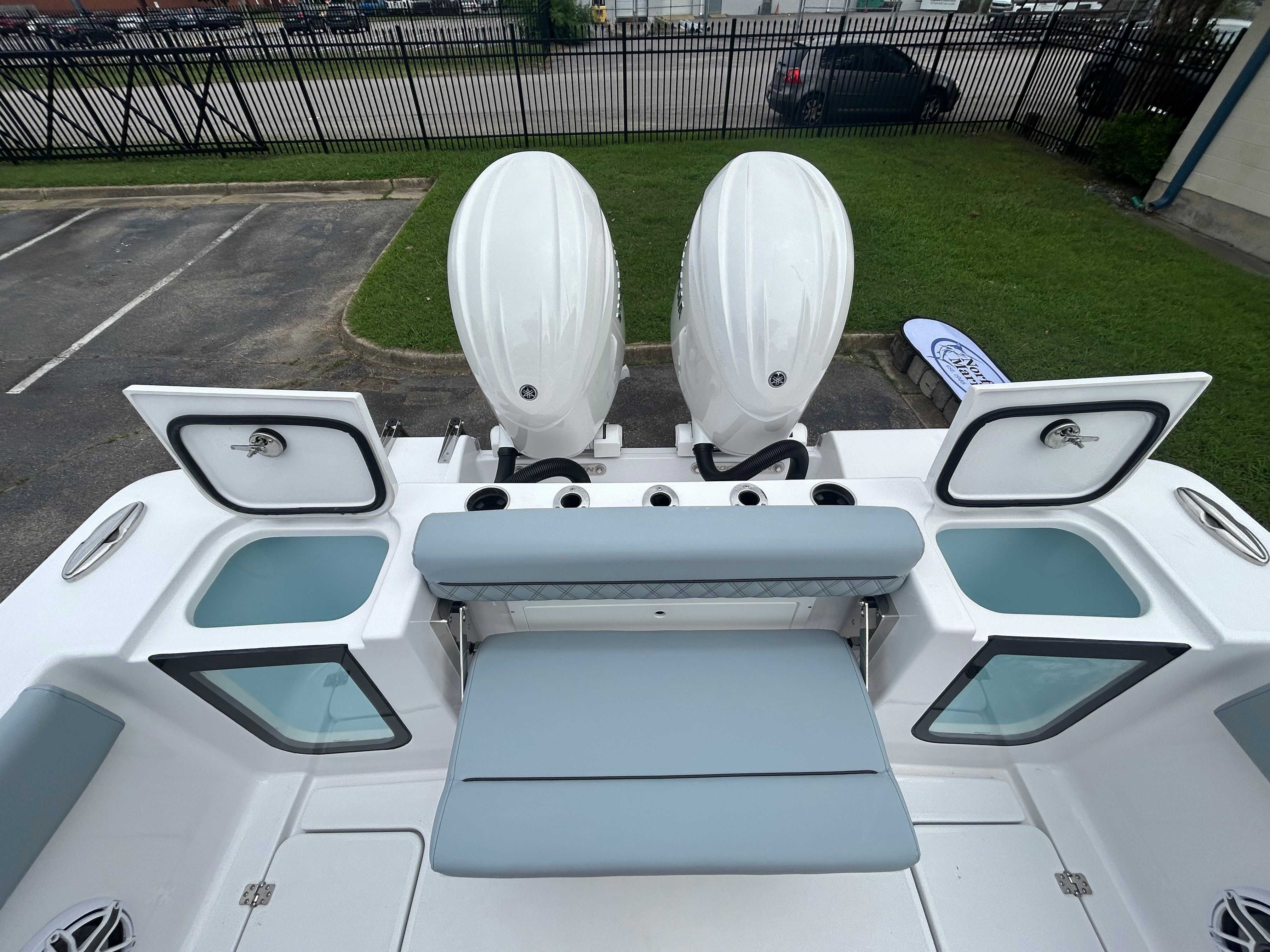 The Sportsman Open 262 is designed with practicality in mind, offering features that simplify storage, docking, and maintenance. The intuitive Yamaha Helm Master EX system with autopilot makes docking and maneuvering effortless, even in challenging conditions. The spacious deck layout provides ample storage for gear, tackle, and personal items, keeping everything organized and within reach.Fuel efficiency is a hallmark of the twin Yamaha engines, allowing you to spend more time on the water and less time at the pump. The ProMariner battery charger ensures your boat’s systems are always ready, reducing downtime and enhancing reliability. Whether you’re heading out for a quick fishing trip or planning a weekend getaway, this Center Console boat is equipped to handle all your needs with ease.