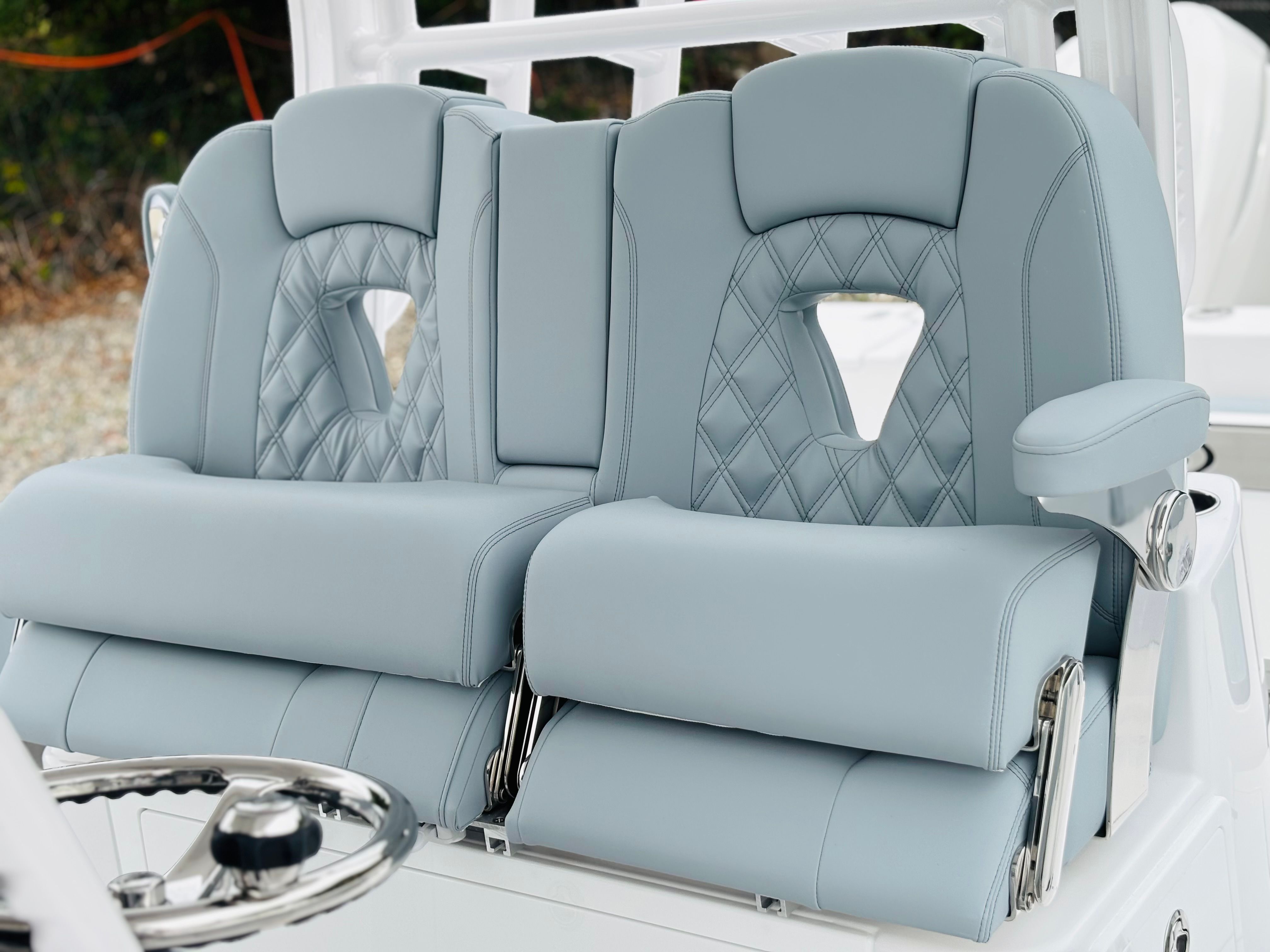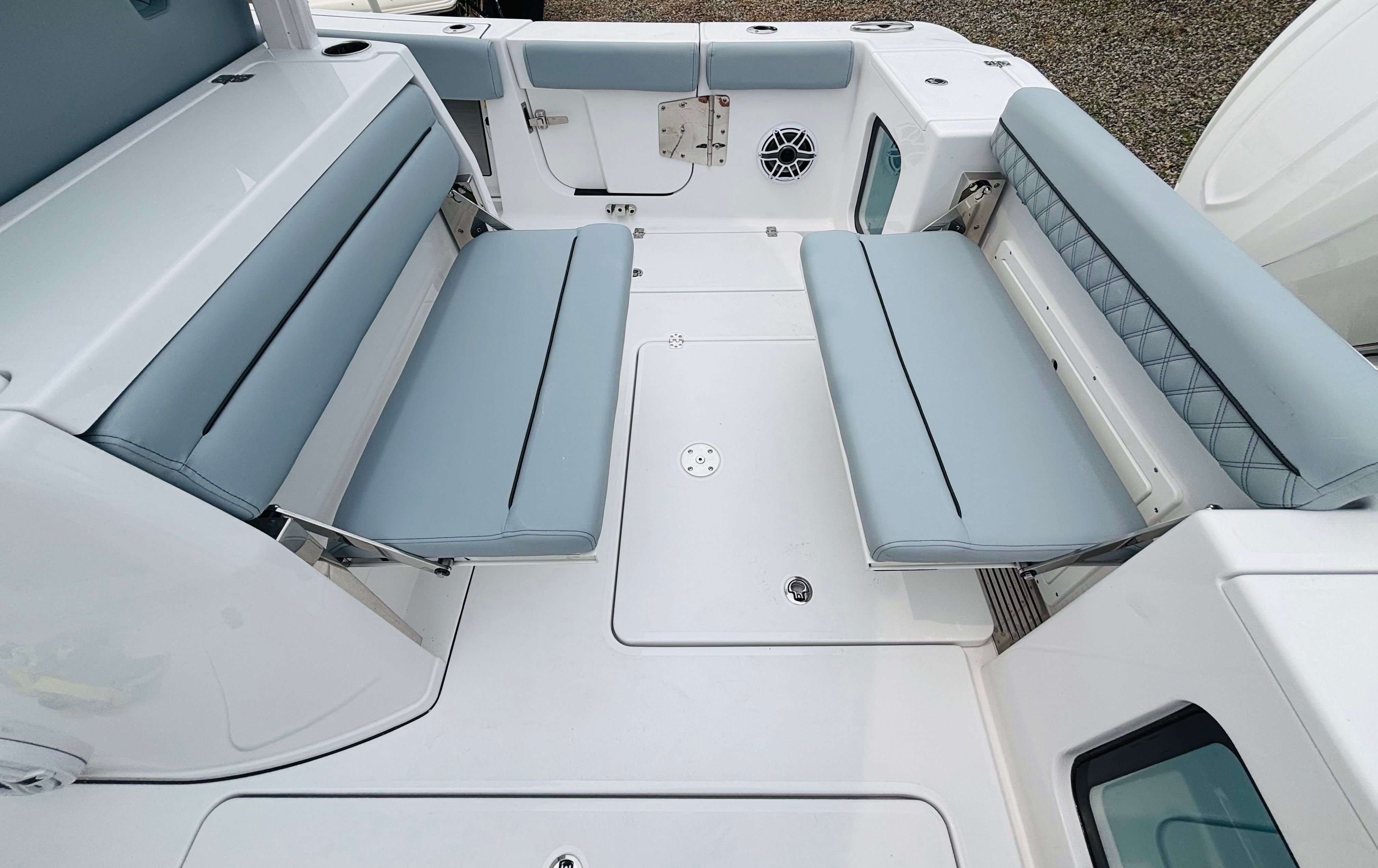 Powering the Sportsman Open 302 are twin Yamaha F350XSA engines, finished in a stunning white that complements the boat’s overall aesthetic. With a combined 700 horsepower, these engines deliver exhilarating speed, smooth acceleration, and reliable performance for all your boating pursuits. Whether you’re cruising along the coastline or heading offshore for a day of fishing, the twin Yamaha engines provide the muscle and efficiency needed for a superior boating experience. The advanced engineering ensures responsive handling, optimal fuel efficiency, and a quiet ride, allowing you to focus on the fun and excitement of the journey.