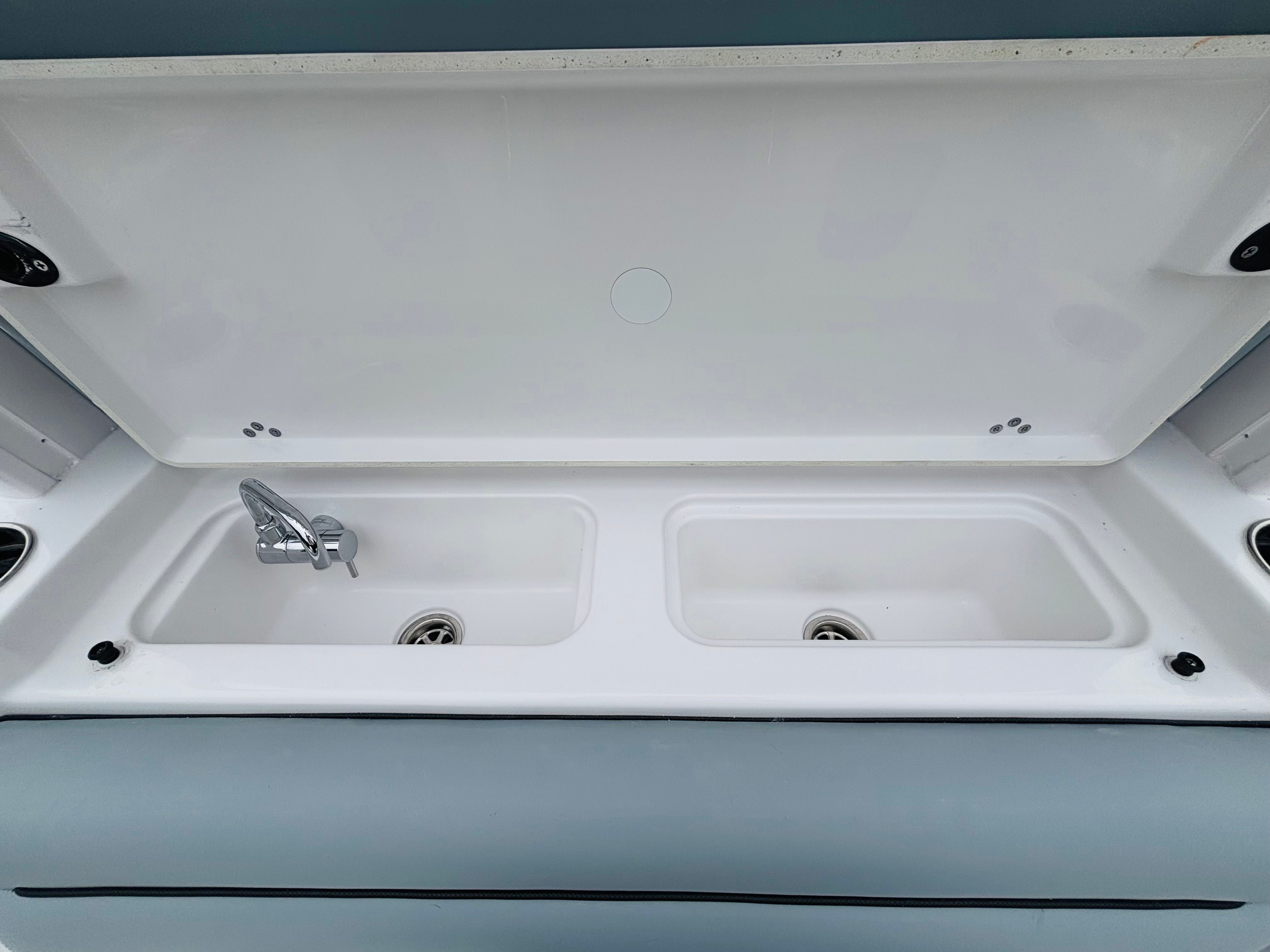 Practicality meets style in the Sportsman Open 302. The Center Console layout maximizes deck space and storage, allowing you to stow gear, tackle, and personal items with ease. The fiberglass construction ensures durability and low maintenance, so you can spend more time enjoying the water and less time on upkeep. Docking is a breeze thanks to the responsive twin engines and streamlined hull design, making it easy to navigate marinas and tight spaces.Fuel efficiency is a hallmark of the Yamaha F350XSA engines, helping you go further on every tank and reducing overall operating costs. The integrated sink and cooler seat offer convenient solutions for food prep and storage, while the dual Garmin GPS screens keep you informed and in control at all times. Whether you’re planning a day trip or an extended excursion, the Open 302 provides the reliability and flexibility you need for worry-free boating.