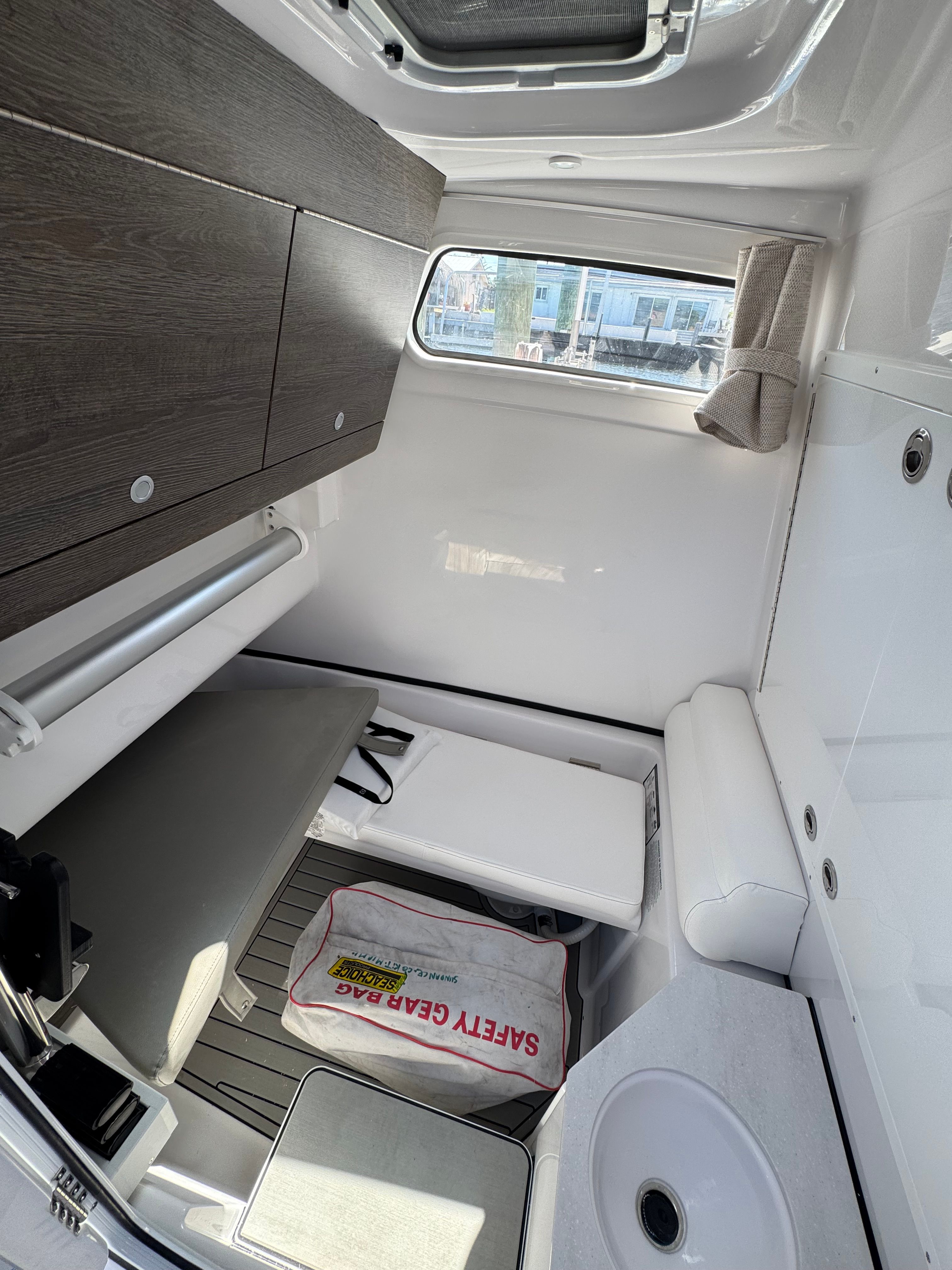 The Sportsman Open 302 is loaded with premium features designed to enhance your boating experience. The Sundeck/Table Cushion offers a versatile space for sunbathing or gathering around for a meal, while the Sileather Ash Gray Upholstery provides a sophisticated and durable seating option that stands up to the elements. Navigation and connectivity are elevated with two Garmin 16" GPS screens featuring built-in Wi-Fi, ensuring you stay on course and connected wherever your journey takes you. The Mastervolt ChargeMaster Plus 50A Battery Charger keeps your onboard systems powered and ready, while the Hardtop Underside Color in white adds a touch of elegance and style.For those seeking shade and comfort, the Gemlux Coastal Base System with shade (front) offers protection from the sun, making long days on the water more enjoyable. The Edson 13 SS Comfort Grip Steering Wheel with PowerKnob provides precise handling and control, while the fiberglass console with FG liner and cooler seat adds both functionality and convenience. Communication is seamless with the second Garmin 215 VHF radio and antenna, ensuring you are always in touch, whether coordinating with other boats or staying updated on weather conditions.