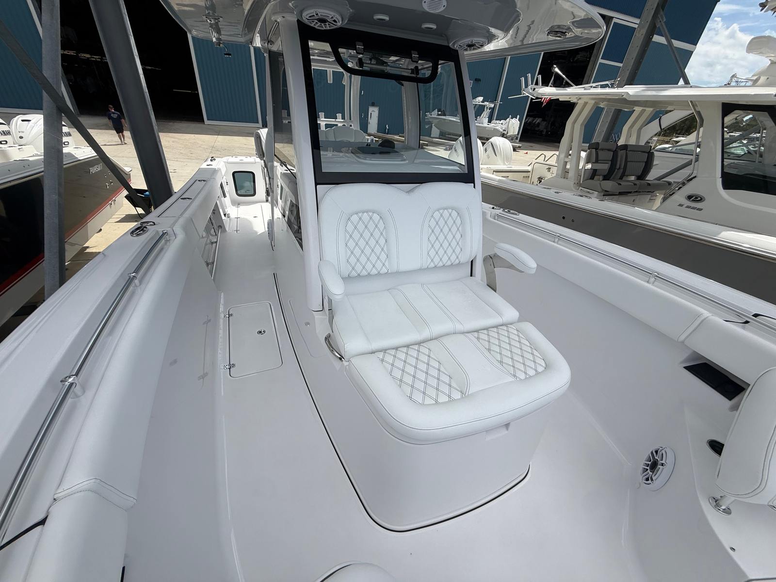 Power and precision are at the heart of the Sportsman Open 322’s design. Equipped with twin Yamaha XF450 engines—available exclusively in white—this Center Console boat boasts a combined 900 horsepower, offering thrilling acceleration and smooth handling in a variety of conditions. The advanced engineering of these Yamaha engines ensures reliable performance, fuel efficiency, and quiet operation, allowing you to enjoy every journey with confidence. Whether you’re navigating choppy waters or gliding across calm bays, the Sportsman Open 322 responds effortlessly to your commands, making it a joy to captain.