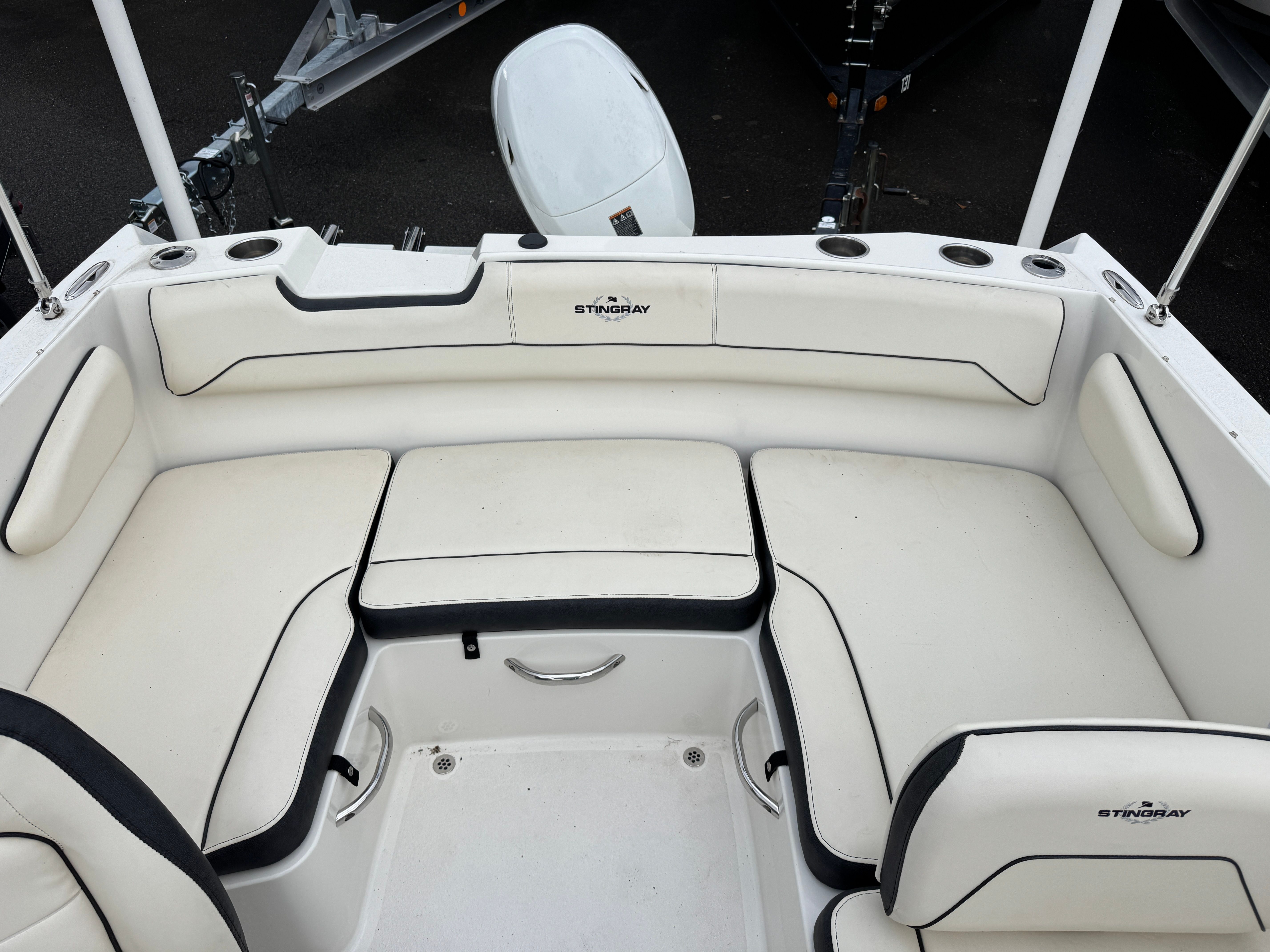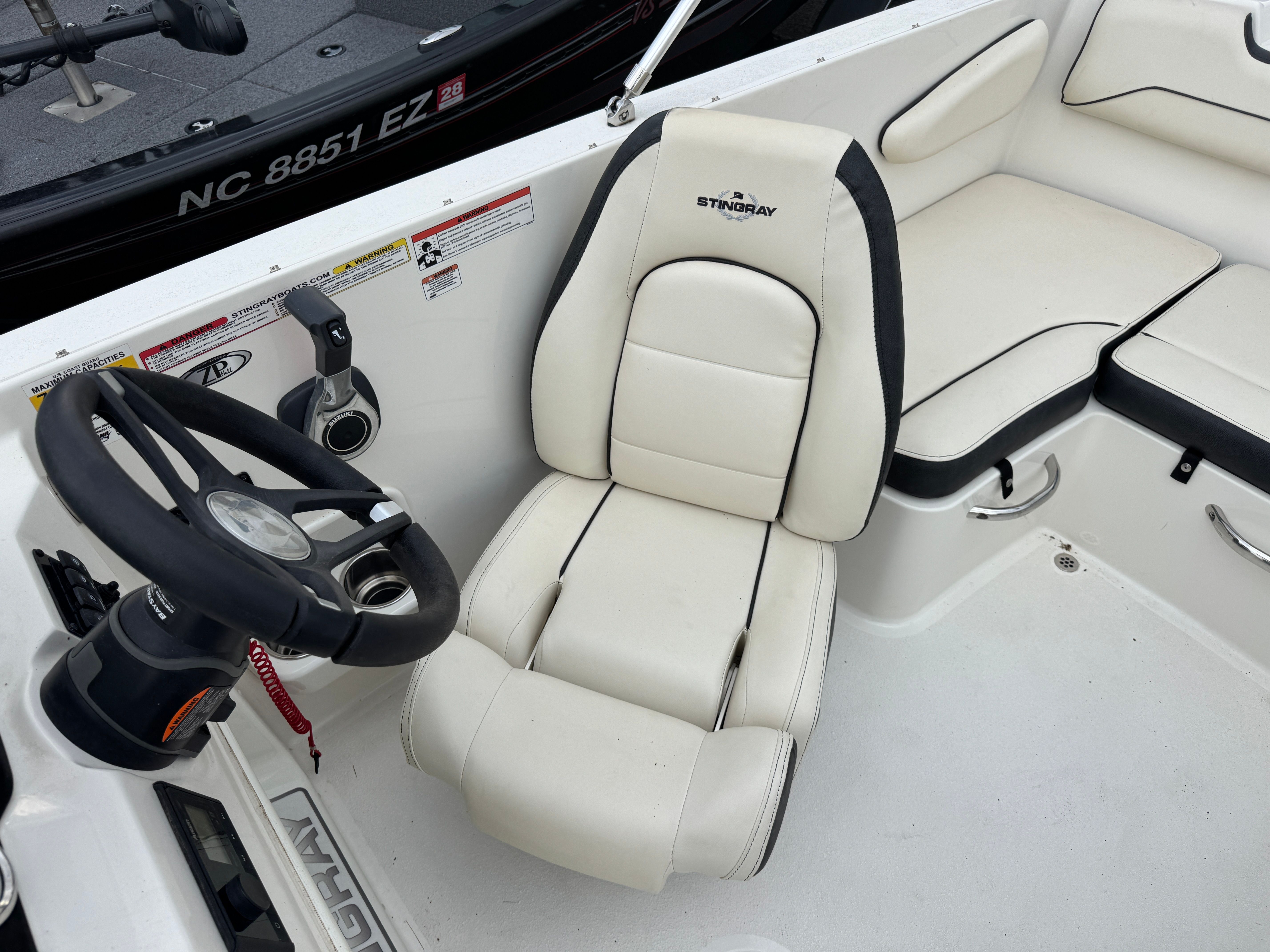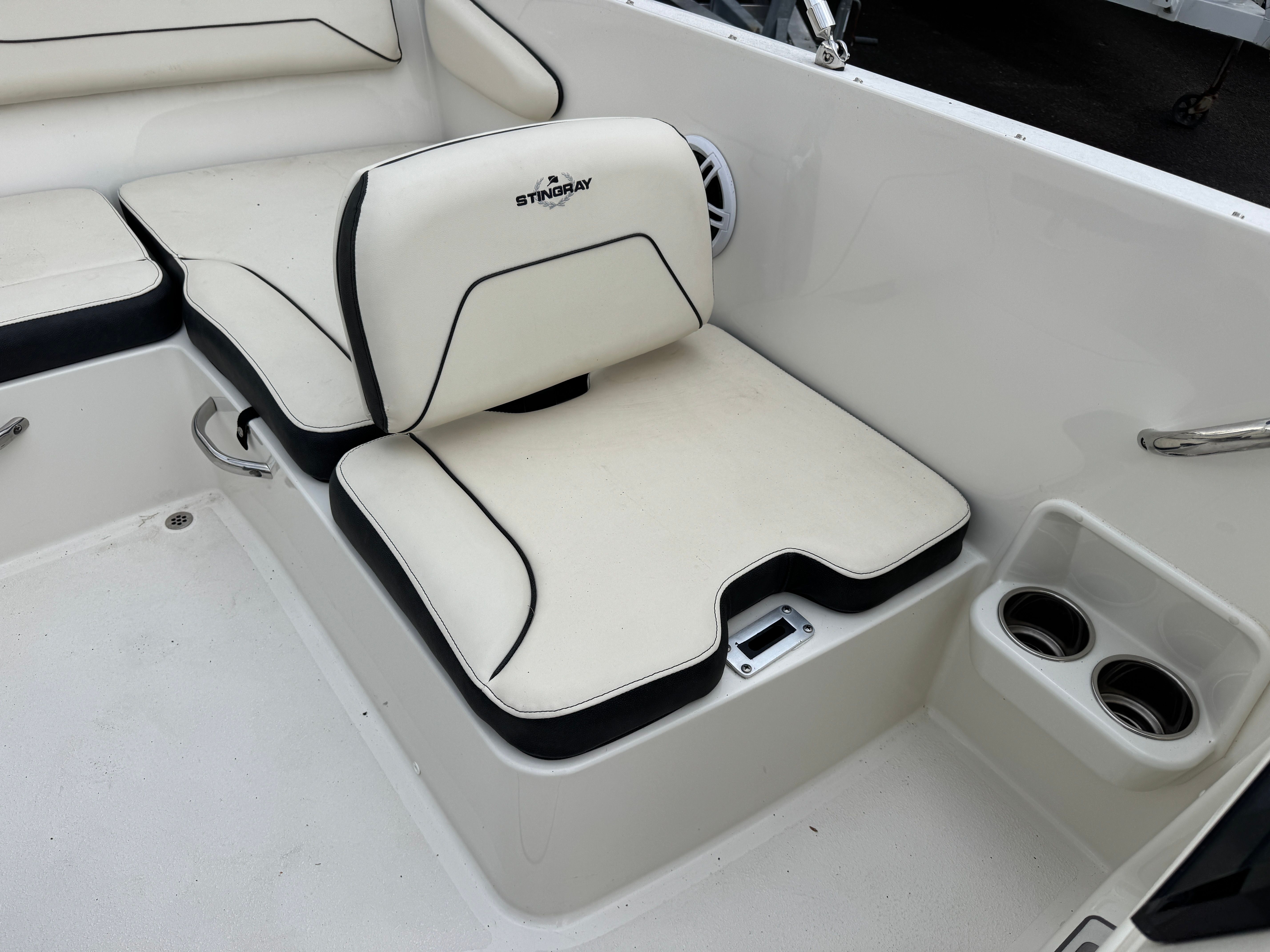 The Stingray 172 SC is designed with practicality in mind, making ownership a breeze. Its manageable 17.25-foot length simplifies docking and storage, whether you keep your boat at a marina or on a trailer at home. The efficient single-engine setup reduces maintenance requirements and operating costs, making this deck boat an economical choice for both new and experienced boaters.The open deck layout provides ample space for coolers, water toys, and fishing gear, so you can customize your outings to suit your interests. The boat’s stable platform is ideal for casting a line or setting up a picnic, while the easy-access swim platform makes it simple to take a dip or launch water toys. With its user-friendly design and low engine hours, this Stingray boat for sale is ready to deliver hassle-free fun from day one.