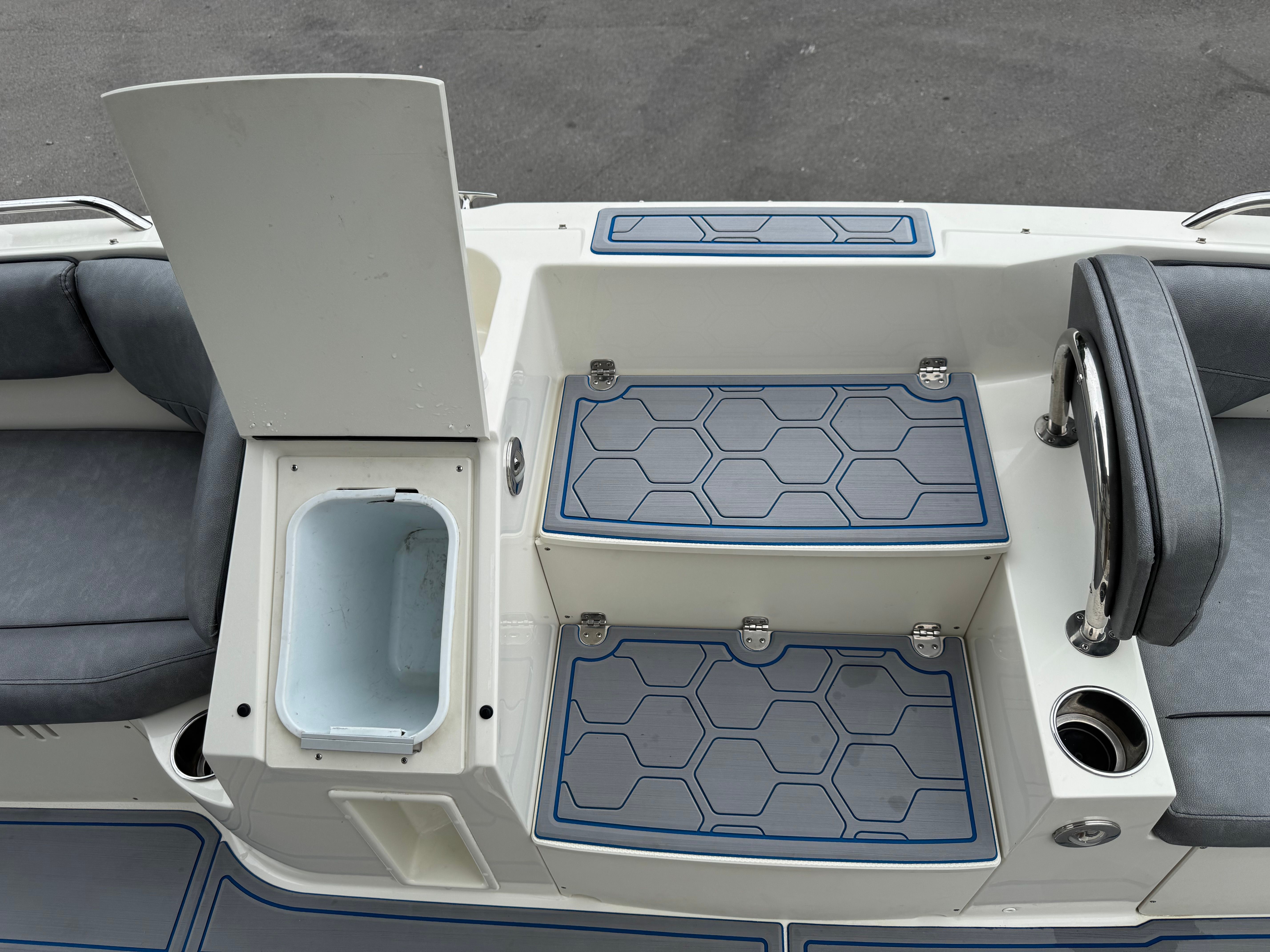 The Stingray 212 SC deckboat is designed with both fun and functionality in mind. Its spacious deck layout offers plenty of seating for family and friends, making it ideal for social gatherings, sunbathing, or simply relaxing with a cool drink in hand. The open design ensures everyone has a great view and easy access to the water, enhancing the overall boating experience.With a length of nearly 22 feet, this deckboat provides generous storage options for all your gear, from water sports equipment to picnic supplies. The thoughtful arrangement of seating and storage ensures a clutter-free environment, so you can focus on enjoying your time on the water.