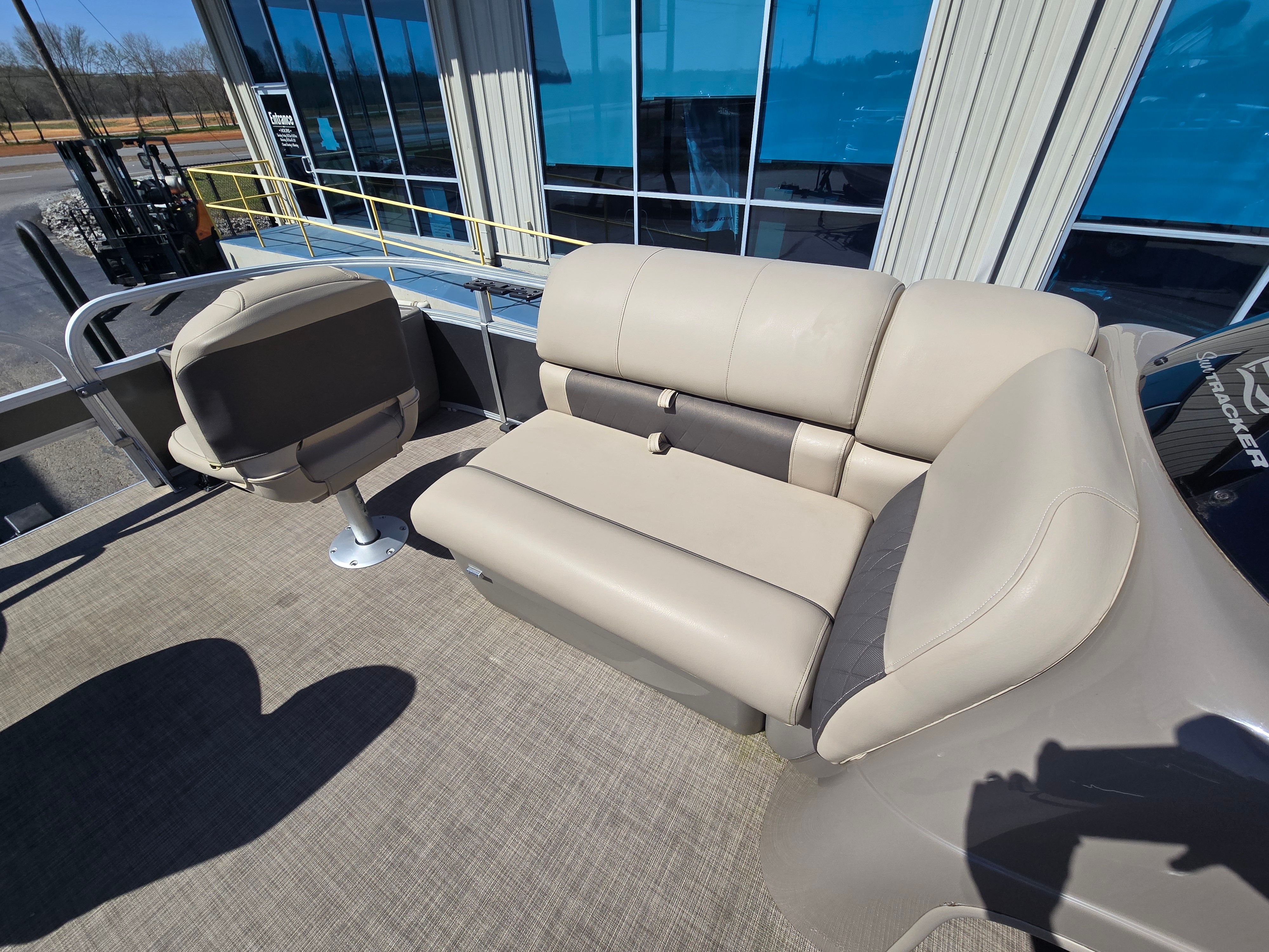 The Sun Tracker Fishing Barge 20 DLX is thoughtfully designed to maximize both comfort and functionality. Its spacious deck layout offers ample room for family, friends, and all your gear. The pontoon’s nearly 22-foot length provides plenty of space for socializing, fishing, or relaxing under the sun. The sturdy construction and high-quality materials ensure durability and longevity, making this pontoon boat a smart investment for years of enjoyment.Special features of the 2023 Sun Tracker Fishing Barge 20 DLX include a versatile deck plan that accommodates both fishing and leisure activities. The wide, stable platform is perfect for casting lines, setting up chairs, or enjoying a picnic on the water. With its comfortable seating arrangements, you and your guests can relax in style while taking in the scenic views. The boat’s intuitive layout makes it easy to move around, ensuring everyone on board has a great time.