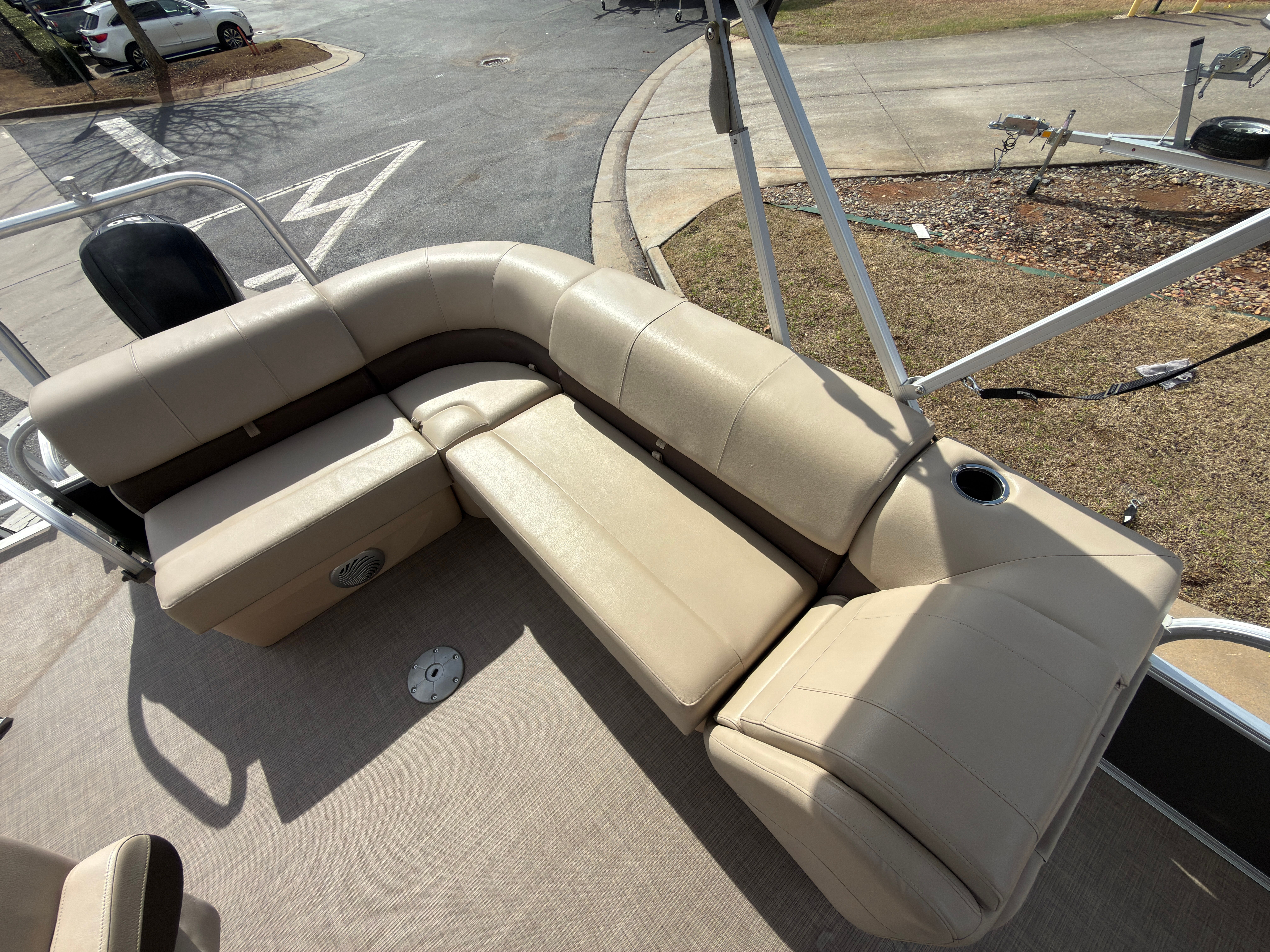 The Sun Tracker Party Barge 20 DLX is designed with comfort and convenience in mind. Its nearly 22-foot length offers ample deck space, allowing you and your guests to move freely and enjoy every moment on board. The open layout is perfect for socializing, with plenty of seating for family and friends. The pontoon’s sturdy construction and thoughtful design ensure a stable, safe ride, even when the water gets a little choppy.Special features of the Party Barge 20 DLX include plush, comfortable seating that invites you to relax and unwind, as well as a spacious deck that is ideal for entertaining. The pontoon’s layout is optimized for both relaxation and activity, making it easy to switch from sunbathing to fishing or from a quiet cruise to a lively party. The durable flooring is easy to clean and maintain, ensuring your boat looks great season after season.