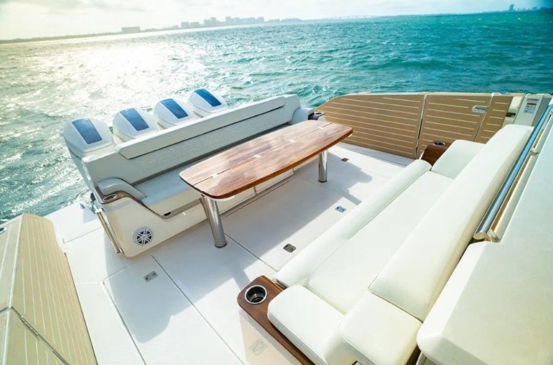Powered by quad Mercury 600 V12s with 190 hours, with the full 200-hour service completed by Mercury in February 2026. Turnkey and ready with Tiara’s proven performance, refined finishes, and seamless indoor-outdoor layout.