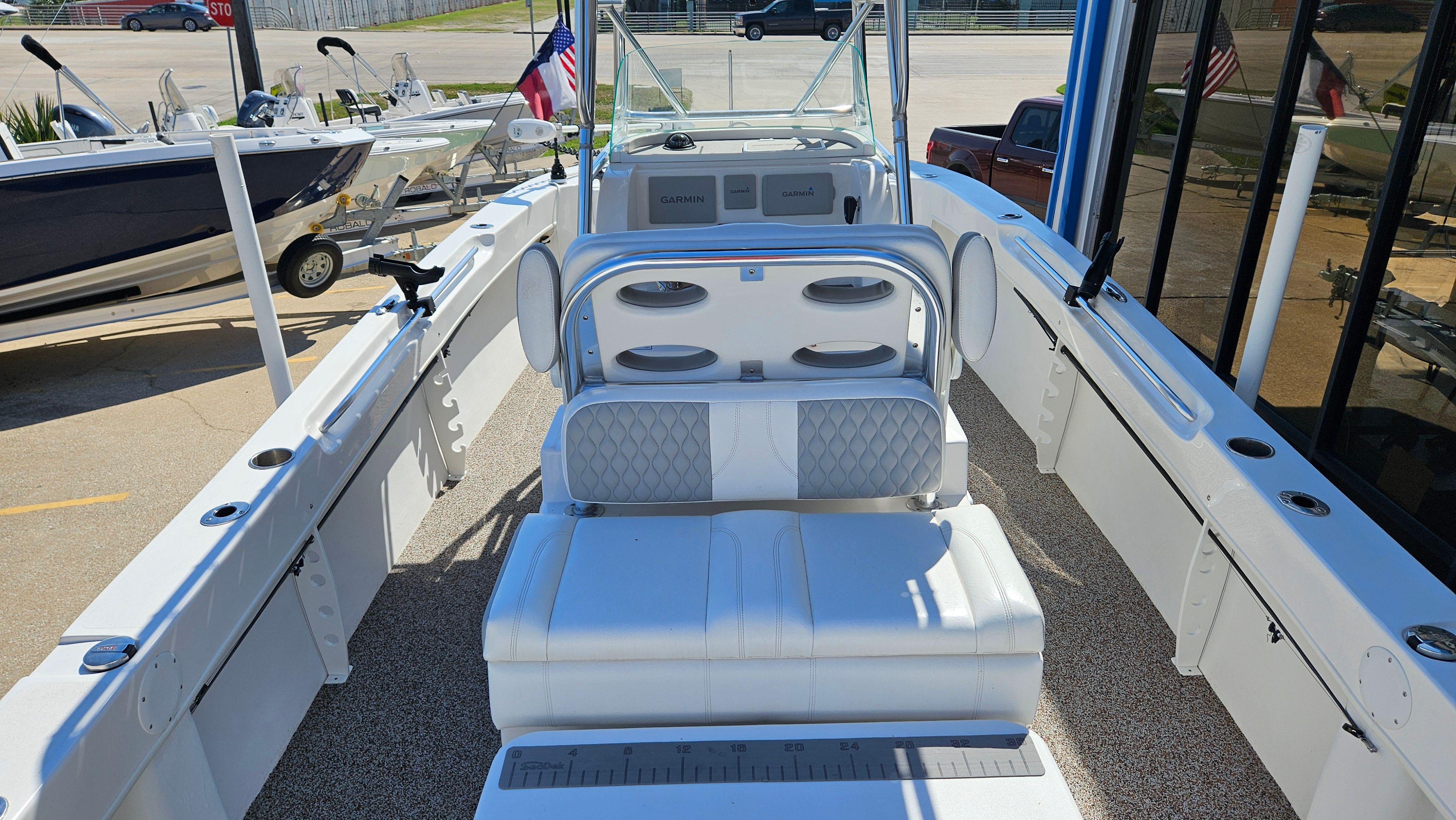 This Center Console boat truly shines in a variety of scenarios. For fishing enthusiasts, the combination of the Minn Kota I Pilot trolling motor, outriggers, and advanced Garmin electronics creates a formidable fishing platform capable of tackling everything from inshore species to offshore game fish. The spacious deck and stable ride make it easy to move around and fight fish, while the ample storage keeps your gear organized and accessible.Families and groups will appreciate the comfortable seating, smooth ride, and entertainment options provided by the Fusion stereo. The boat’s layout encourages socializing and relaxation, making it perfect for beach outings, island hopping, or sunset cruises. The windlass anchor allows for easy stops at your favorite swimming or snorkeling spots, while the T-Top ensures everyone stays cool and protected.For those who value adventure and exploration, the Twin Vee 260 Viva’s trailerability opens up a world of possibilities. Discover new lakes, rivers, and coastal destinations with the confidence that your boat is easy to transport and launch wherever your journey takes you.