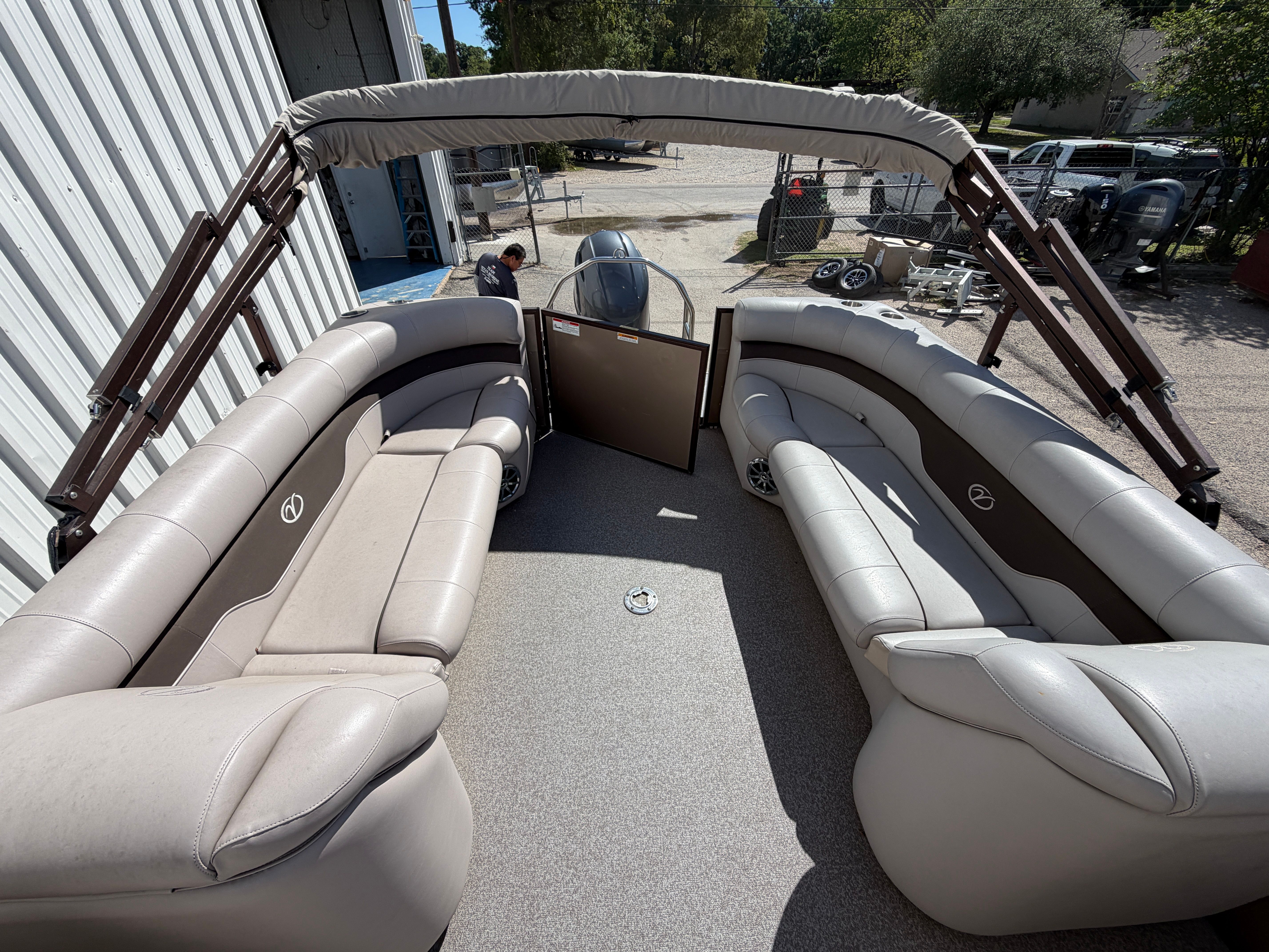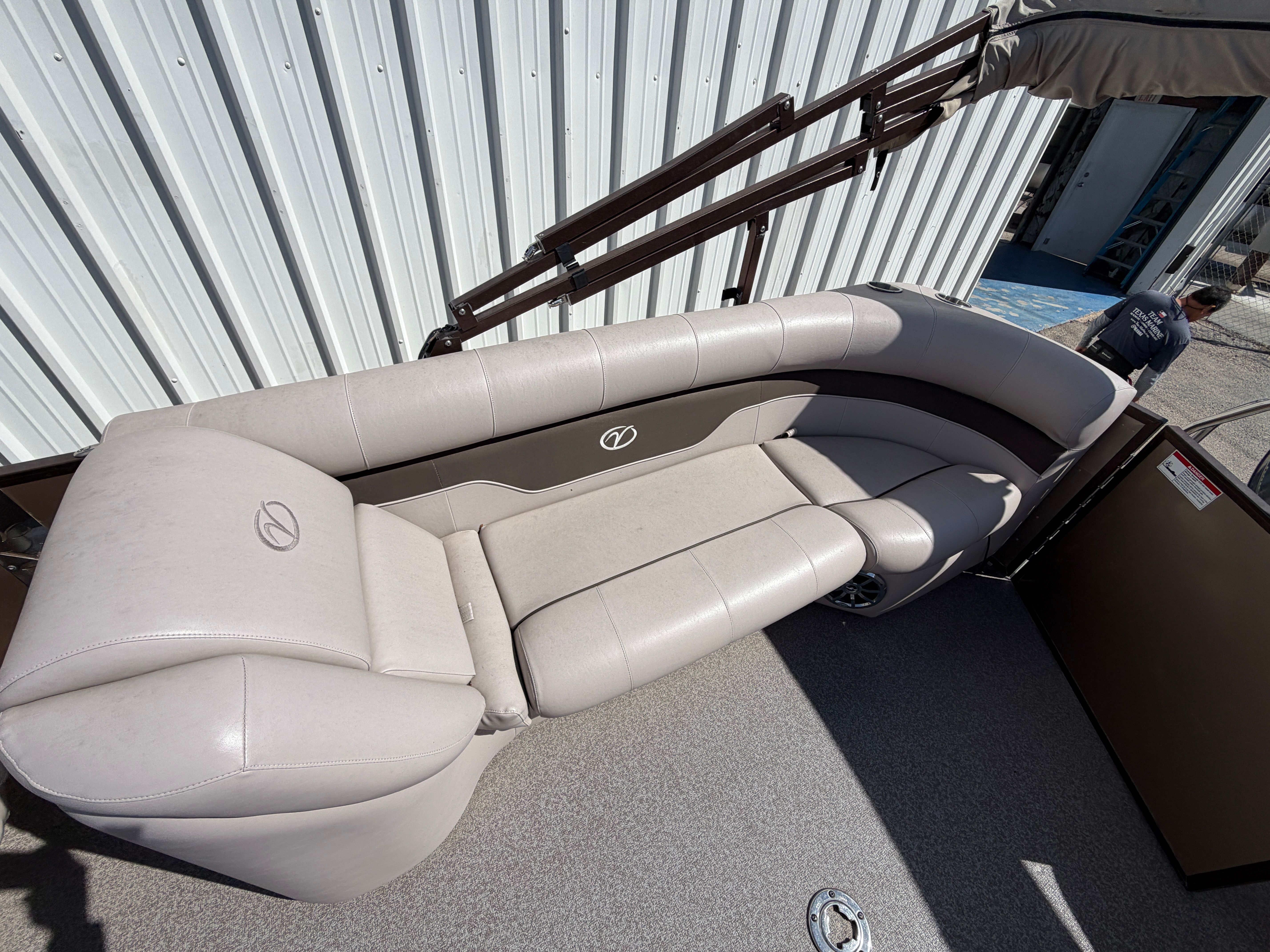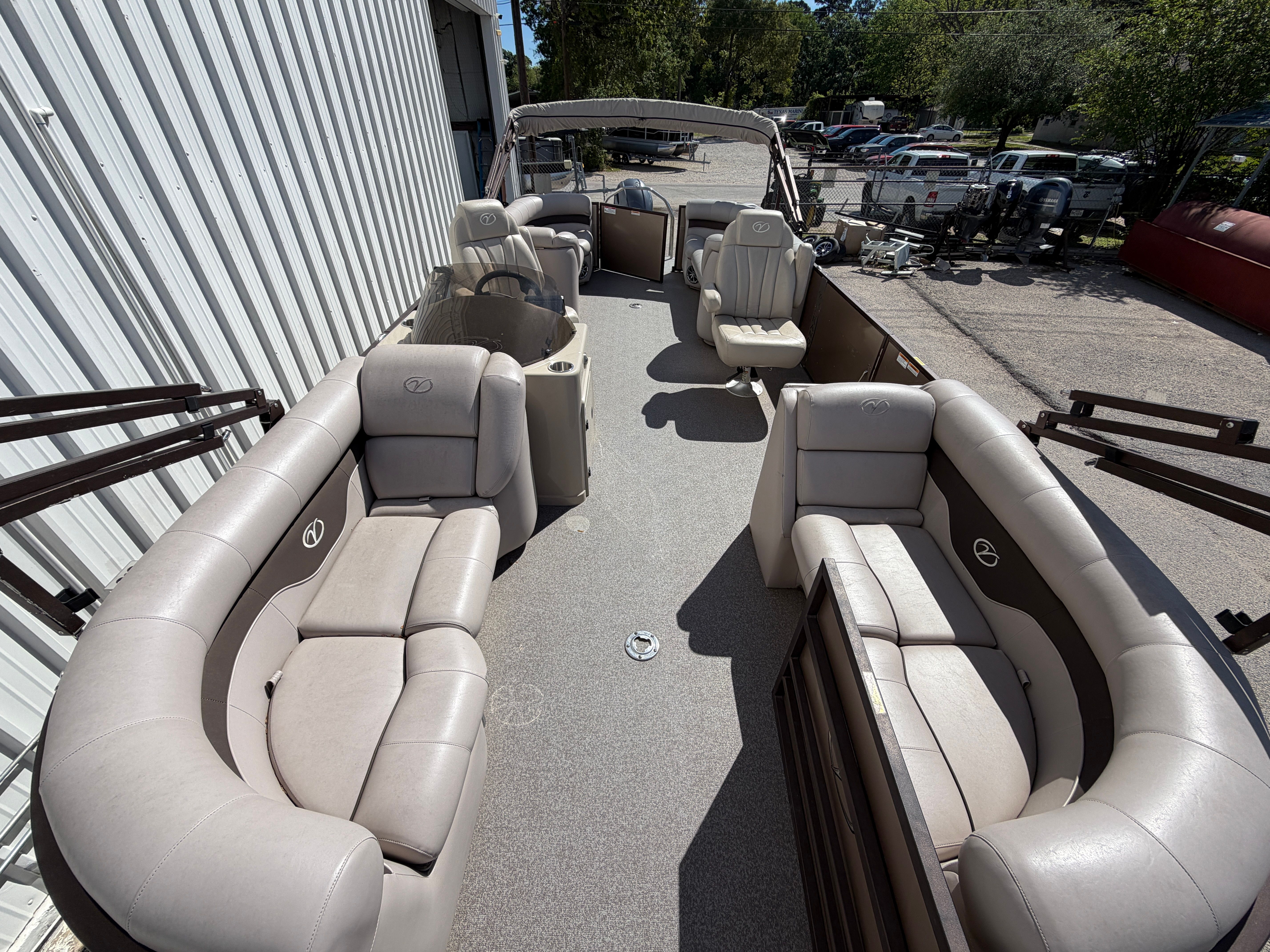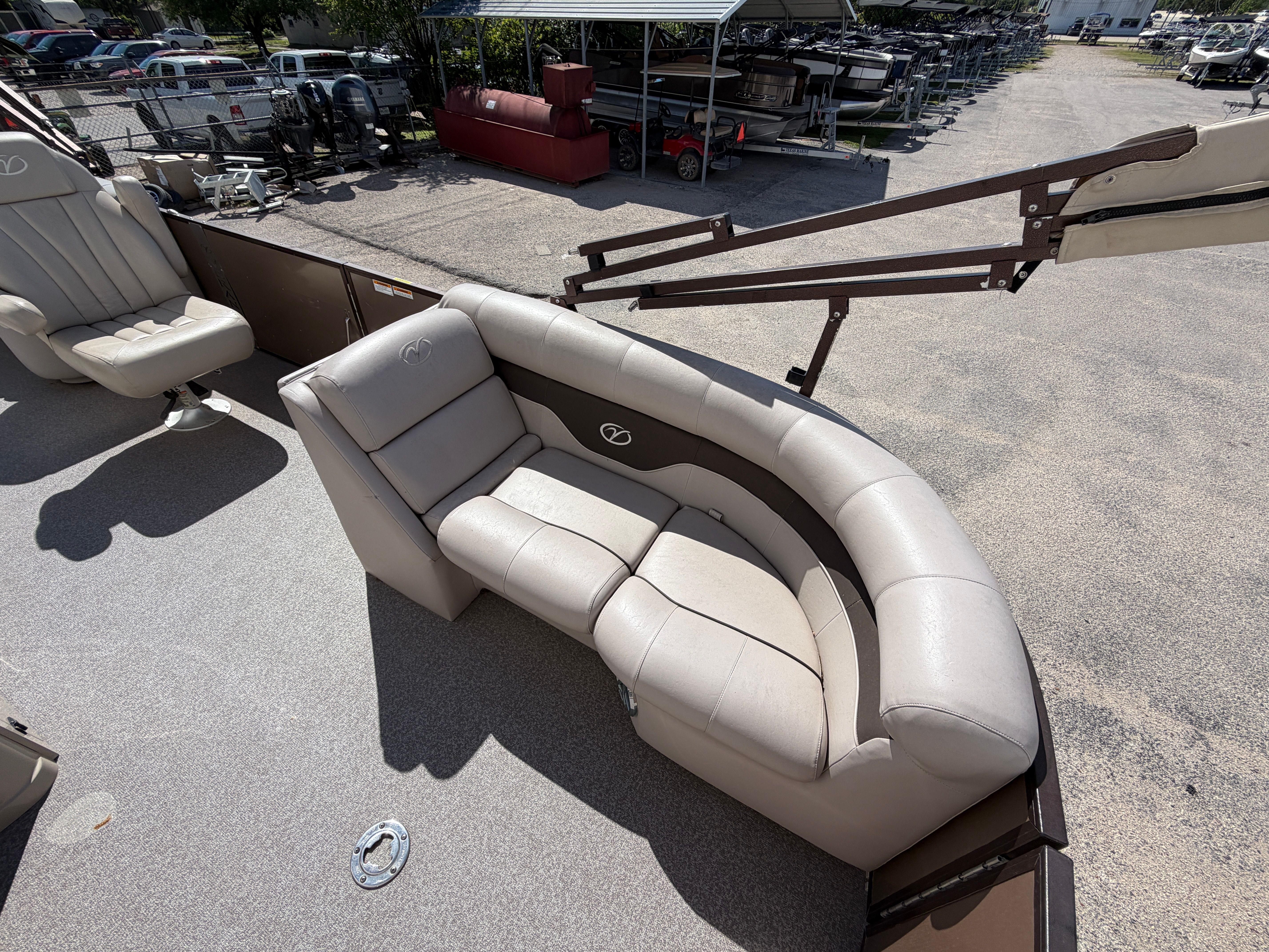 The Veranda RC 22 is as practical as it is enjoyable. Its generous deck space provides plenty of room for coolers, water toys, and other essentials, making it easy to pack for a full day of fun. The boat’s manageable size and responsive handling simplify docking and maneuvering, even for those new to pontoon boating. The efficient 115-horsepower engine helps keep operating costs in check, allowing you to spend more time enjoying the water and less time worrying about fuel. Whether you’re heading out for a quick sunset cruise or a full day of adventure, this Veranda boat for sale is designed to make every outing smooth and stress-free.