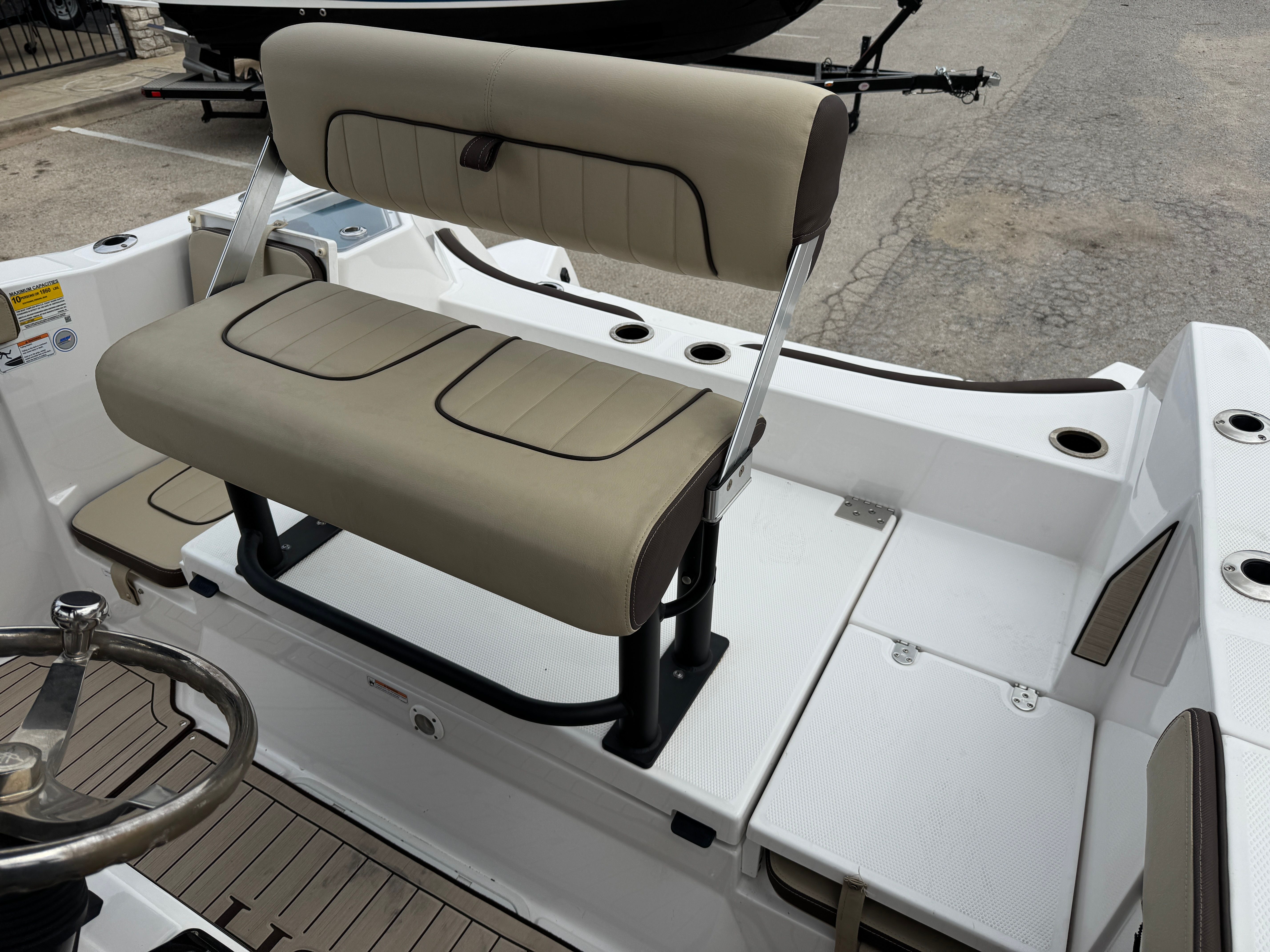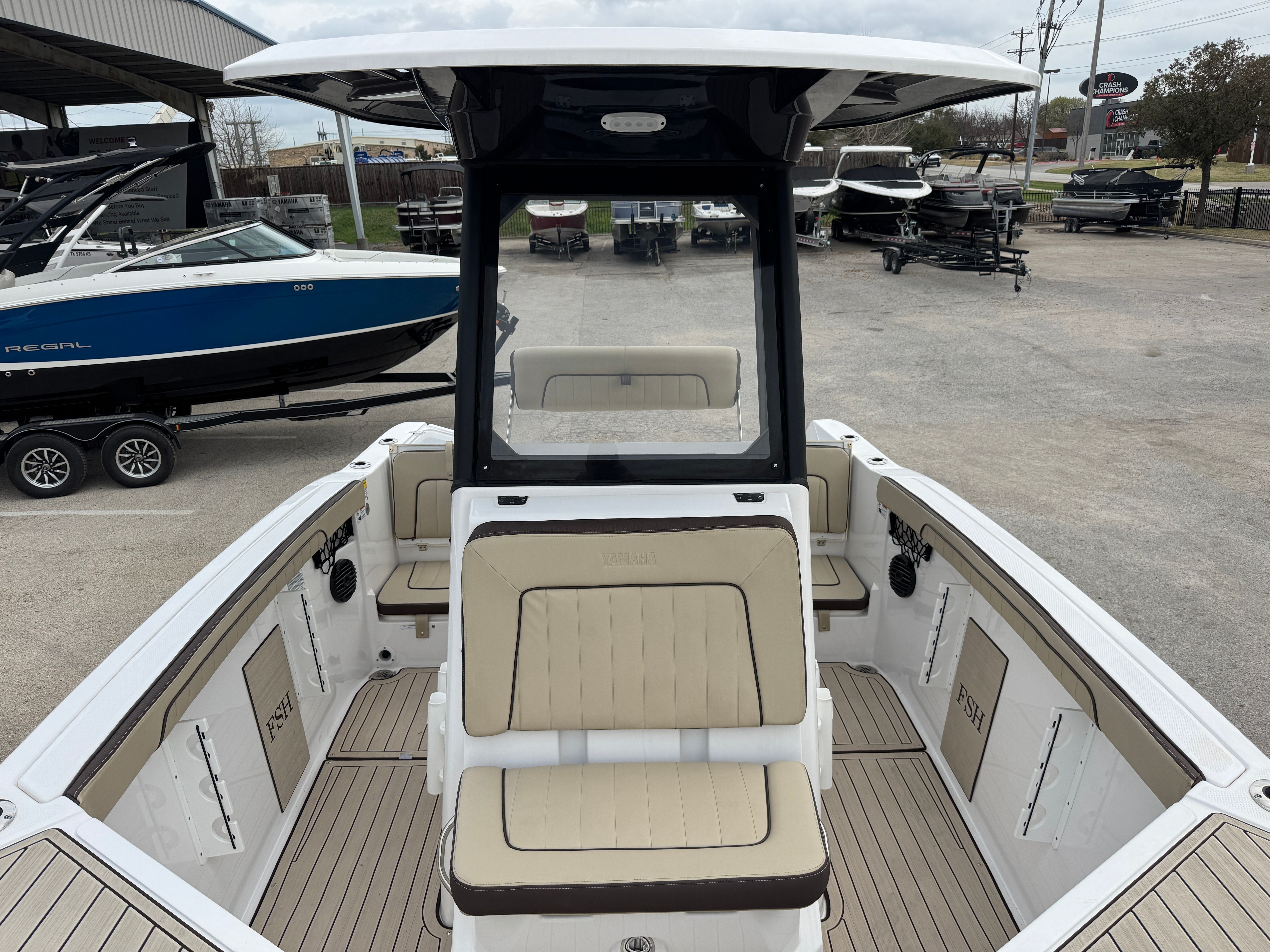 The Yamaha 222 FSH Sport E is packed with features designed to enhance your time on the water. Its spacious layout provides plenty of room for passengers to relax, socialize, and enjoy the scenery. The jet propulsion system not only delivers powerful performance but also offers safety advantages, as there are no exposed propellers. This makes it an ideal choice for families with children or anyone who values peace of mind while boating.Special features of the 222 FSH Sport E include advanced technology and thoughtful design elements that elevate the boating experience. The helm is equipped with intuitive controls, allowing the captain to easily manage speed, direction, and onboard systems. The seating arrangement is designed for comfort, with plush cushions and ergonomic support that make long days on the water a pleasure. Storage compartments are strategically placed throughout the boat, providing convenient access to gear, snacks, and personal items.