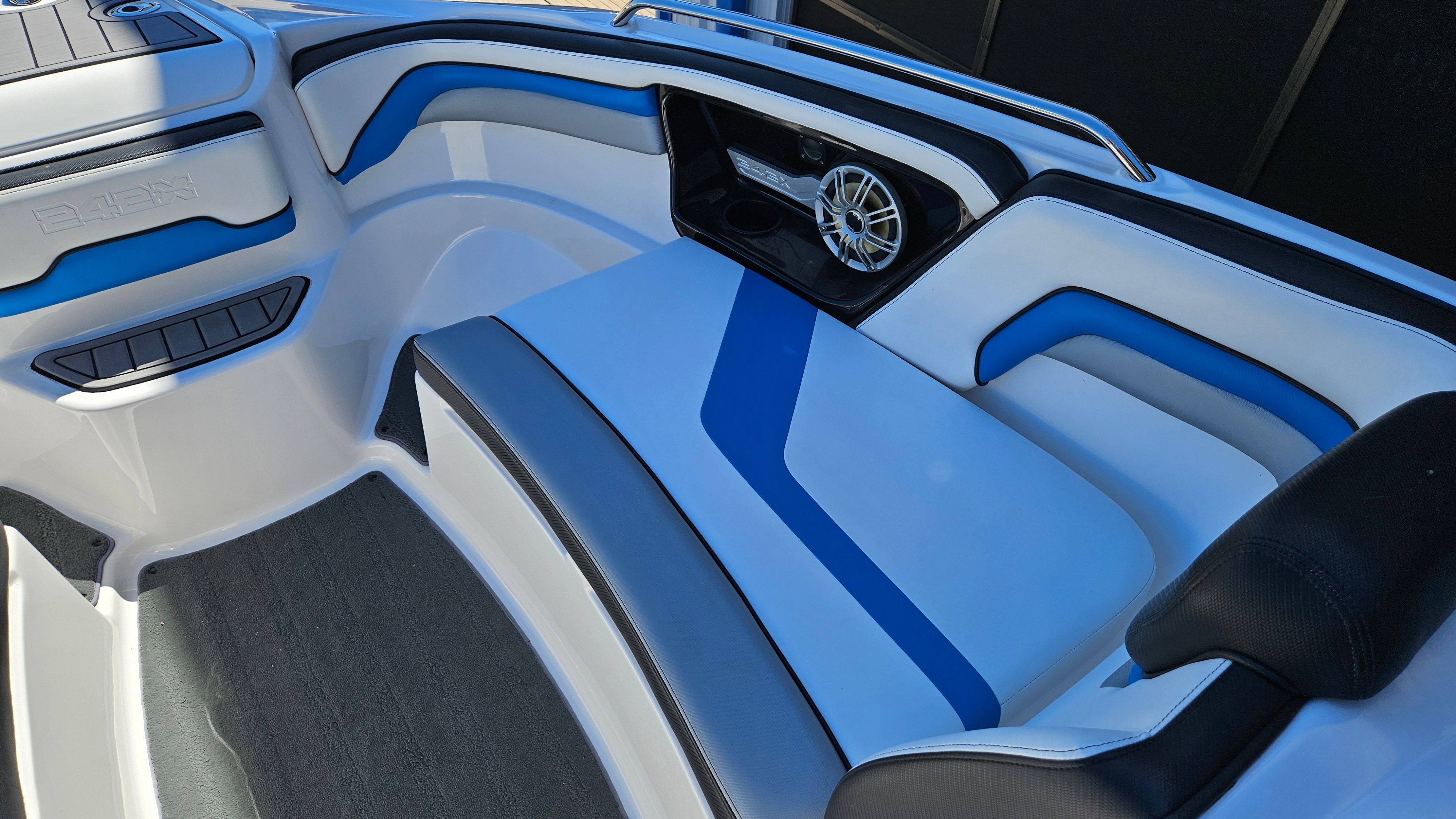 Power and agility define the Yamaha 242 X. Equipped with twin engines delivering a combined 360 horsepower, this jet boat offers impressive acceleration and responsive handling. The dual-engine setup ensures smooth and reliable operation, giving you the confidence to navigate a variety of water conditions. The jet propulsion system not only provides thrilling speed but also enhances maneuverability, making docking and tight turns effortless. Whether you’re towing wakeboarders, racing across open water, or simply enjoying a leisurely ride, the Yamaha 242 X delivers a dynamic and exhilarating boating experience.