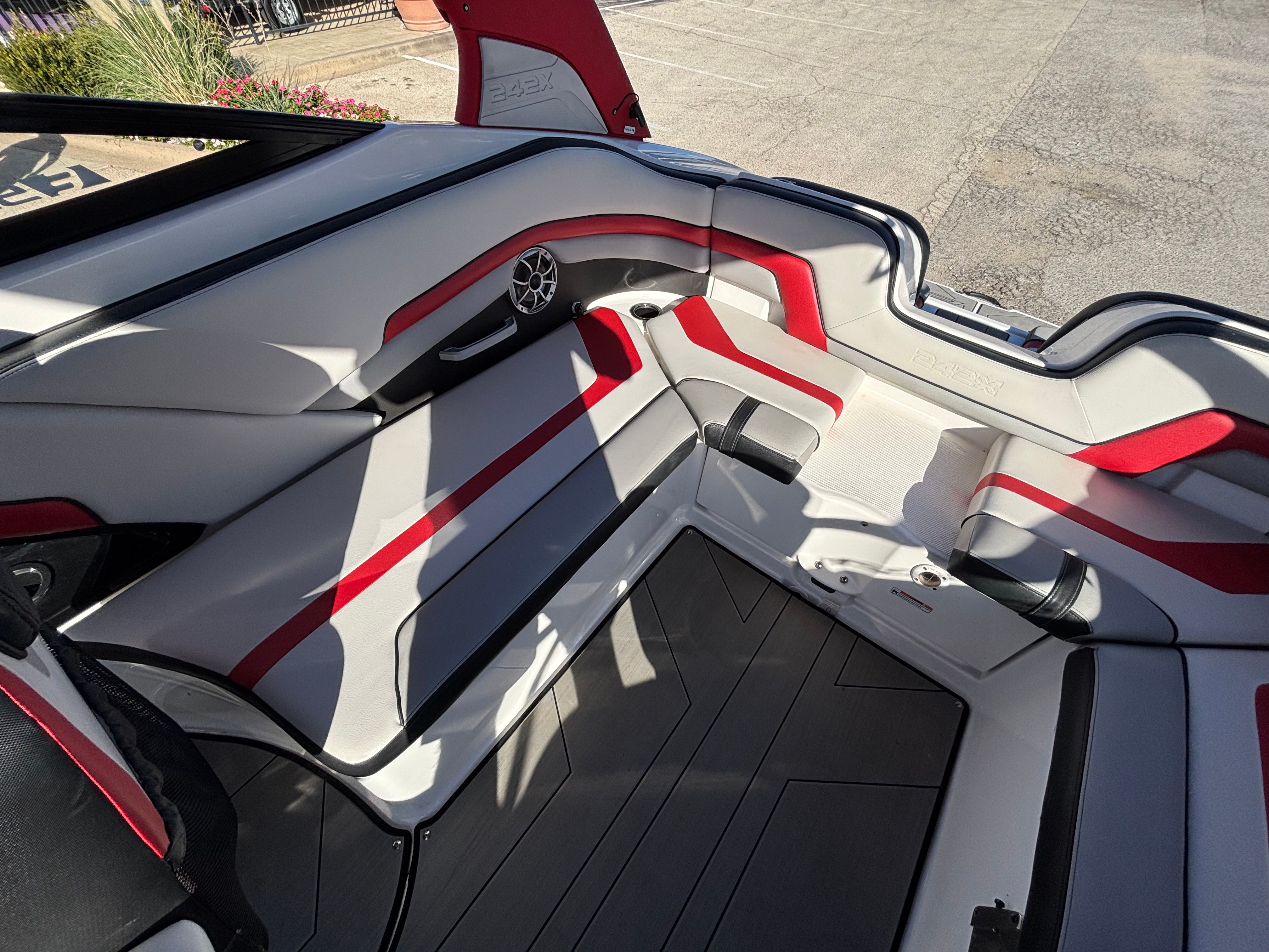 The Yamaha 242 XE is packed with features designed to enhance your time on the water. Bow filler inserts transform the forward seating area into a spacious sun pad, perfect for lounging or socializing. The enclosed head compartment offers privacy and convenience, making longer outings more comfortable for everyone on board. Entertain guests with ease in the portside entertainment area, which is thoughtfully arranged for serving snacks and beverages. Hinged seat cushions provide easy access to under-seat storage, keeping your gear organized and out of the way.One of the standout features of this jet boat is the integrated swim platform, which serves as a hub for watersports, swimming, or simply relaxing at anchor. The removable table can be set up for dining or games, then stowed away when not in use. The dual battery setup ensures reliable power for all your onboard systems, while all factory rebates and coupons are included, adding extra value to your purchase.