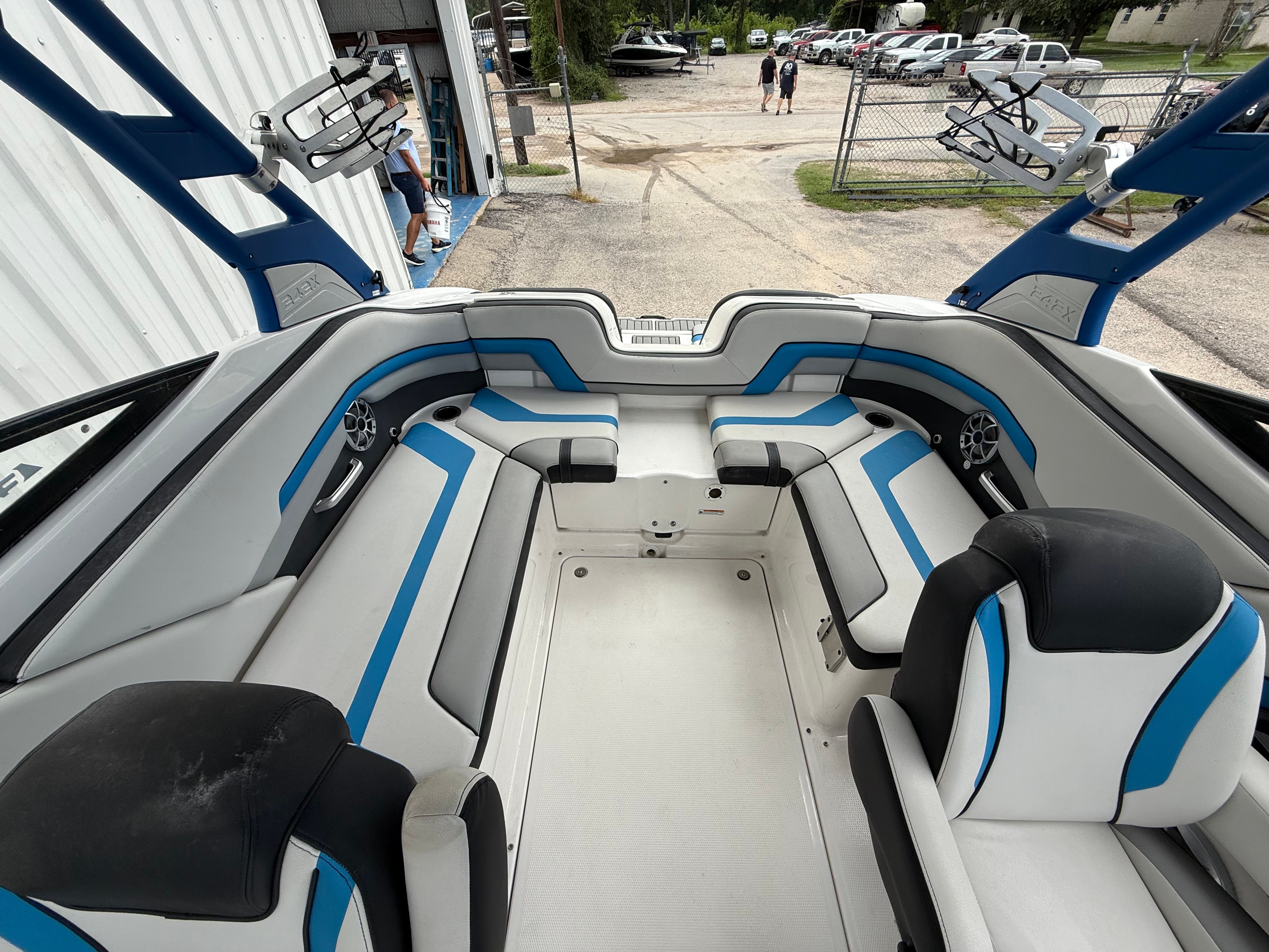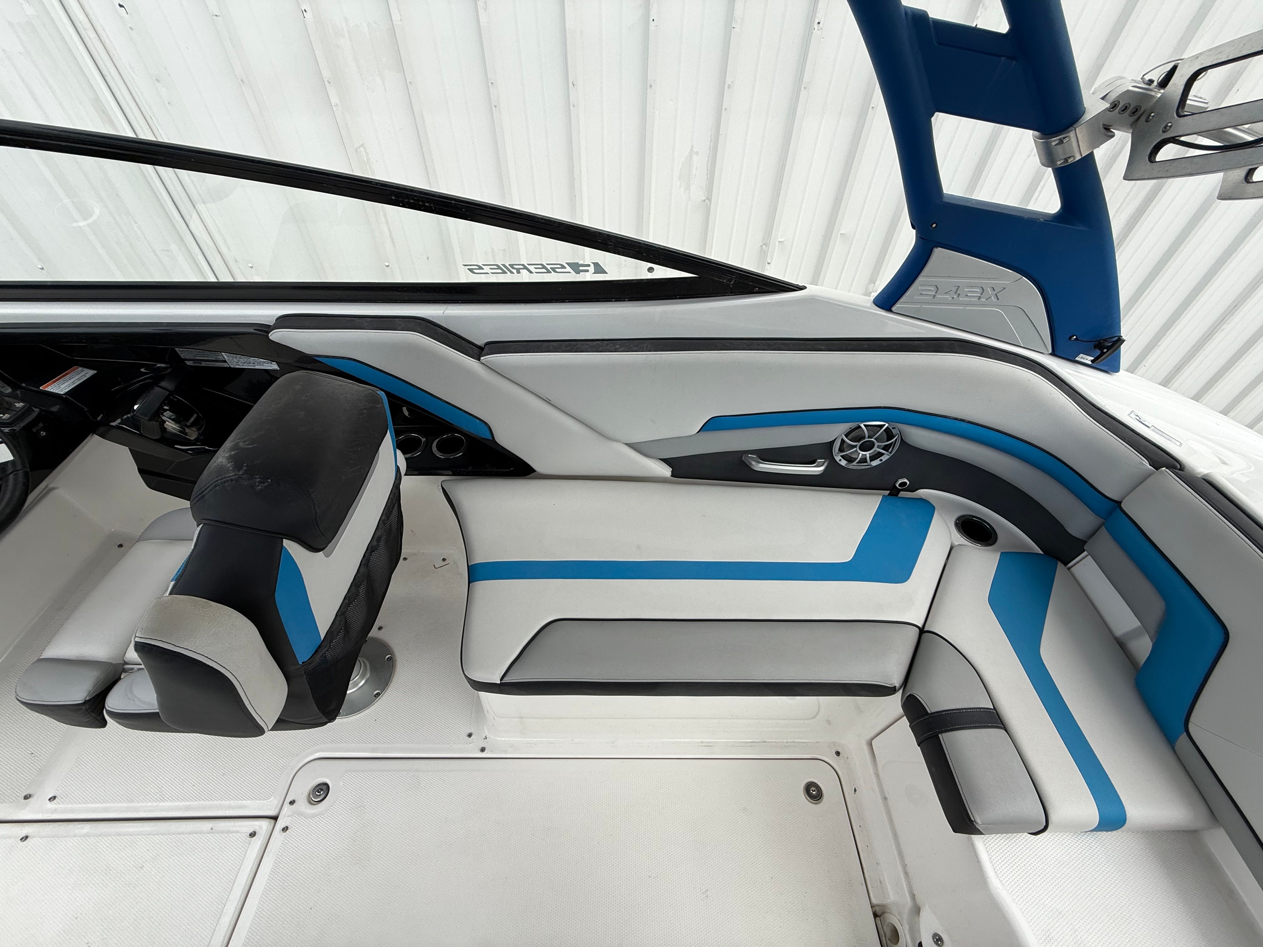 Powering the Yamaha 242X are two high-output engines, delivering a combined 360 horsepower. With only 328 engine hours, these engines are primed for many more seasons of fun. The twin-engine setup provides impressive acceleration, responsive handling, and smooth cruising, whether you’re carving through waves or gliding across calm waters. The jet propulsion system offers precise control and maneuverability, making docking and navigating tight spaces effortless. This Yamaha jet boat for sale is perfect for those who crave speed, agility, and the thrill of water sports.