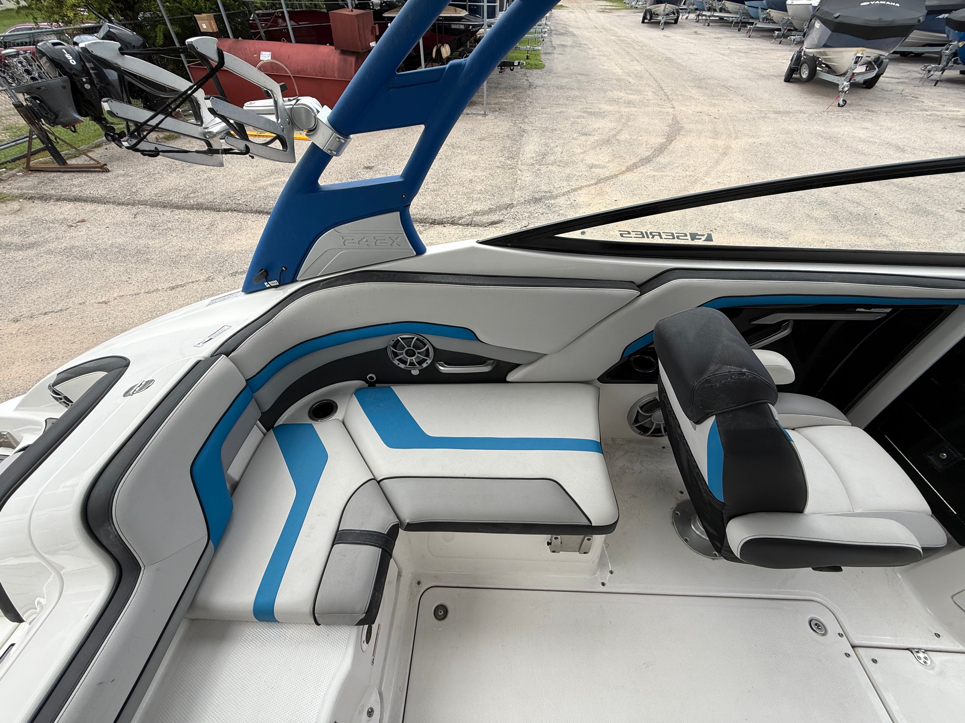 The Yamaha 242X is as practical as it is exciting. Its jet propulsion system makes docking and maneuvering in tight spaces simple and stress-free, while the ample storage ensures you can bring along everything you need for a day on the water. The efficient engines offer a balance of power and fuel economy, allowing you to spend more time enjoying the boat and less time refueling. Maintenance is straightforward, thanks to Yamaha’s reputation for reliability and quality engineering. This used jet boat for sale is an excellent choice for those who want a hassle-free ownership experience without compromising on performance or style.