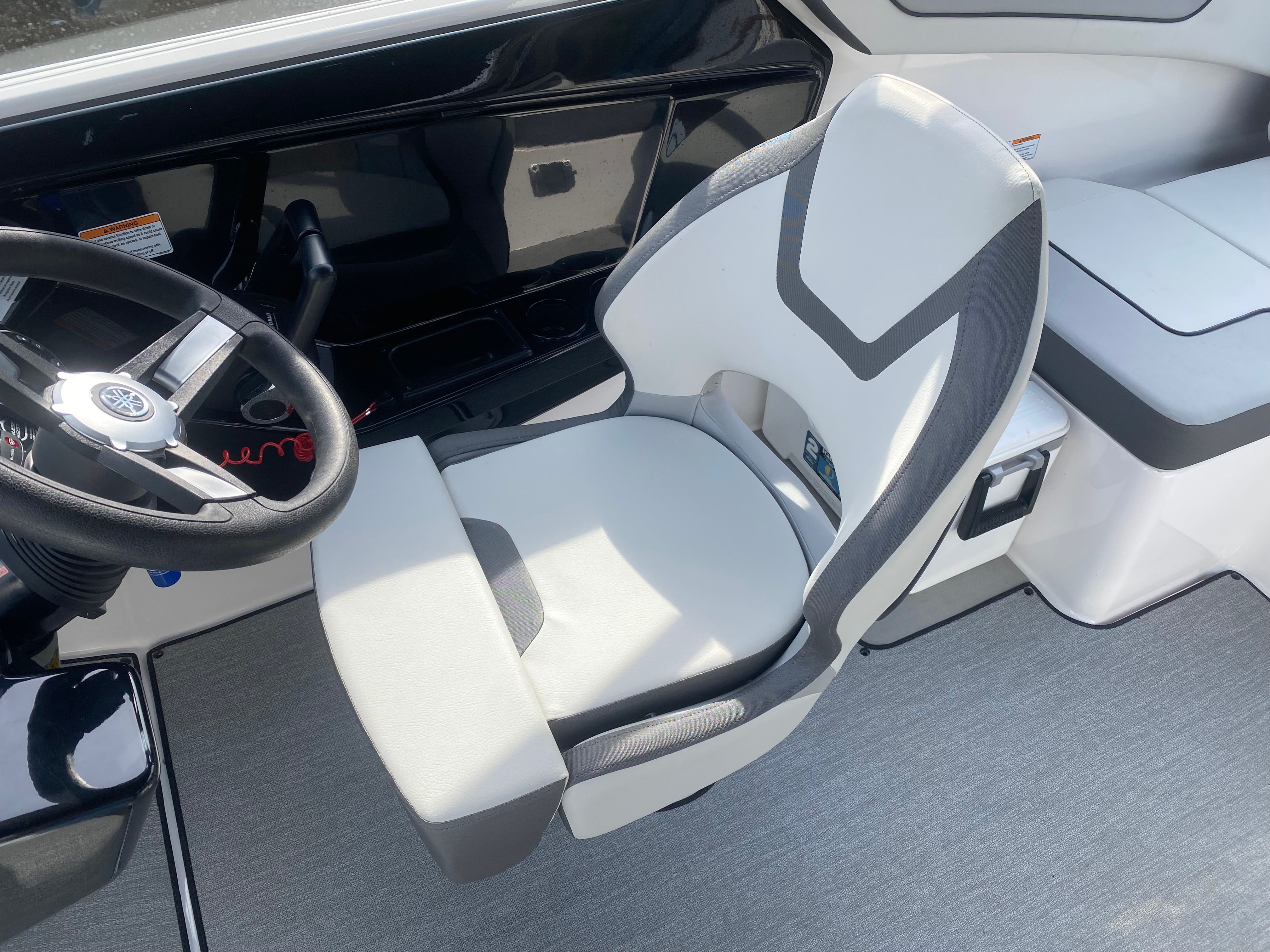 Under the hood, the Yamaha AR220 boasts twin engines, delivering a combined 230 horsepower for exhilarating acceleration and responsive handling. Whether you’re cruising across the lake or towing water toys, the AR220’s jet propulsion system ensures smooth, agile maneuvering and a thrilling ride. The dual engines provide balanced power and reliability, making this jet boat a top performer in its class. With 51 engine hours, you can trust that this Yamaha boat for sale has plenty of life left for your future adventures.